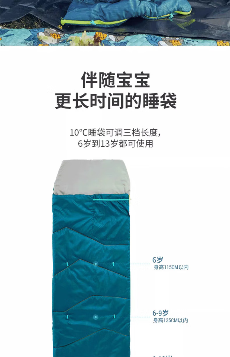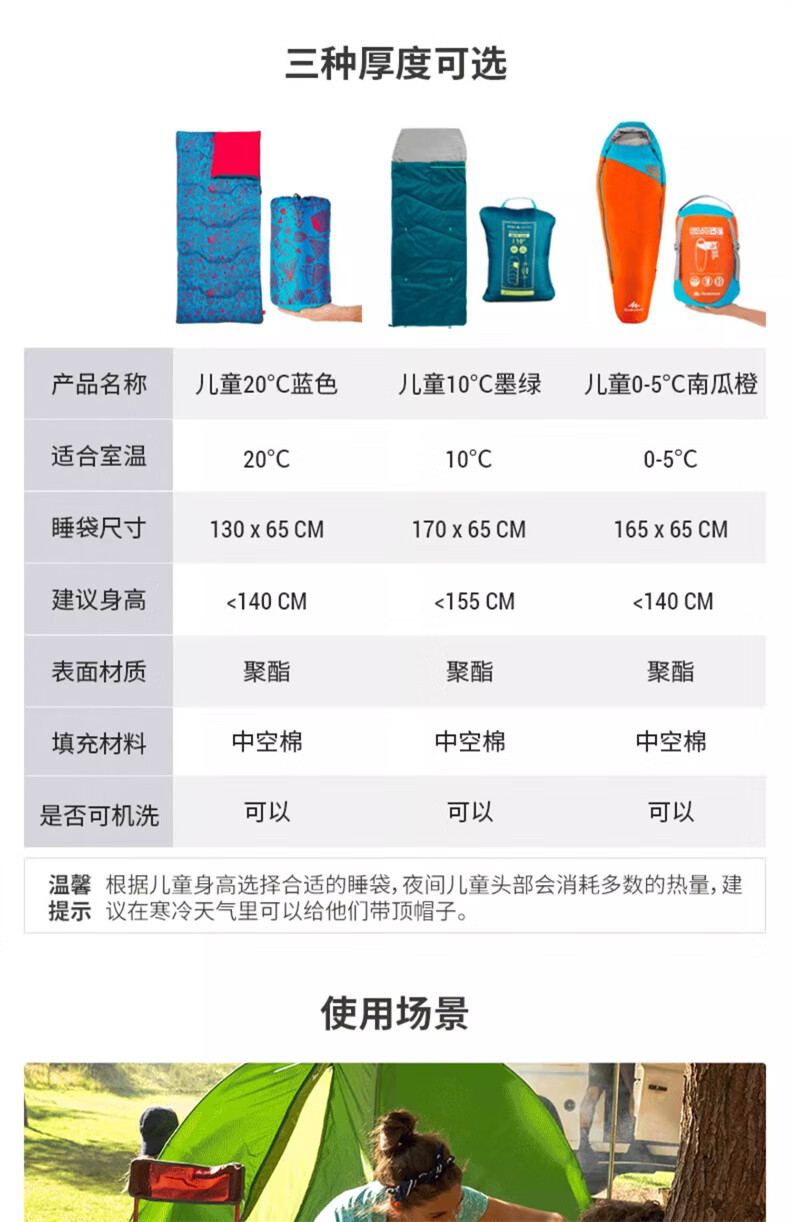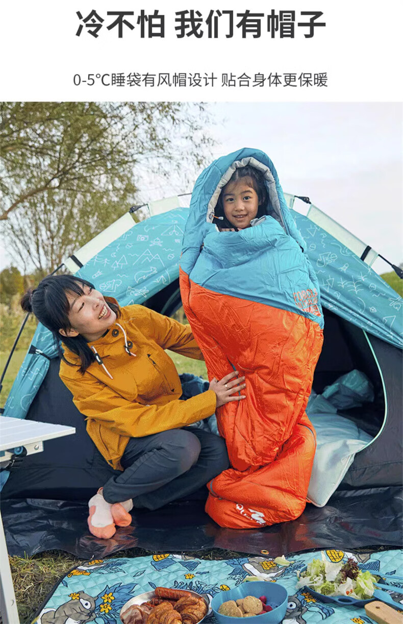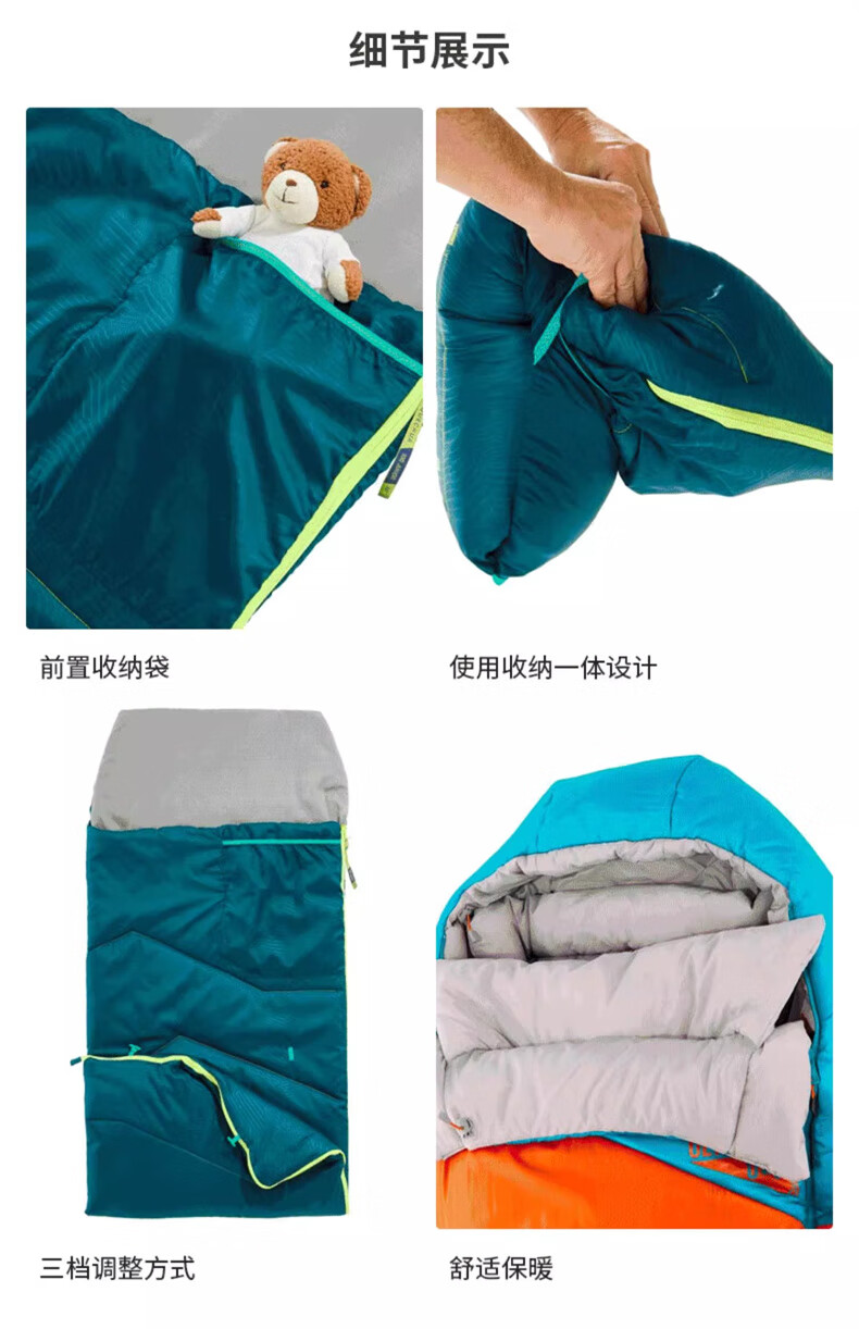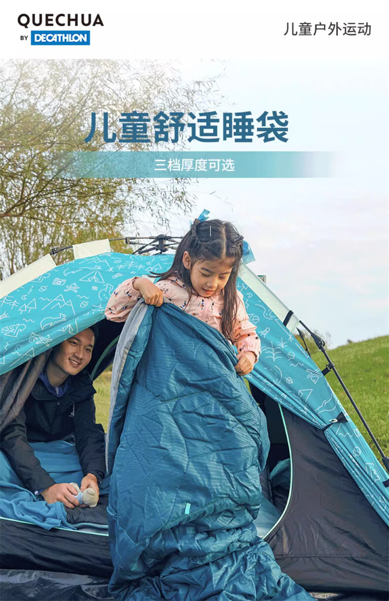 Decathlon children's anti-kick sleeping bag for outdoor camping, thickened and warm, indoor student lunch break, nap, travel, hotel dustproof, milk coffee color, three-level adjustment, suitable for 10 C
