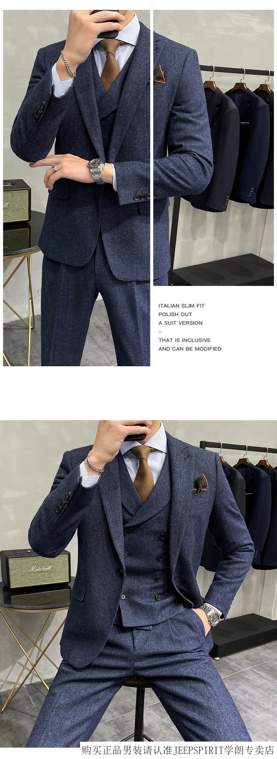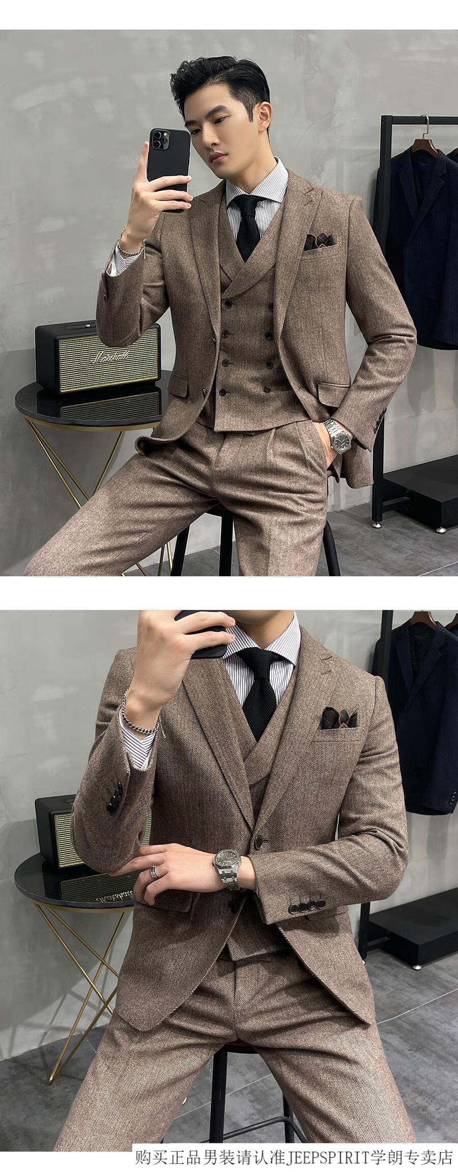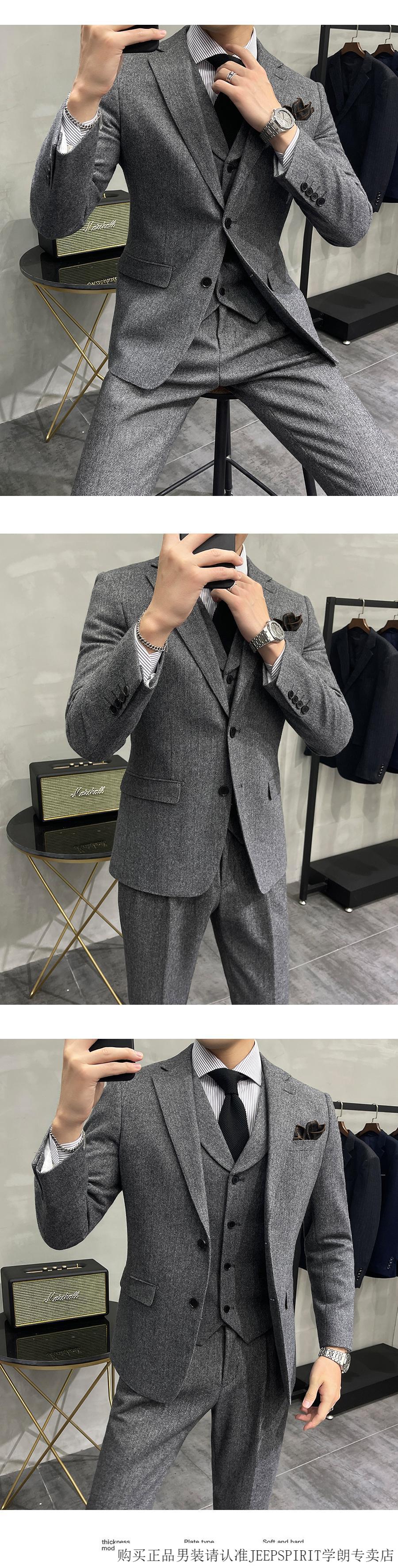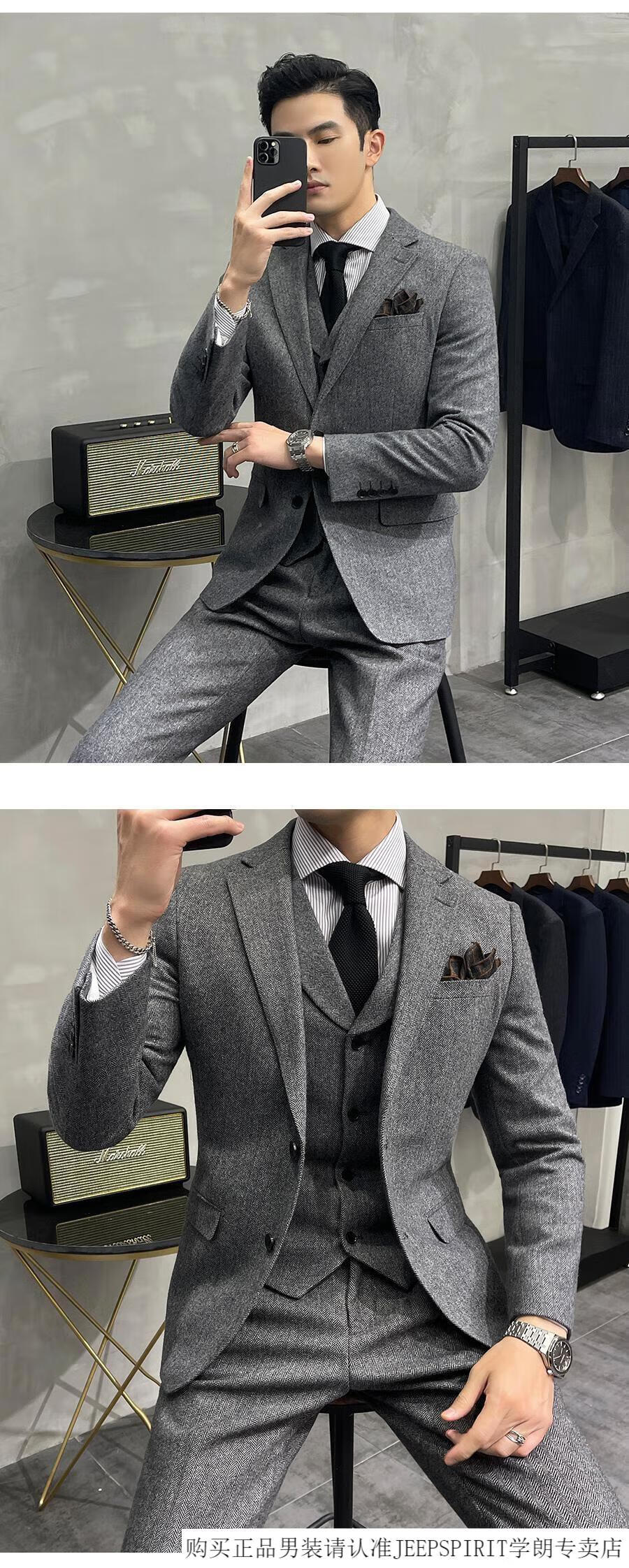 JEEP SPIRIT suit men's wool suit three-piece formal autumn and winter thickened groom's wedding dress XF2088-1 gray (suit + trousers) M