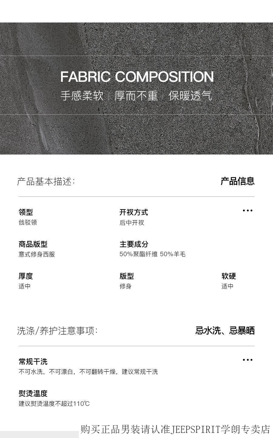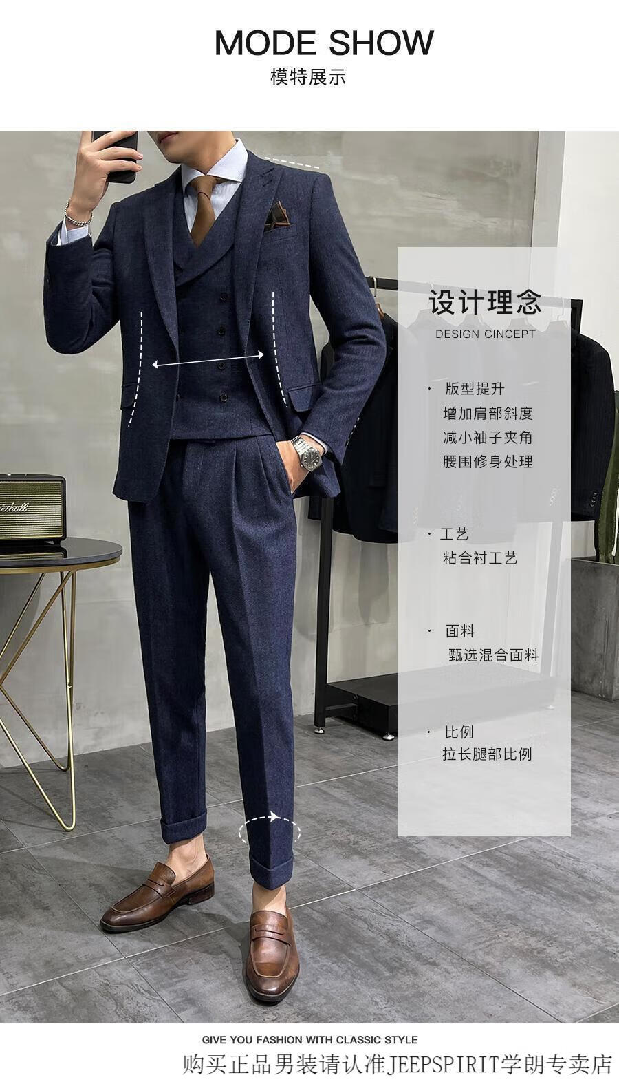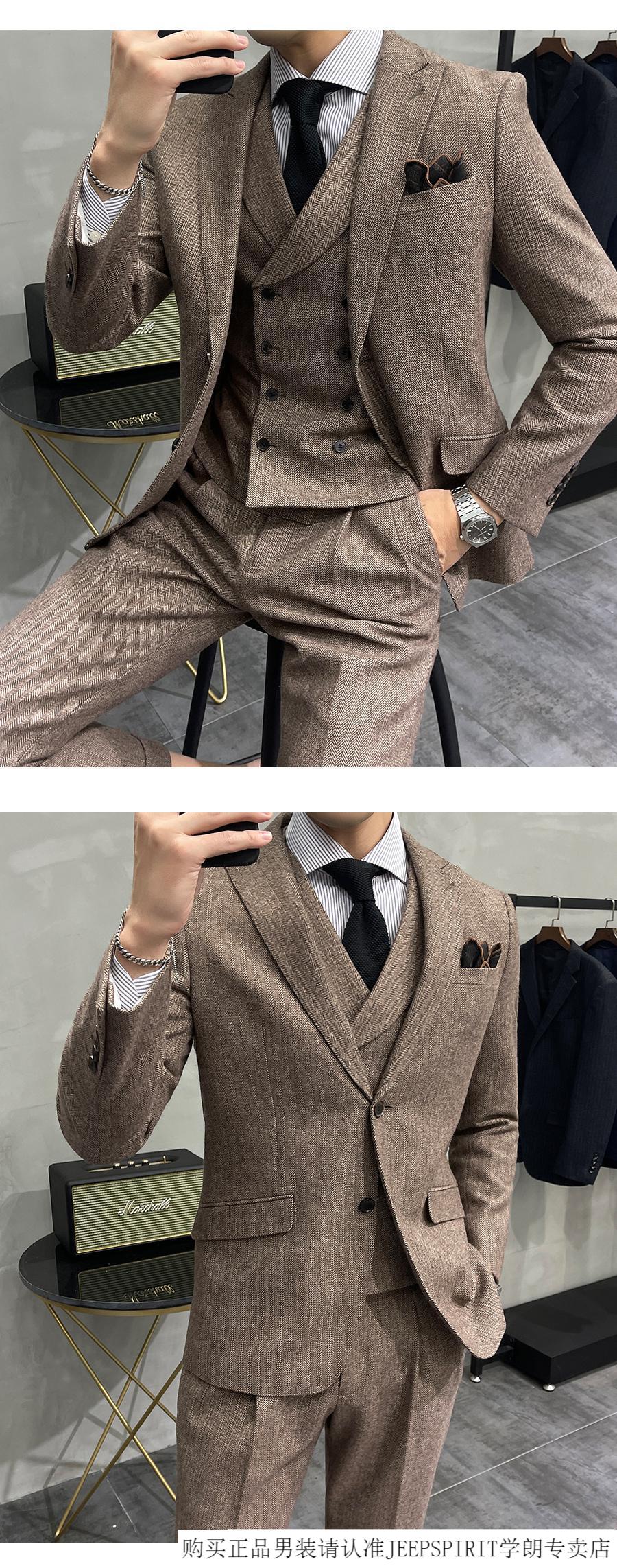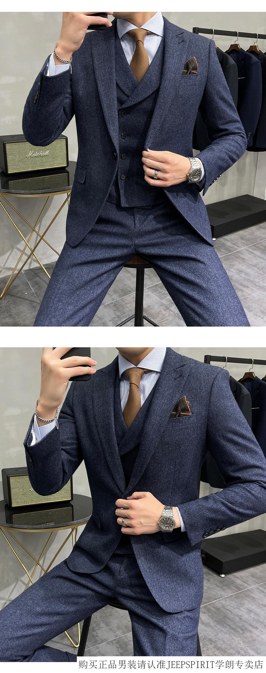 JEEP SPIRIT suit men's wool suit three-piece formal autumn and winter thickened groom's wedding dress XF2088-1 gray (suit + trousers) M