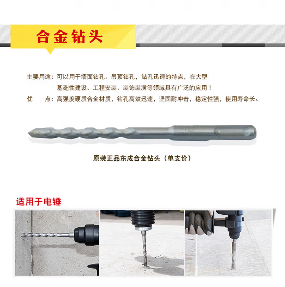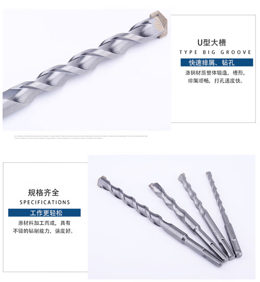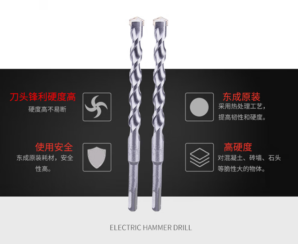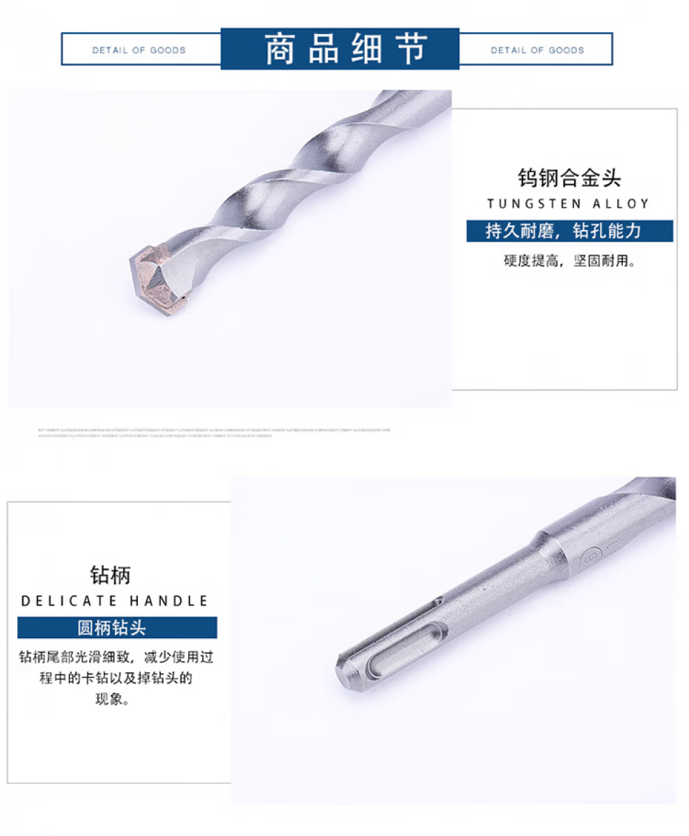 Dongcheng electric hammer drill bit with round handle, two pits and two slots, 6-25mm concrete impact drilling wall drilling drill bit, round handle electric hammer drill bit-6X110mm