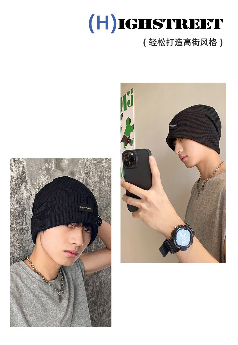 Pull-back hats for men in autumn and winter, trendy and versatile high-elastic cold hats, headscarves, women's hoods, knitted hats, hairbands, nightcaps, black, one size fits all