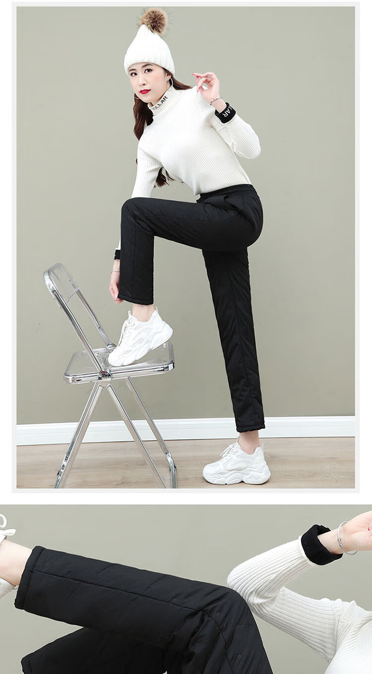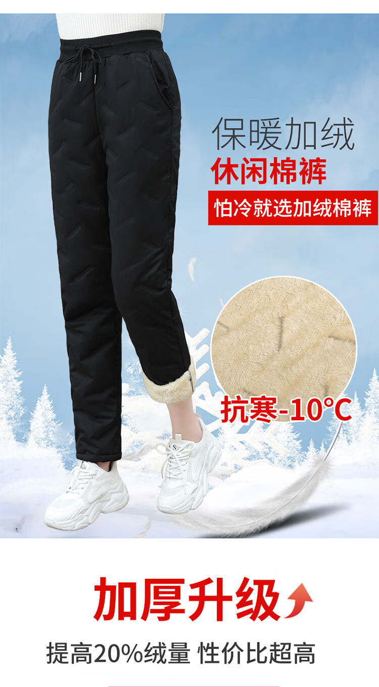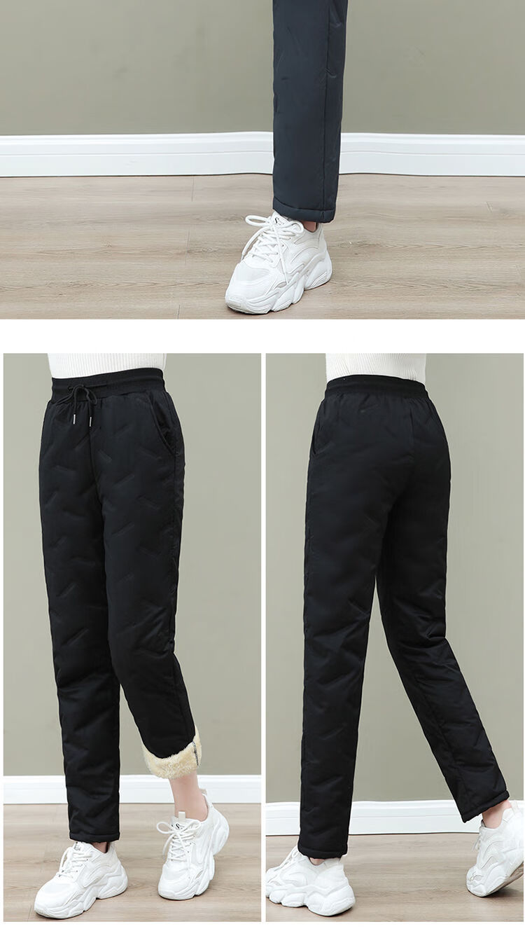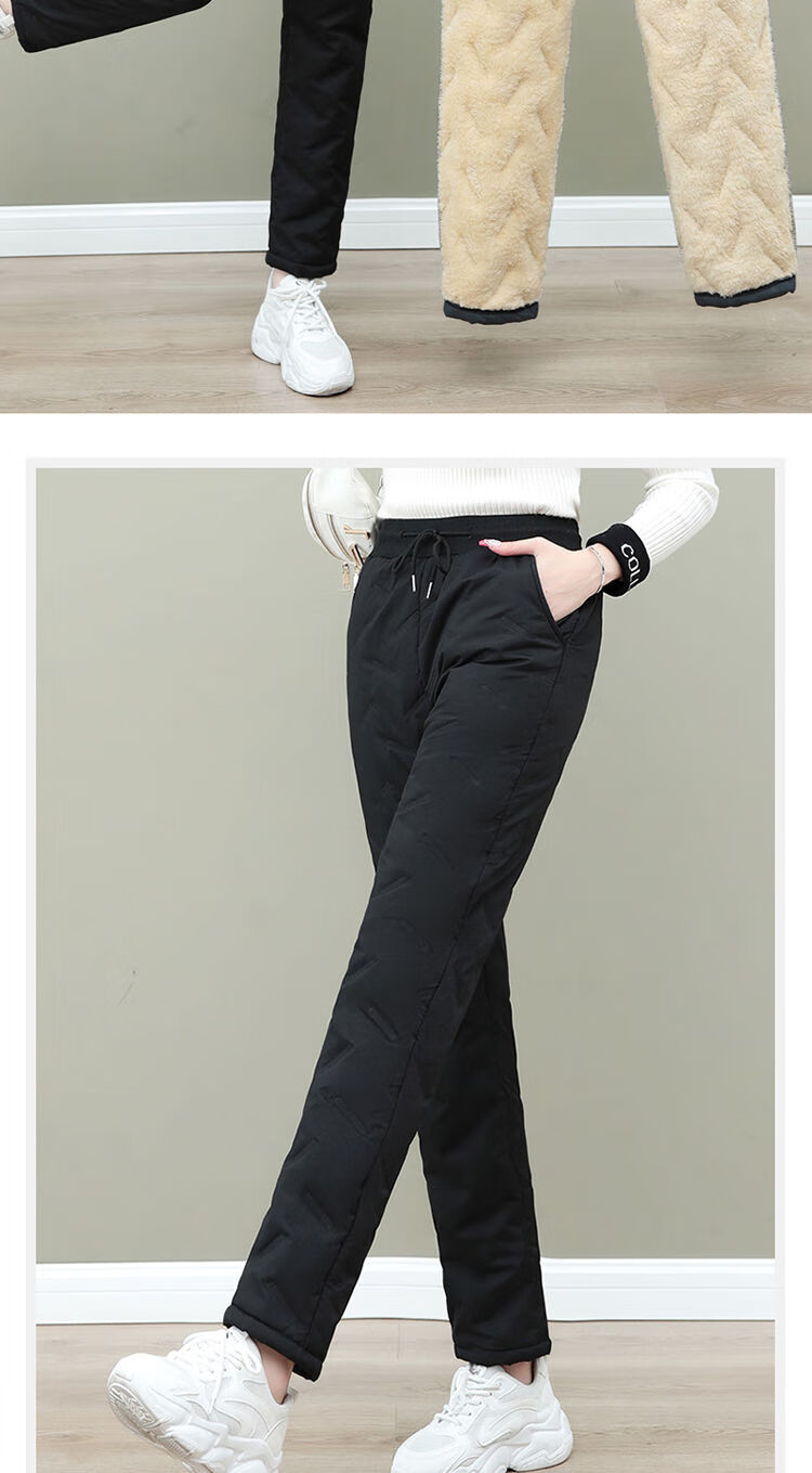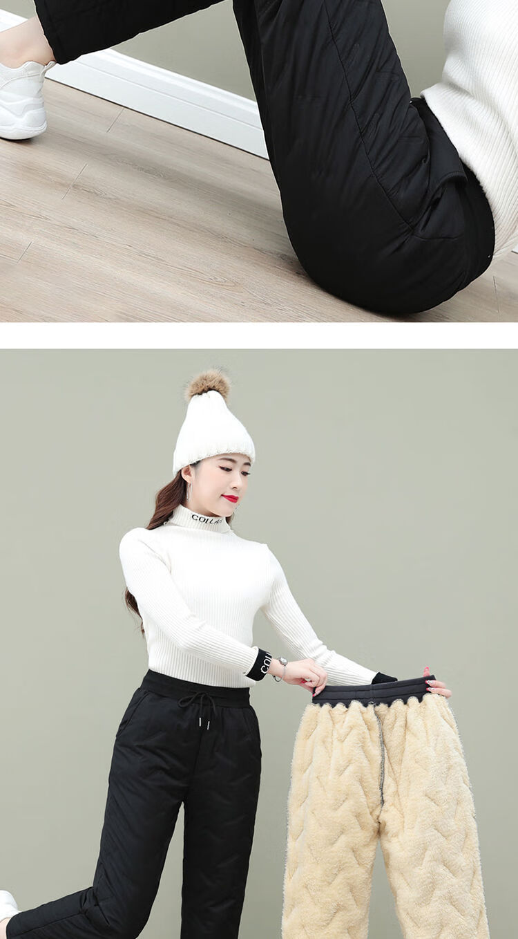 Woodpecker (TUCANO) cotton trousers for women in winter with velvet and thickening, northeastern outer wear for cold protection and warmth, large fashionable women's lamb velvet warm pants, trendy black - lamb velvet and thickened style XL Recommended 105-120Jin Jin is equal to about 0.5 kg