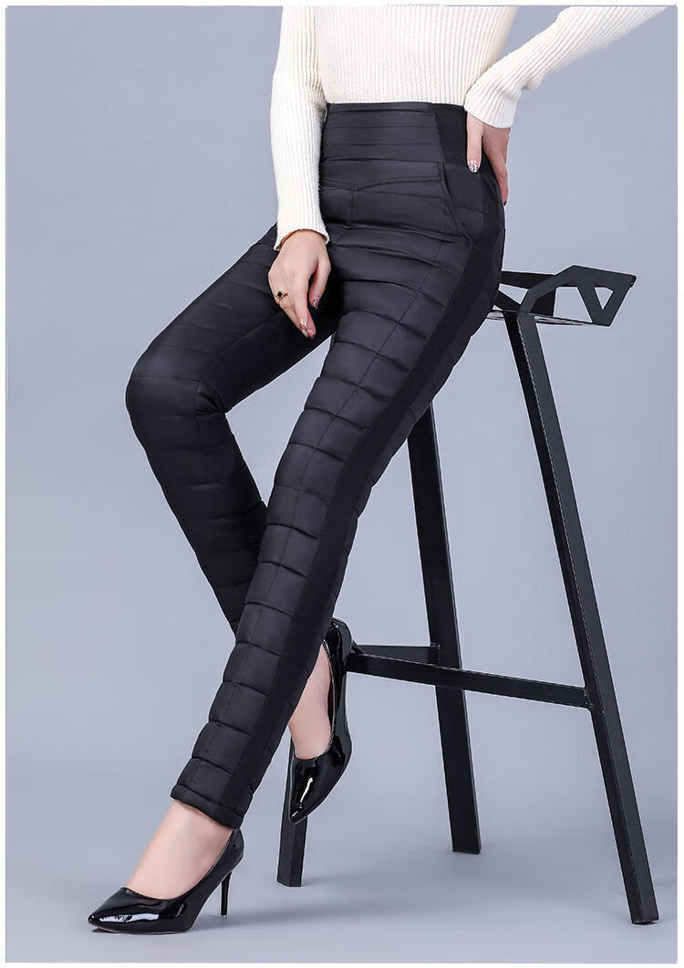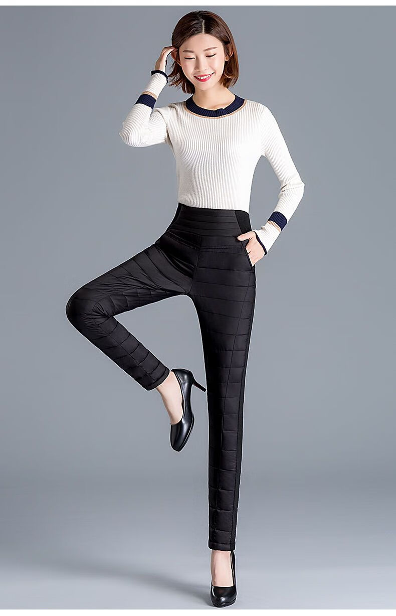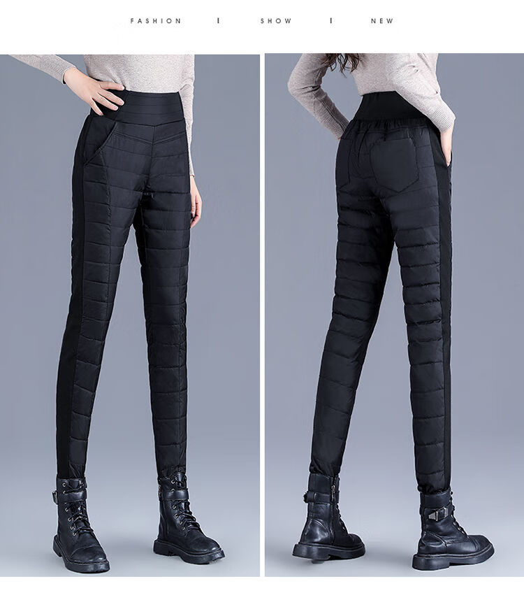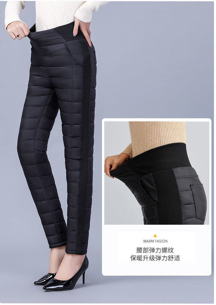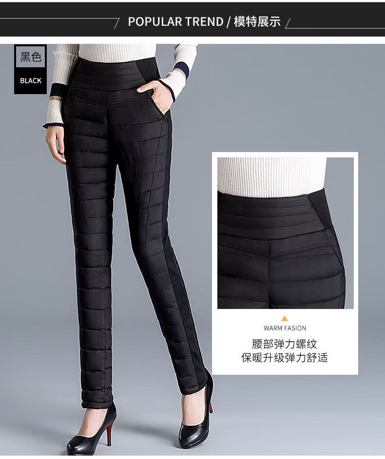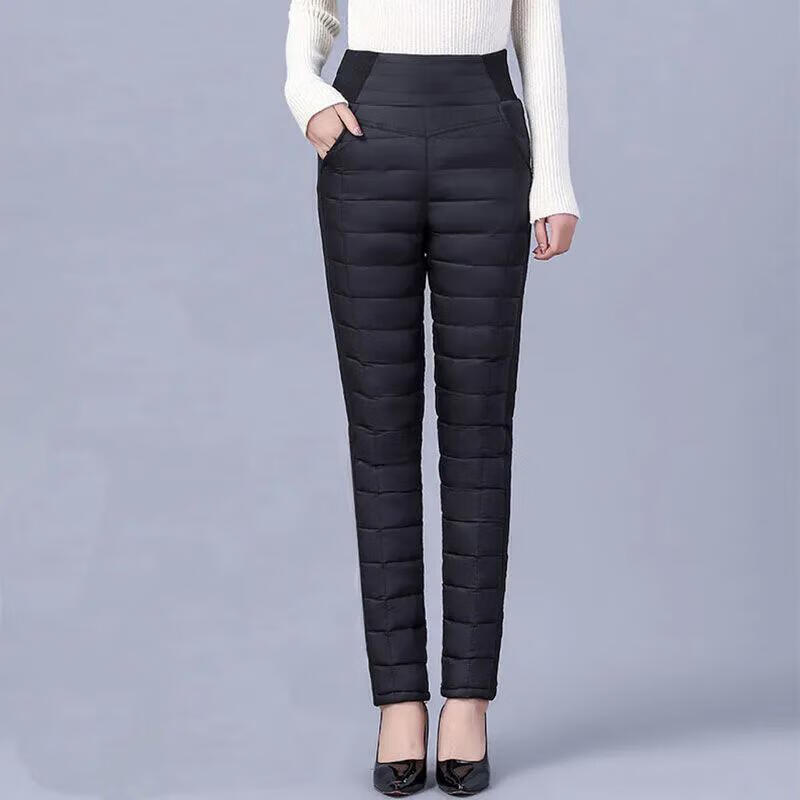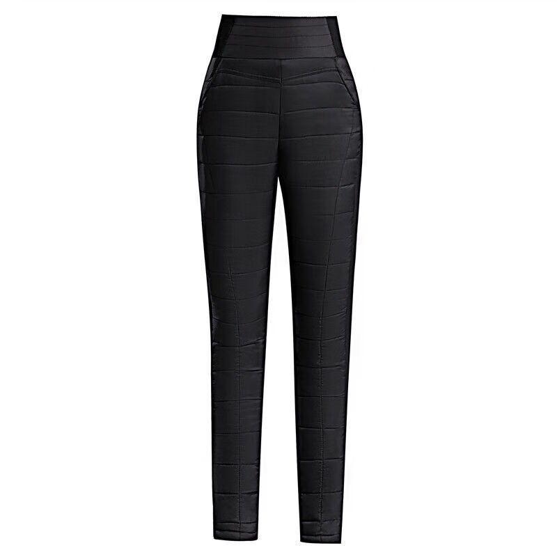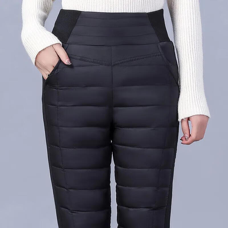 Woodpecker (TUCANO) Down Cotton Pants Women's Outer Wear High Waist New Women's Elastic Slim Korean Style Thickened Cold-Resistant Winter Warm Cotton Pants Women Black XL Recommended 115-125 Jin Jin equals 0.5 kg