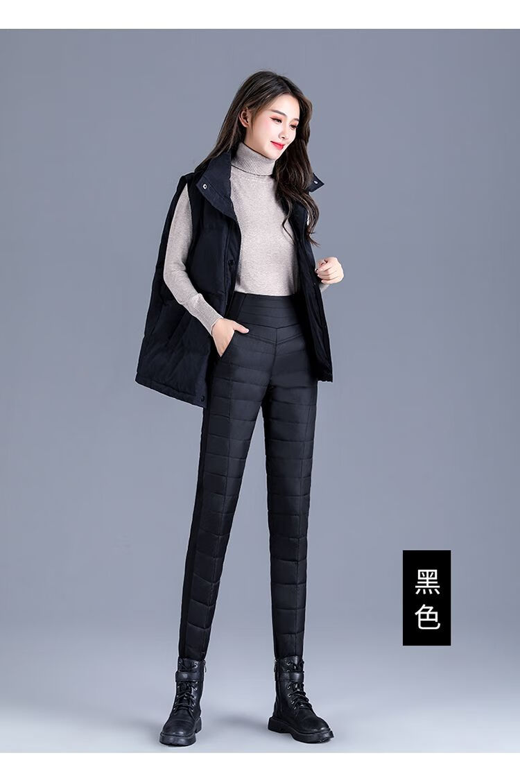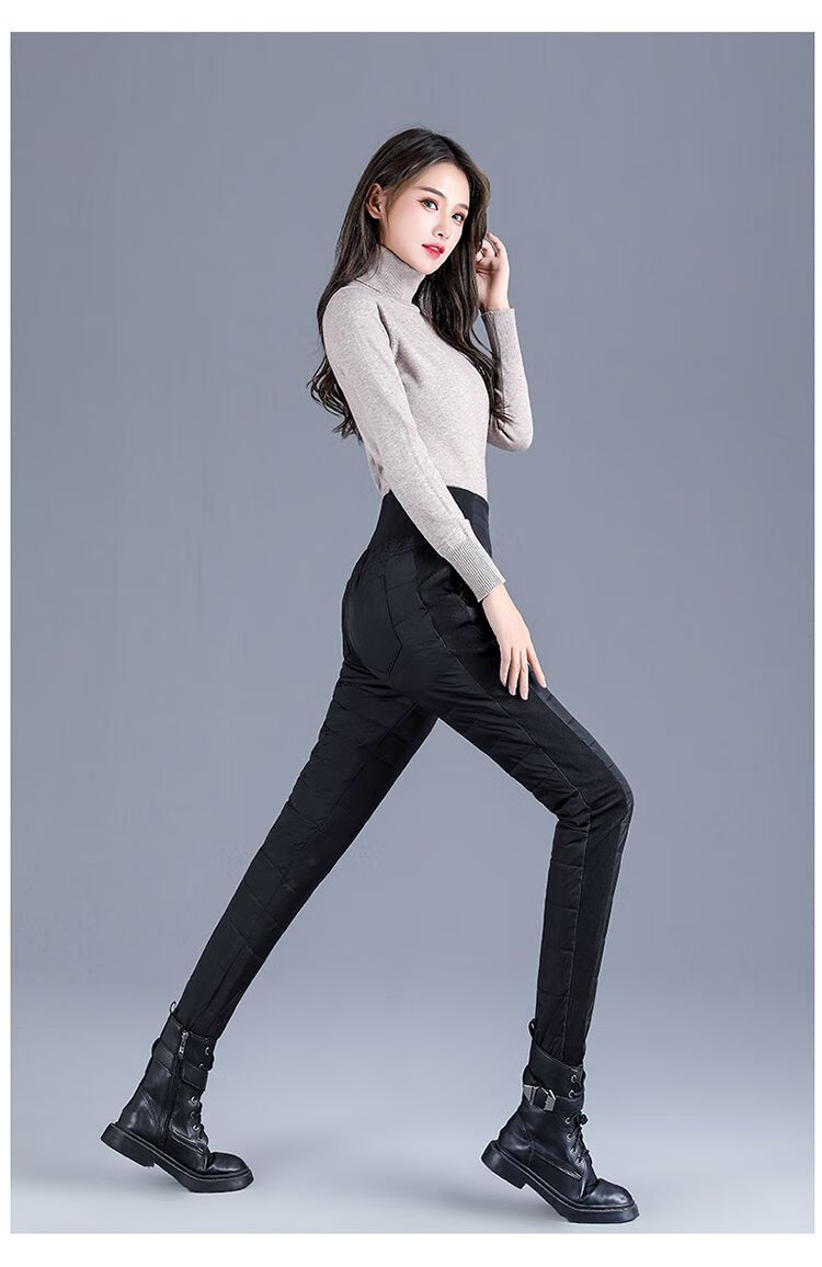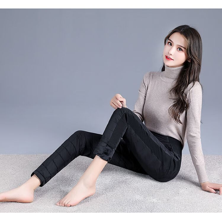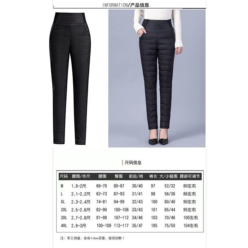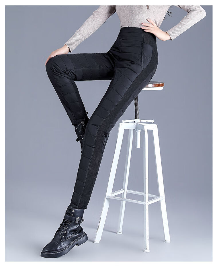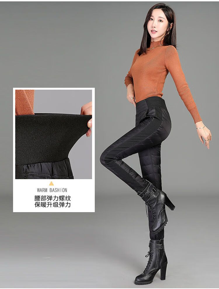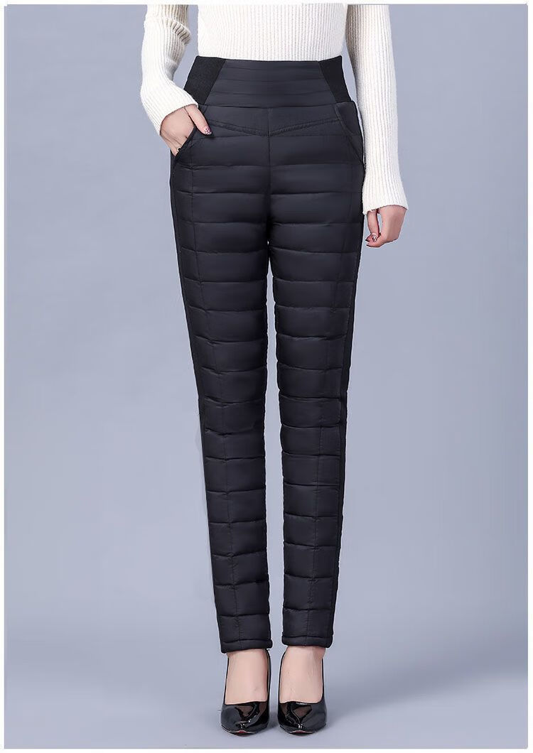 Woodpecker (TUCANO) Down Cotton Pants Women's Outer Wear High Waist New Women's Elastic Slim Korean Style Thickened Cold-Resistant Winter Warm Cotton Pants Women Black XL Recommended 115-125 Jin Jin equals 0.5 kg