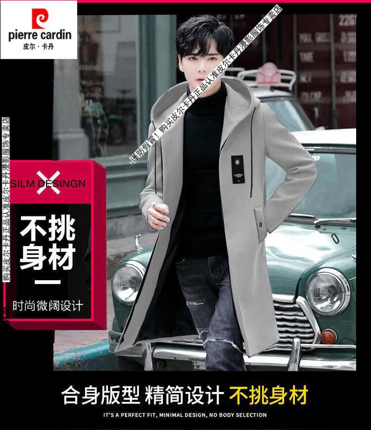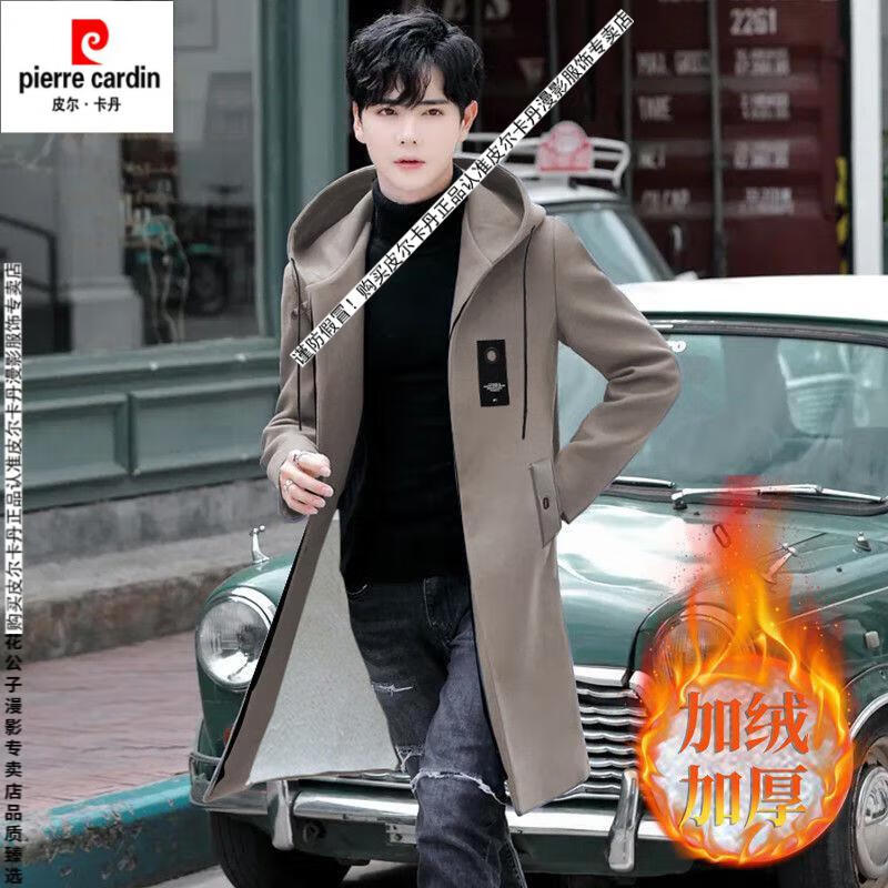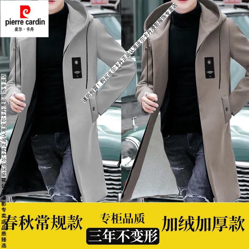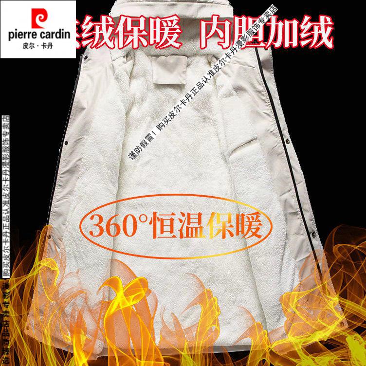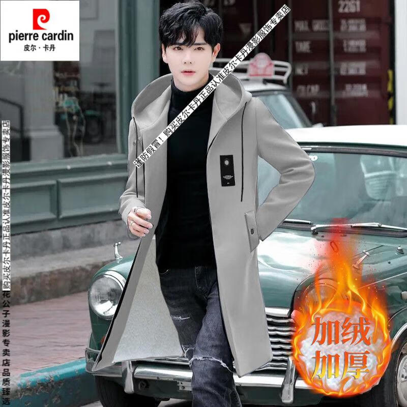 Pierre Cardin windbreaker men's spring and autumn mid-length khaki casual coat new coat men's style plus velvet and thickening 8029-black plus velvet 4XL