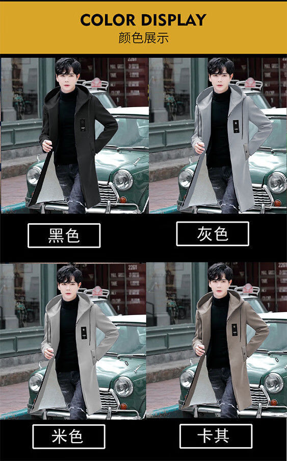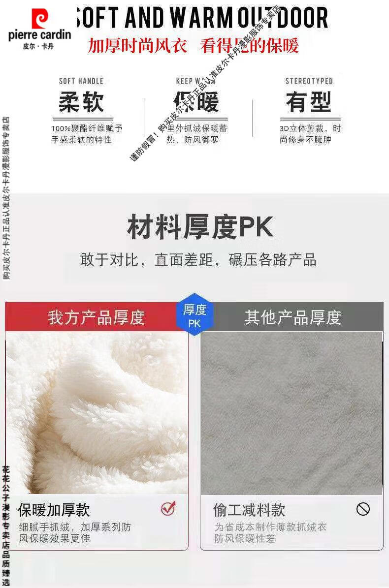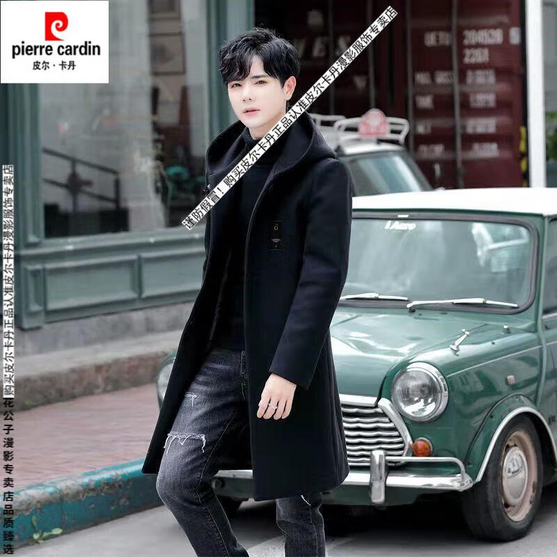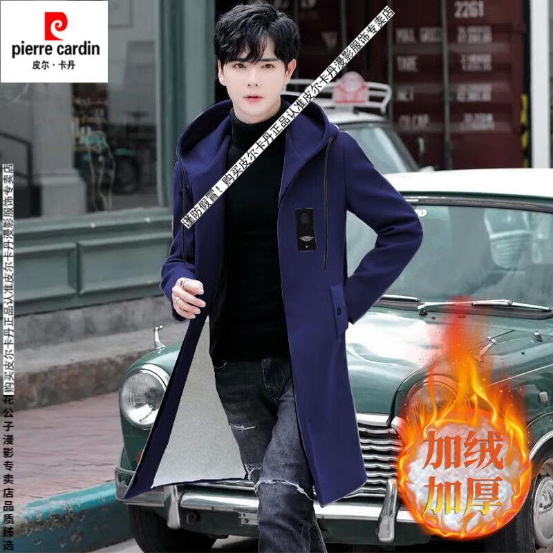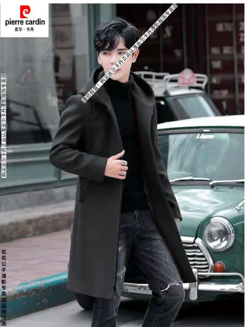Pierre Cardin windbreaker men's spring and autumn mid-length khaki casual coat new coat men's style plus velvet and thickening 8029-black plus velvet 4XL