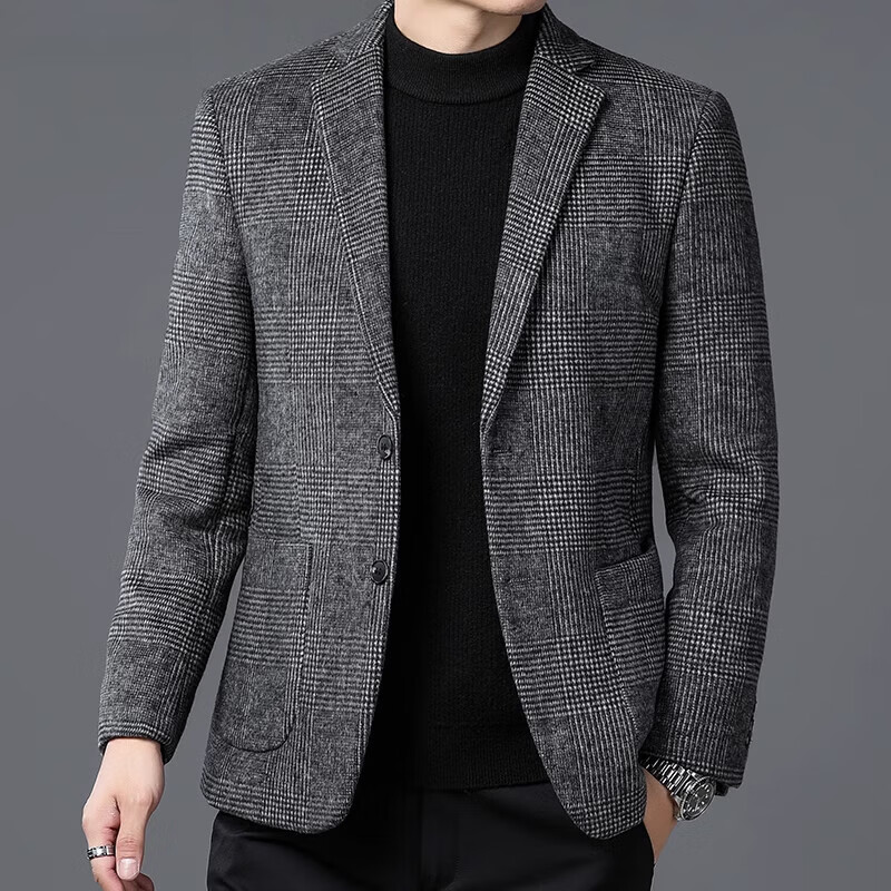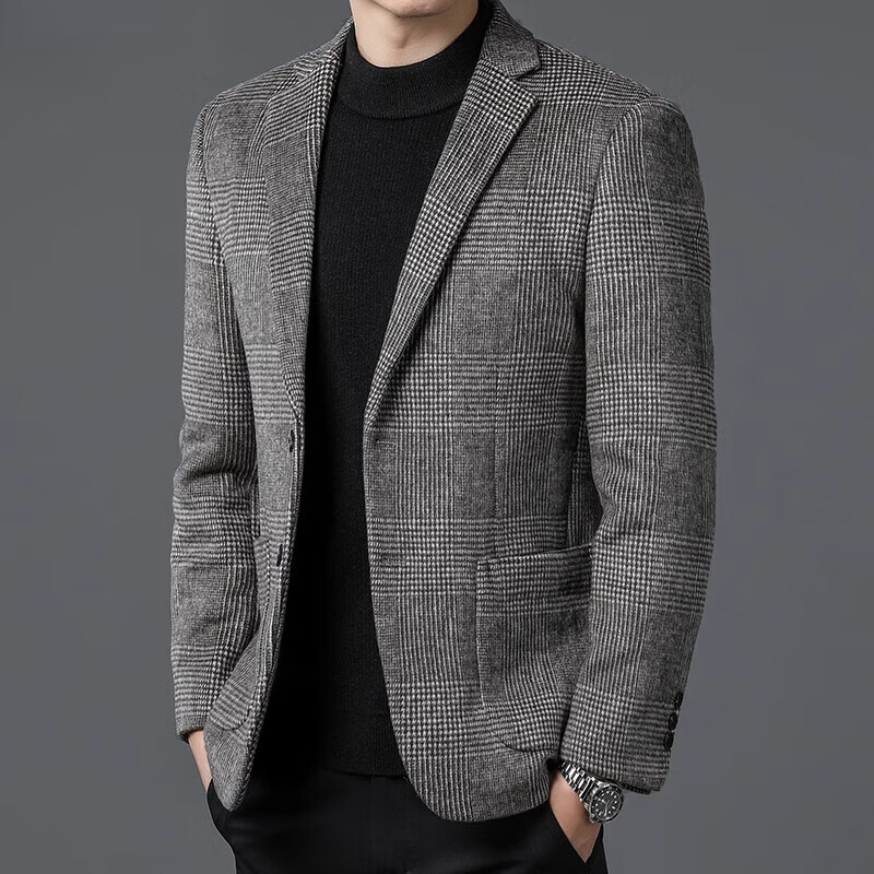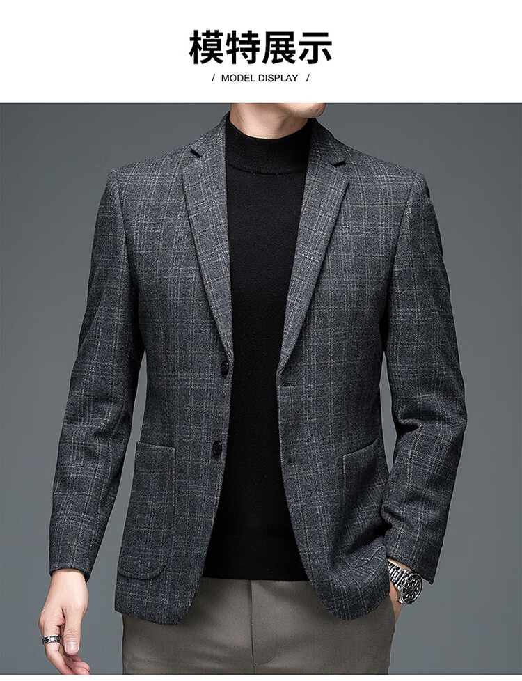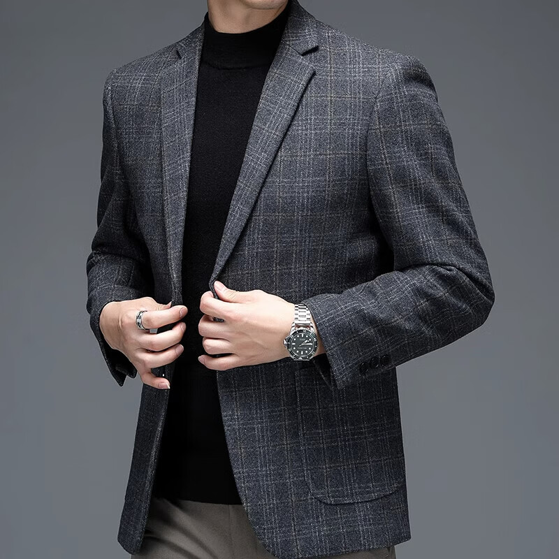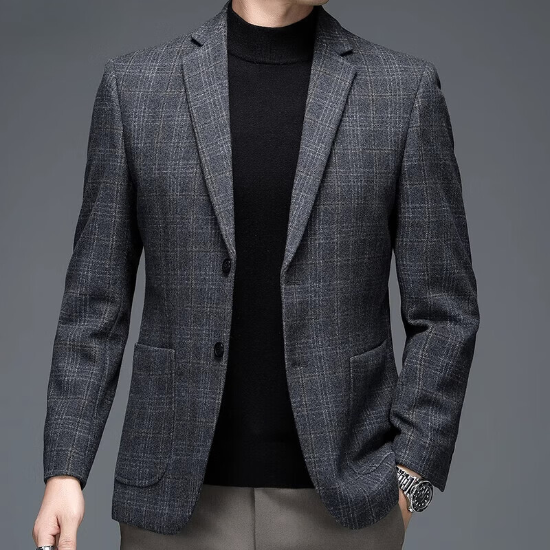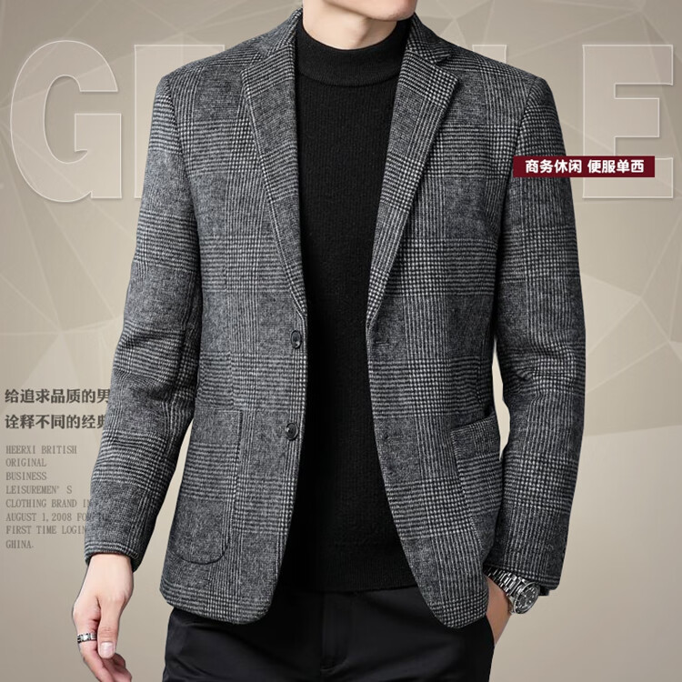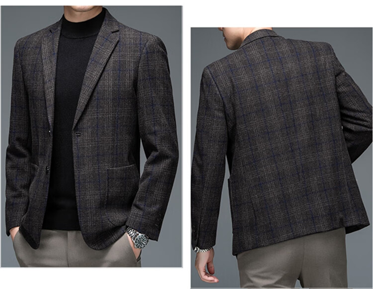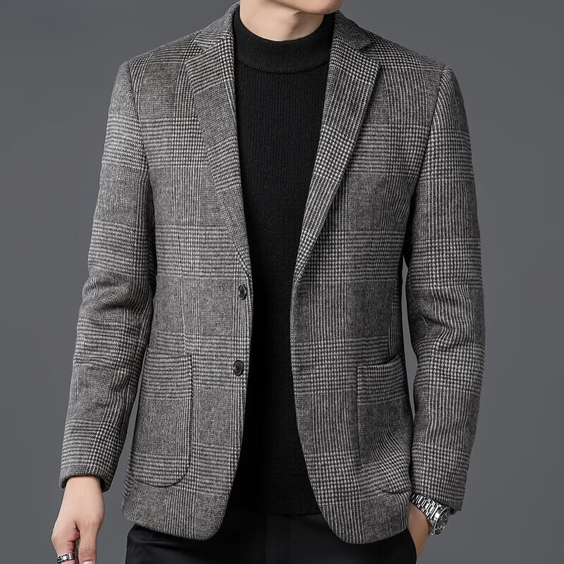 ROMON suit men's autumn and winter business casual suit jacket versatile men's wool single suit plaid jacket top 03 gray L 175