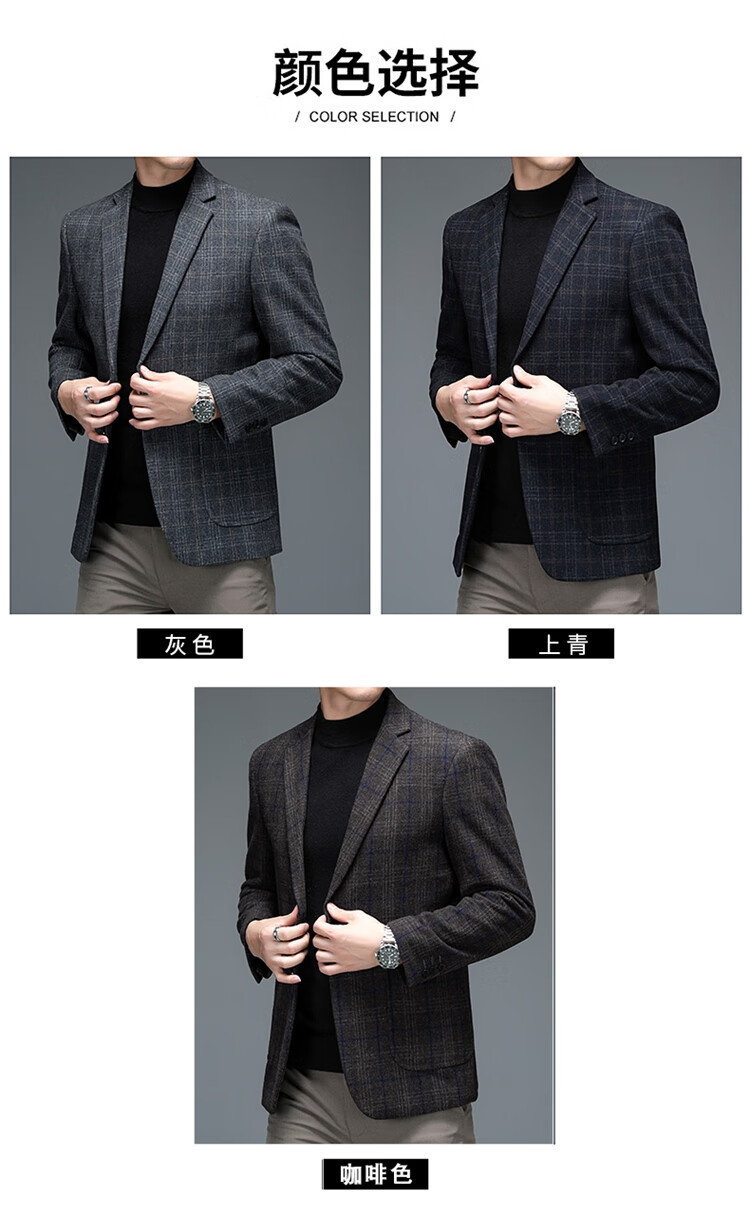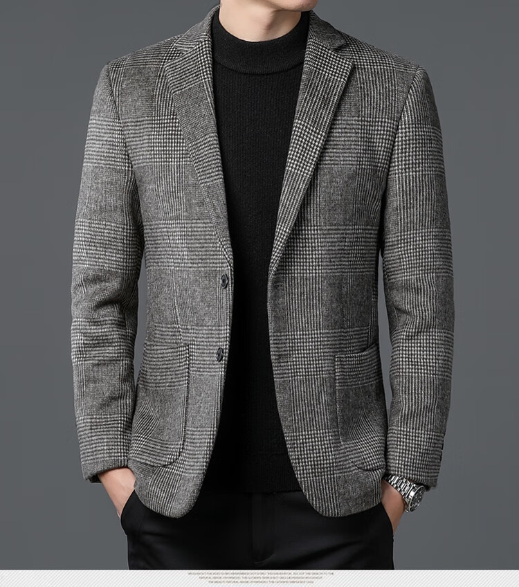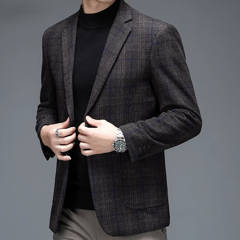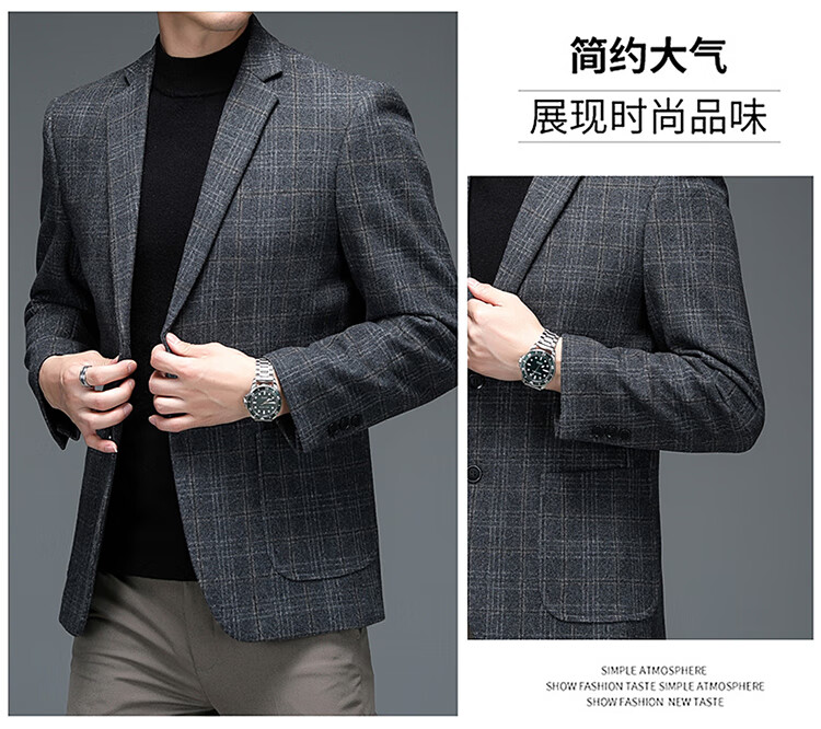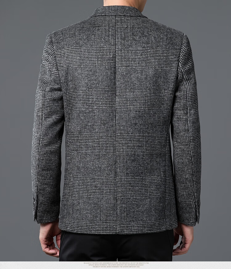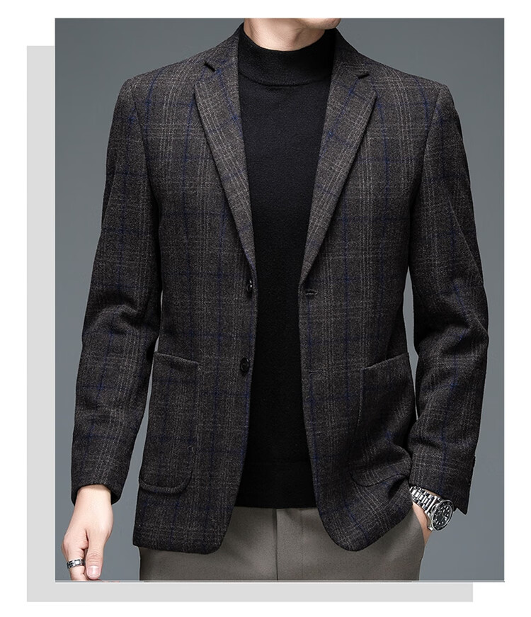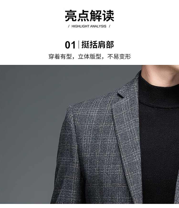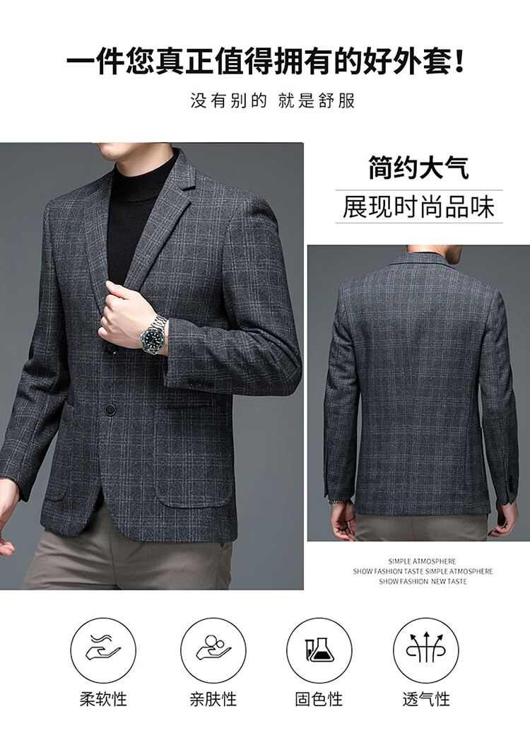 ROMON suit men's autumn and winter business casual suit jacket versatile men's wool single suit plaid jacket top 03 gray L 175