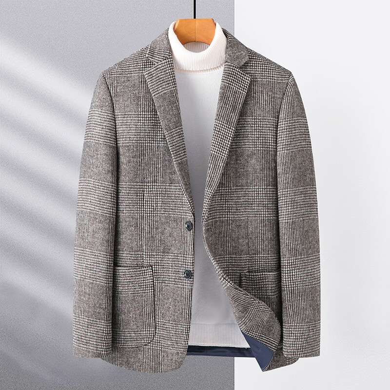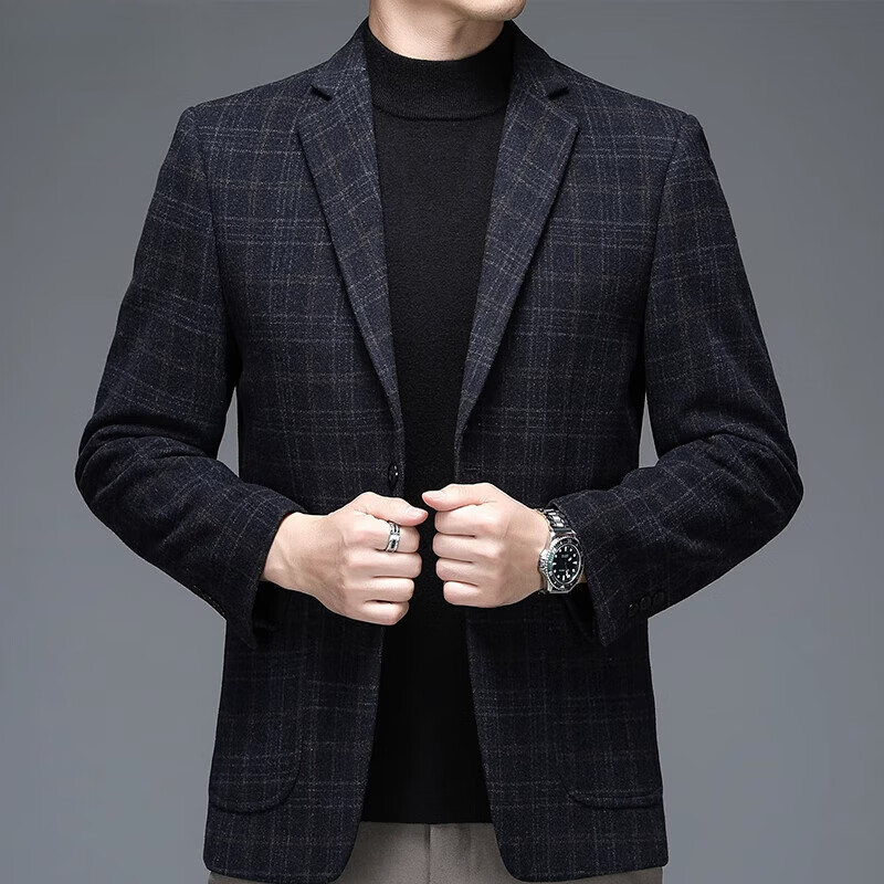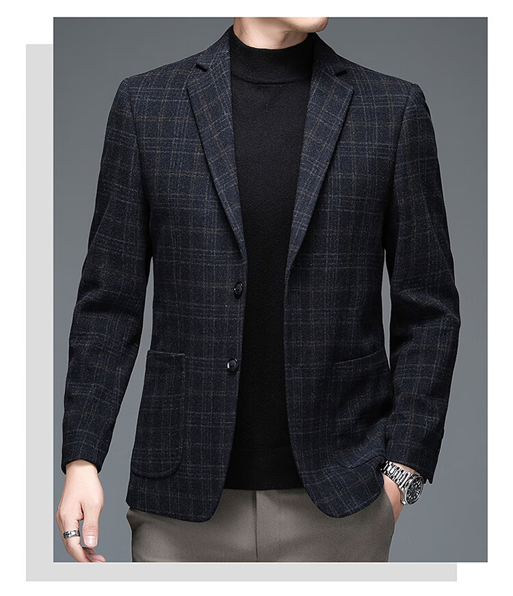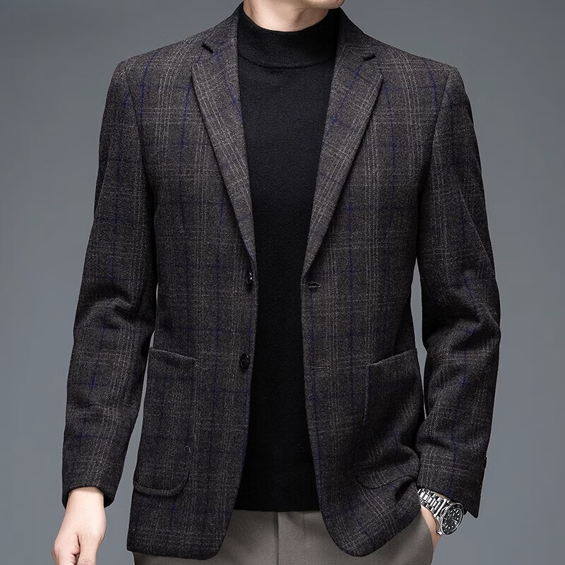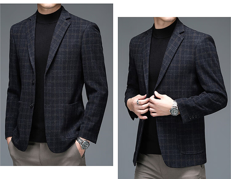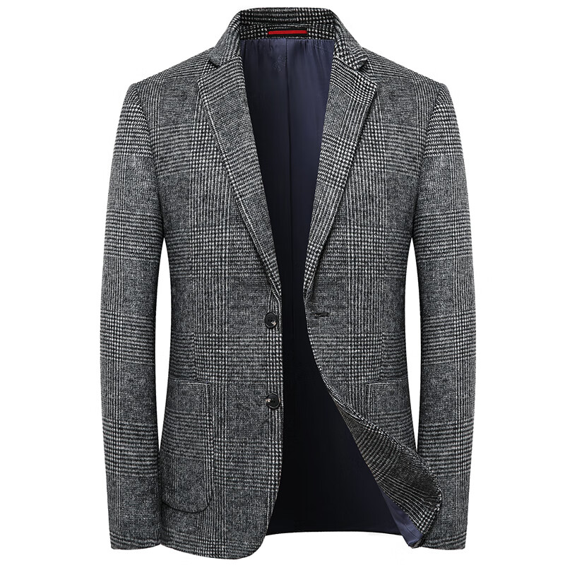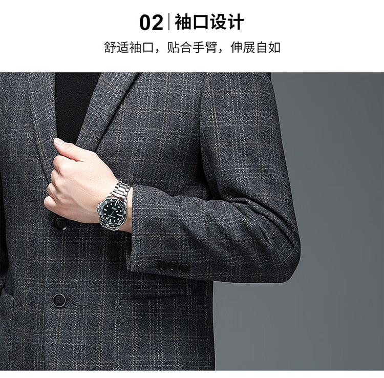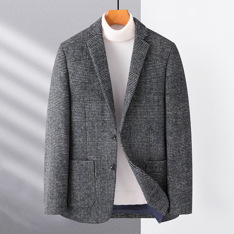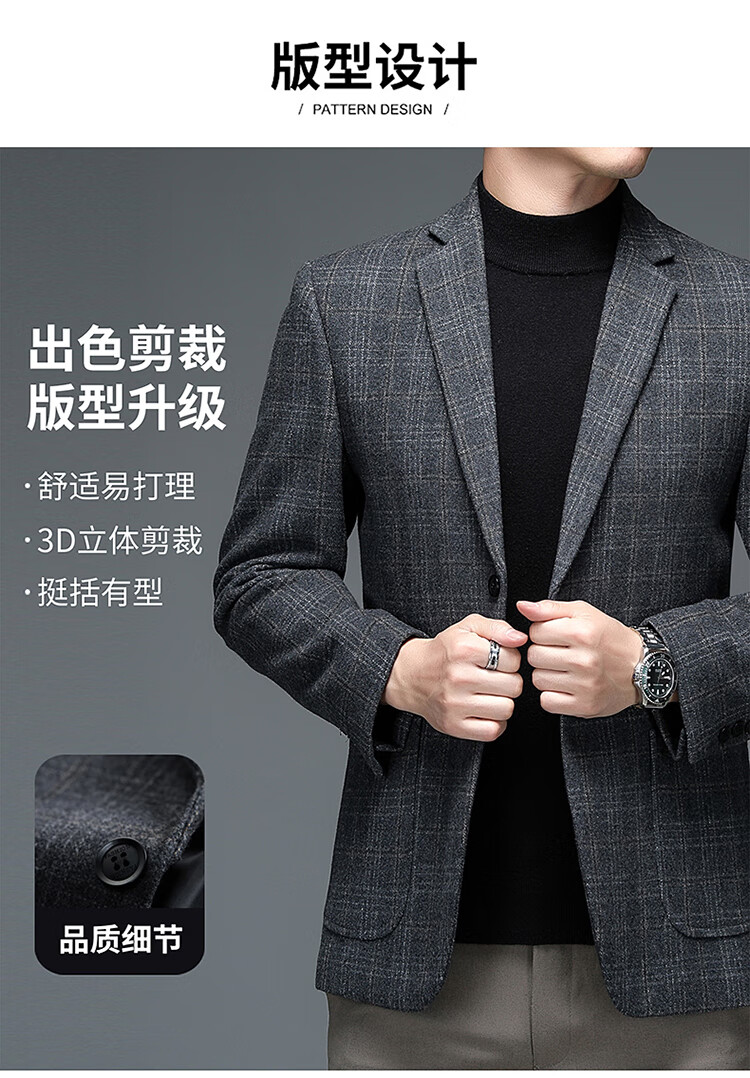 ROMON suit men's autumn and winter business casual suit jacket versatile men's wool single suit plaid jacket top 03 gray L 175