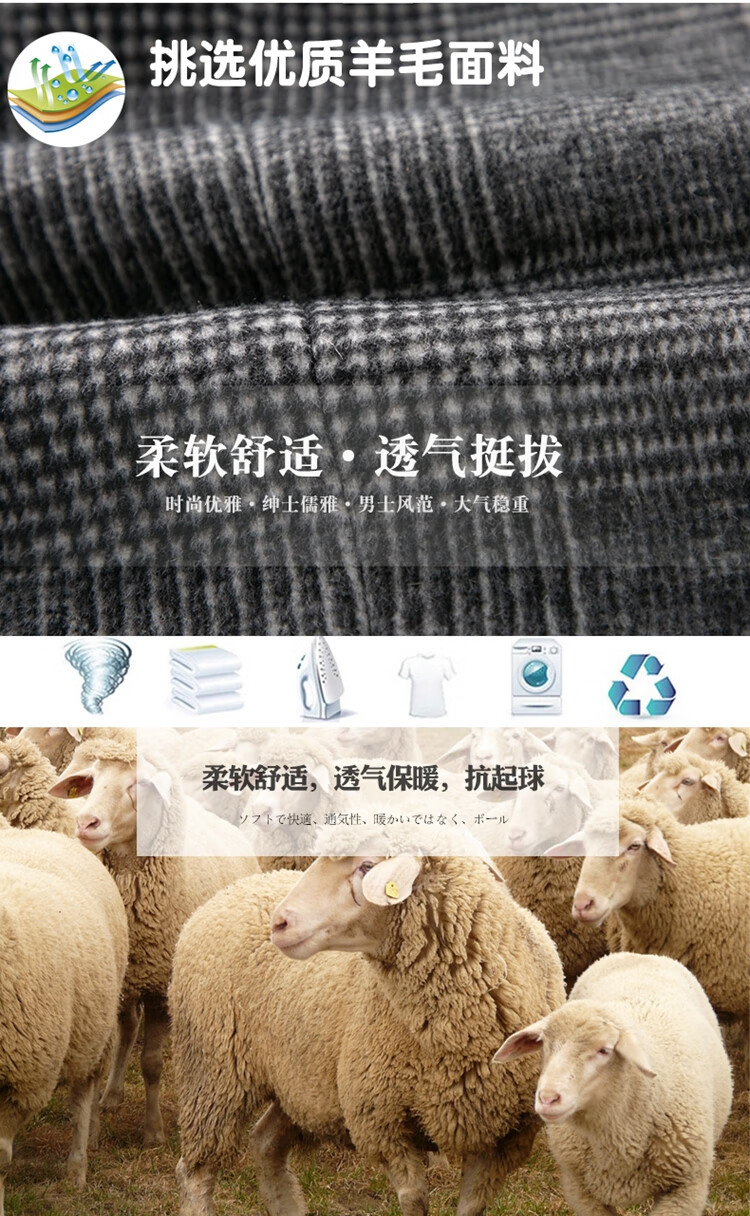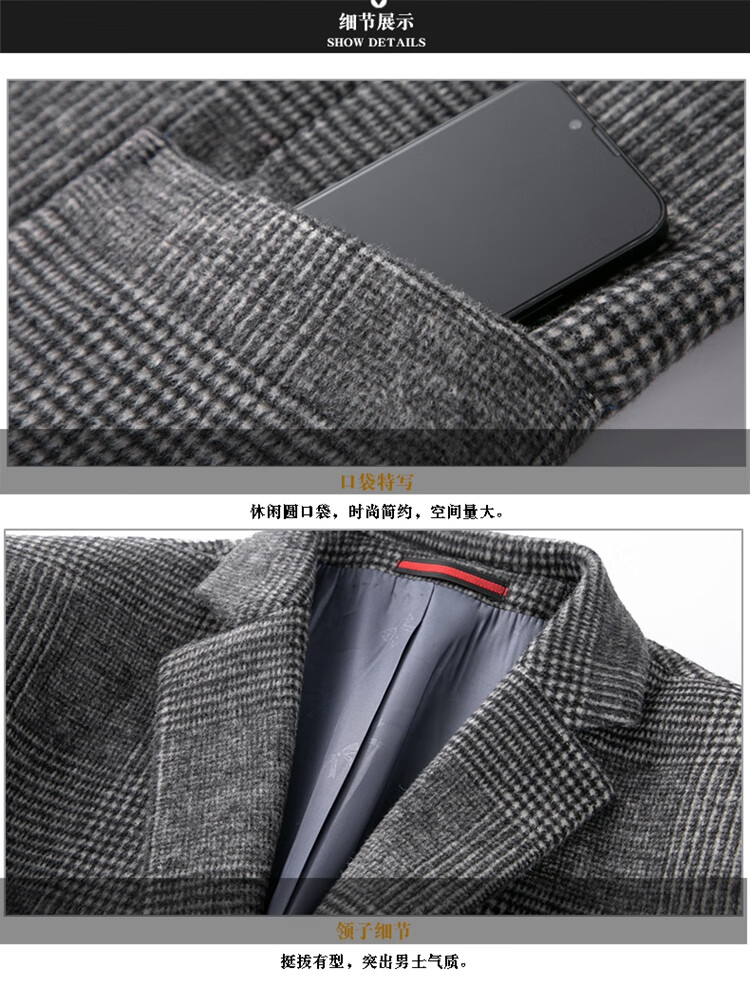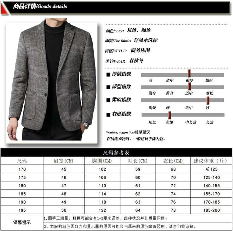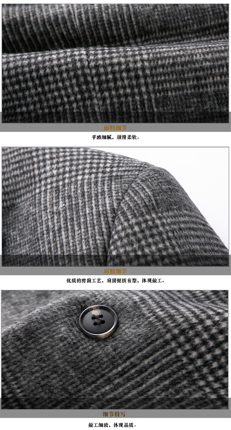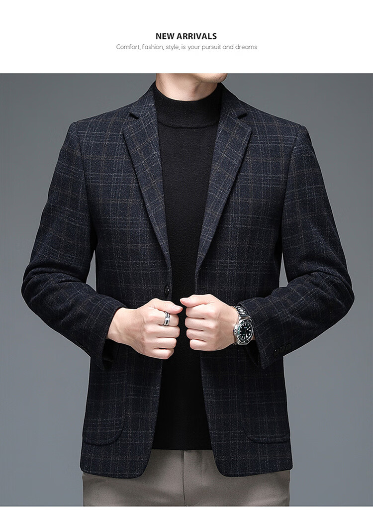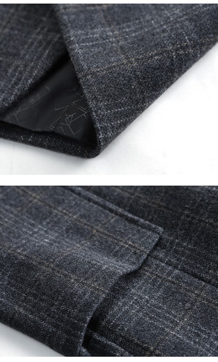 ROMON suit men's autumn and winter business casual suit jacket versatile men's wool single suit plaid jacket top 03 gray L 175