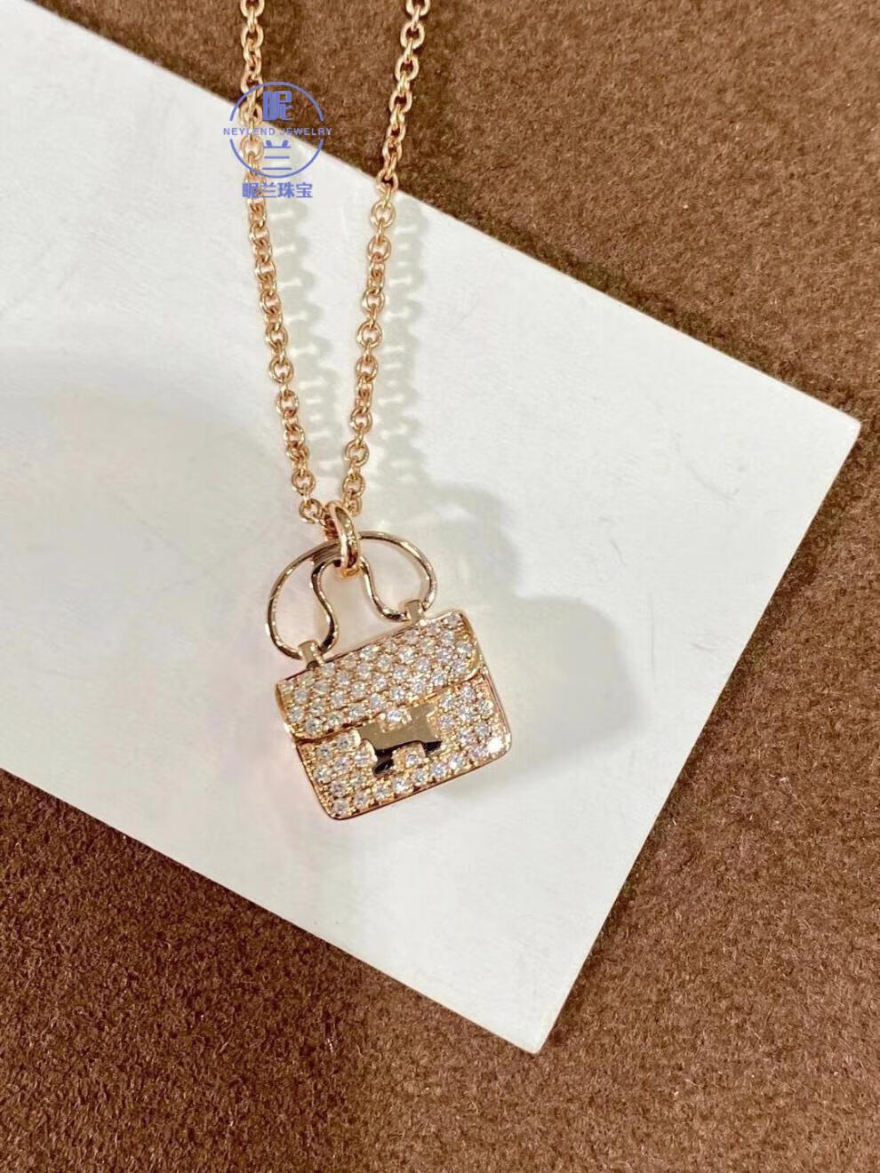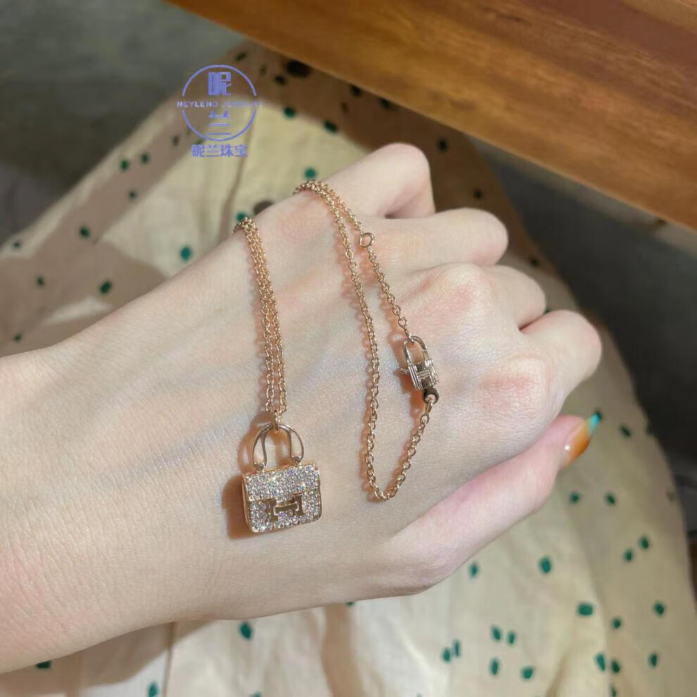 Nilan Fat Donglai same style 18K rose gold H letter necklace H Kangkang bag women's light luxury niche design new H bag rose gold