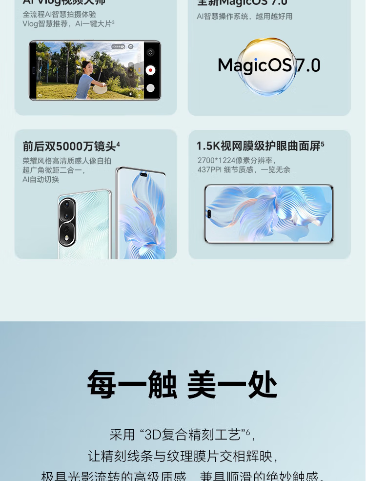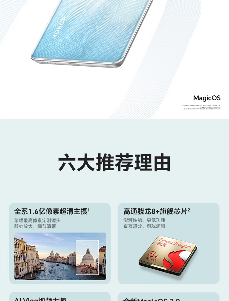 Honor 80pro brand new, unopened and unactivated + nationwide warranty, 160-megapixel ultra-clear main camera, Snapdragon 8+ flagship chip, 66W fast charge, NFC, blue wave, 5G full Netcom, 8GB+256GB
