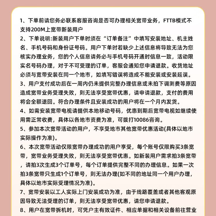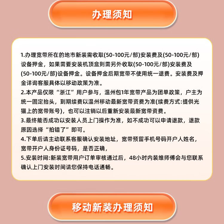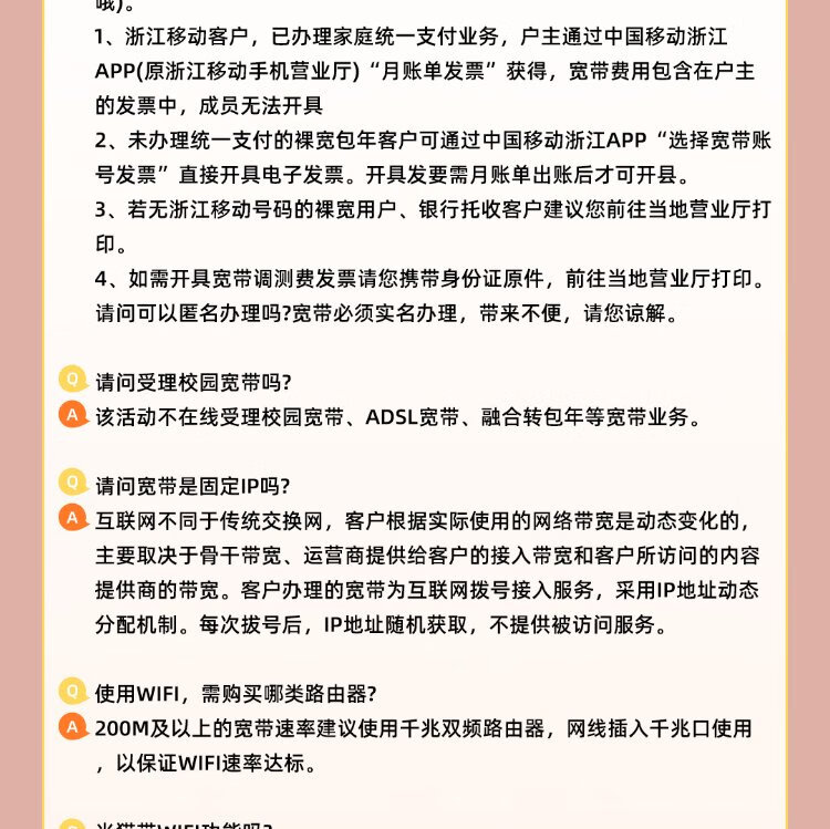 China Mobile Zhejiang Mobile Non-Unicom Telecom Gigabit Low-cost Broadband Quick door-to-door installation of optical fiber Broadband commissioning fee deposit consultation customer service
