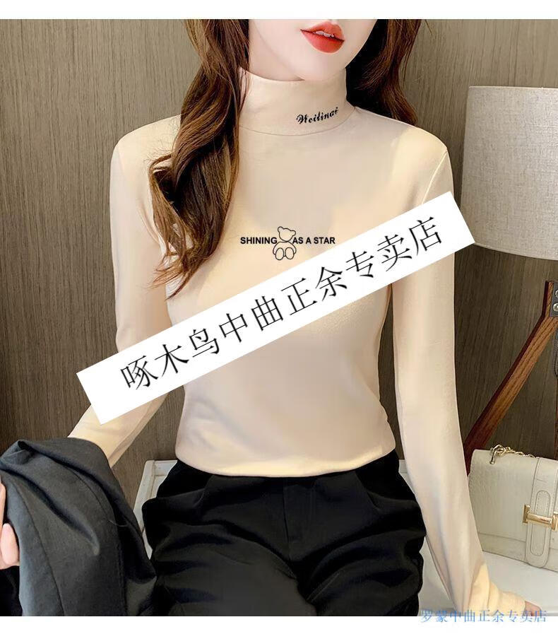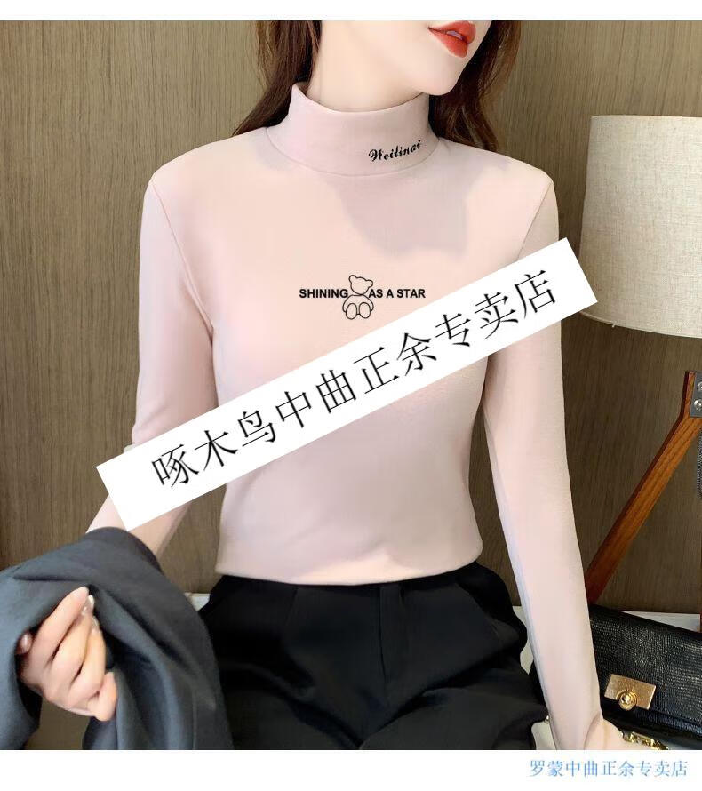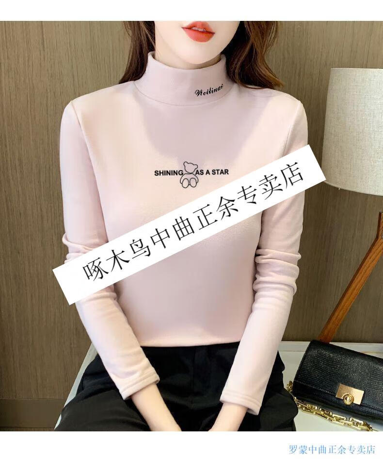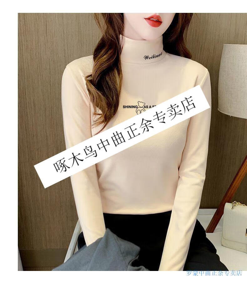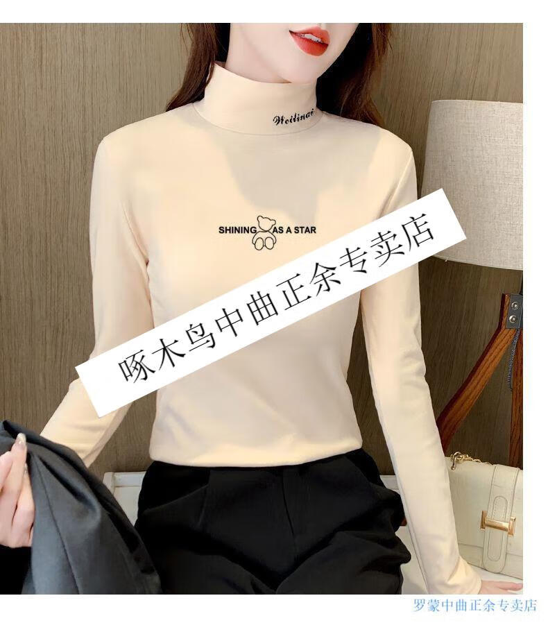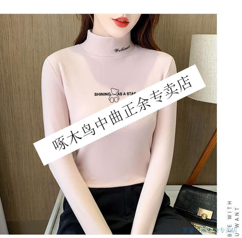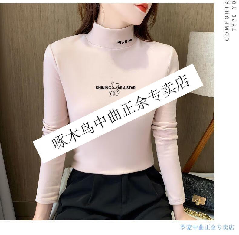 Woodpecker German velvet half-turtle collar bottoming shirt for women in autumn and winter slim fit warm plus velvet bear top new long-sleeved T-shirt Charming apricot thickened double-sided velvet L Recommended 105-120Jin Jin equals 0.5 kg