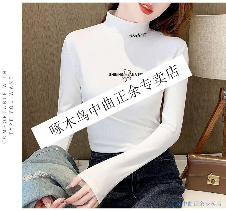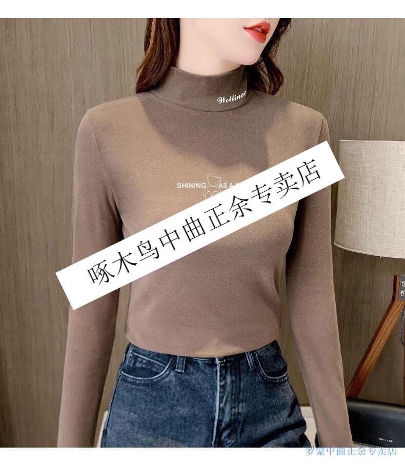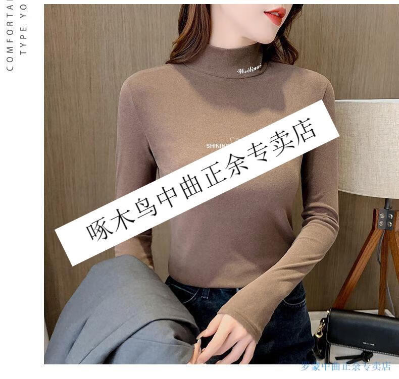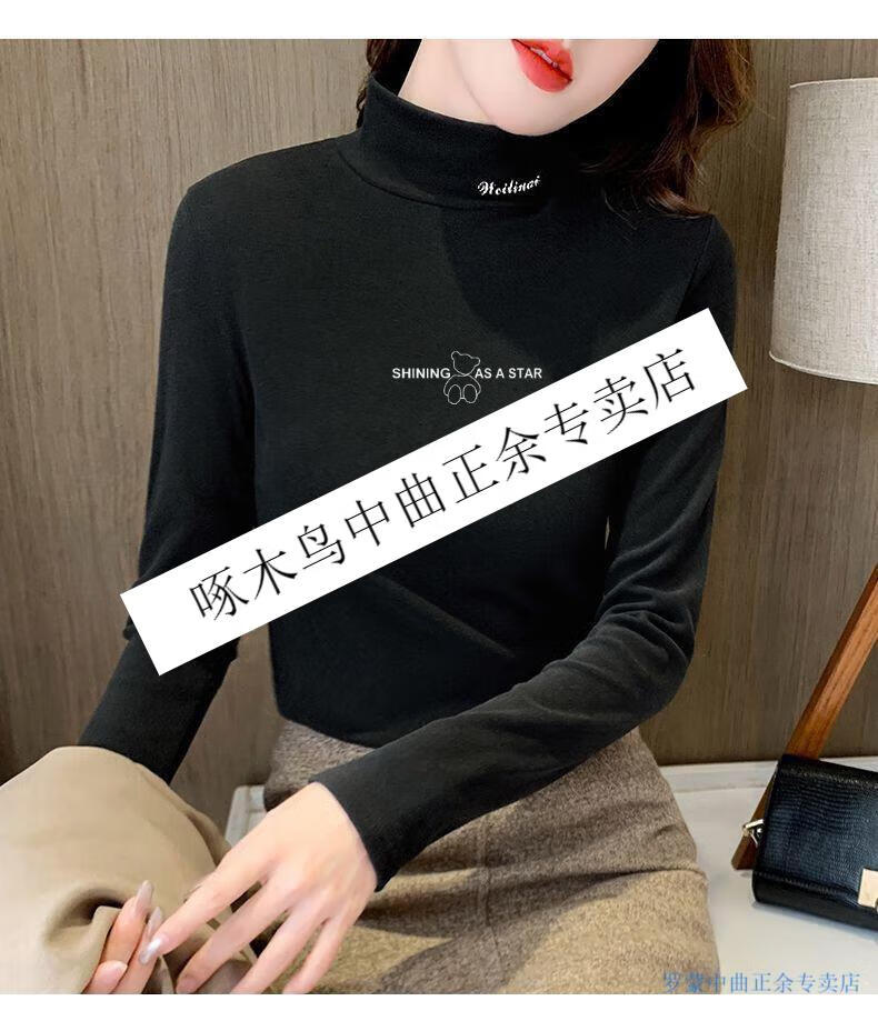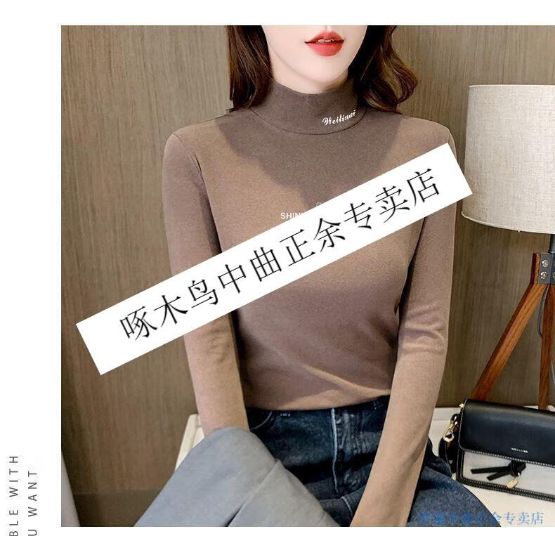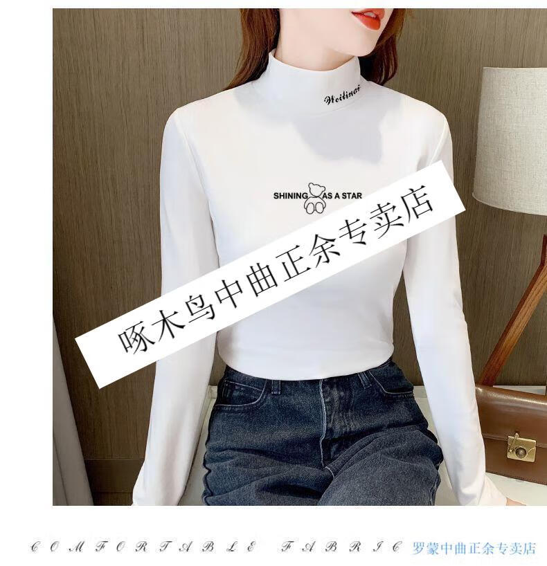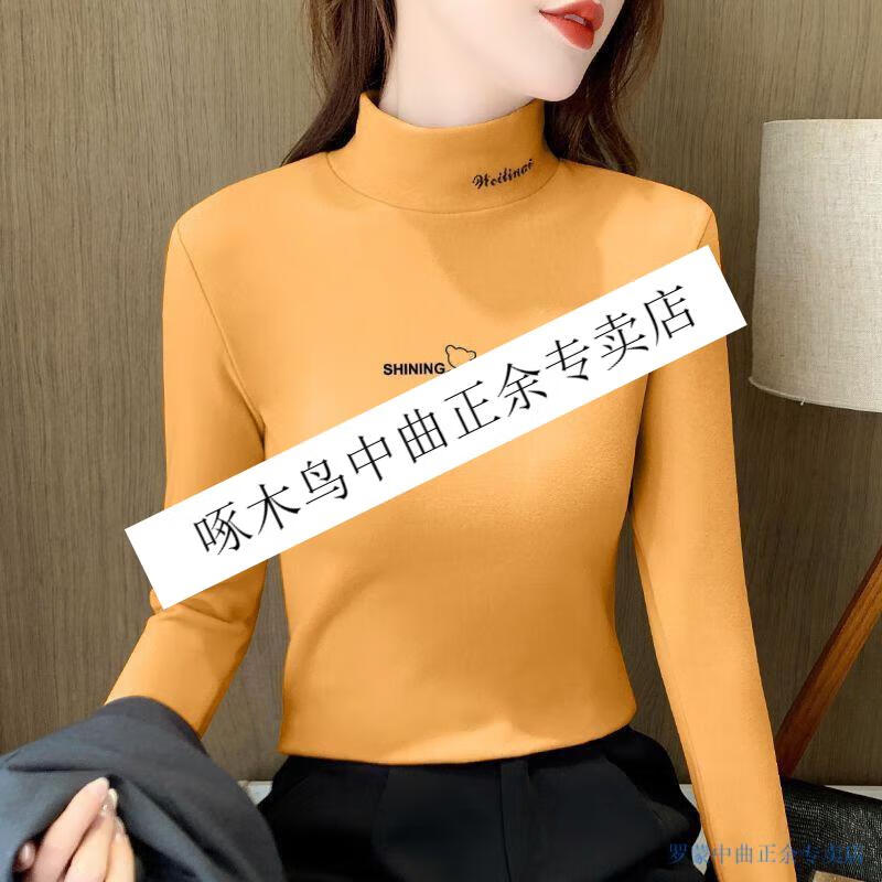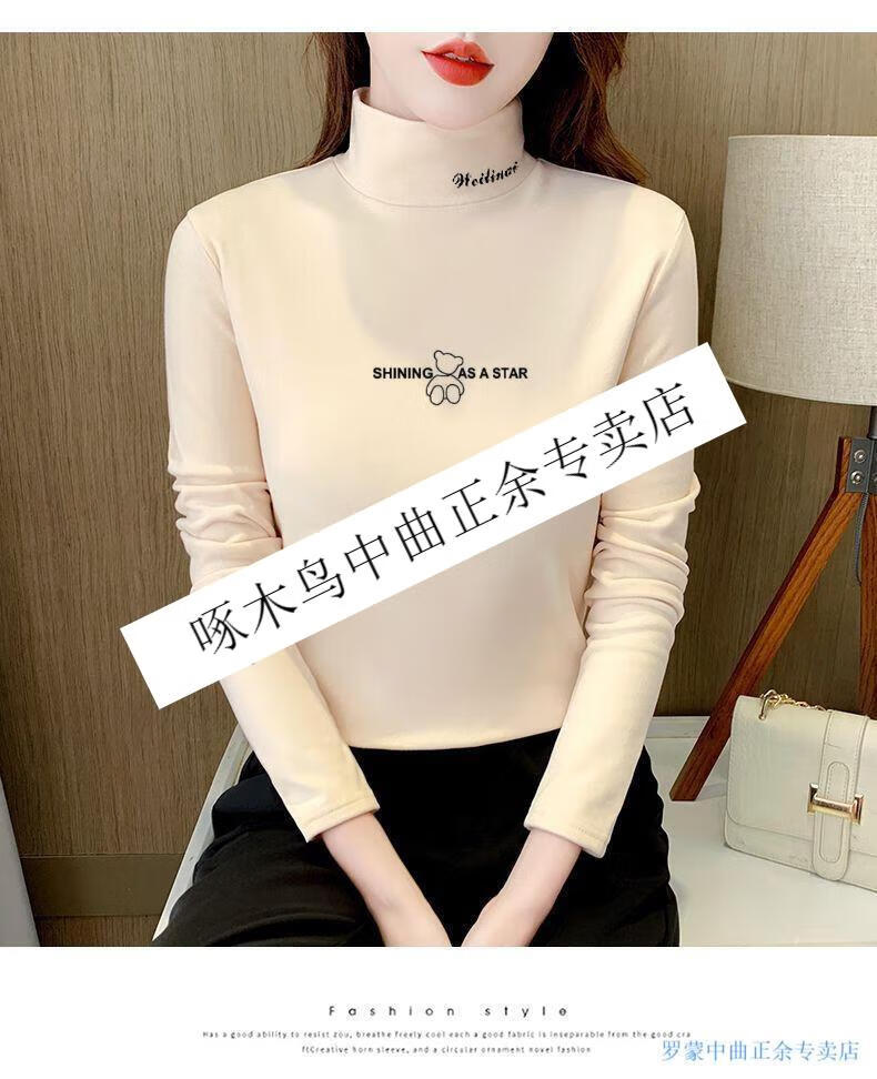 Woodpecker German velvet half-turtle collar bottoming shirt for women in autumn and winter slim fit warm plus velvet bear top new long-sleeved T-shirt Charming apricot thickened double-sided velvet L Recommended 105-120Jin Jin equals 0.5 kg