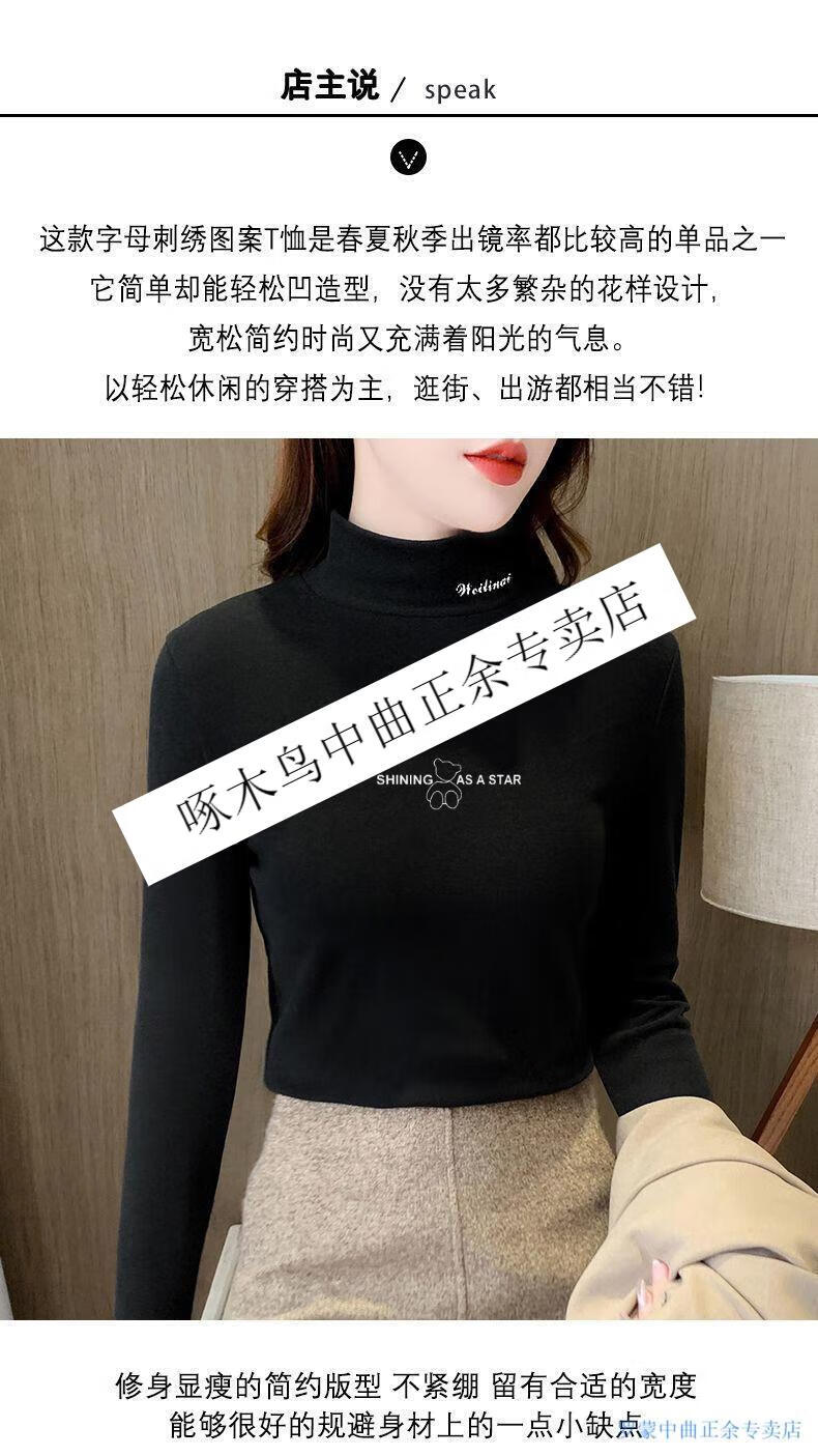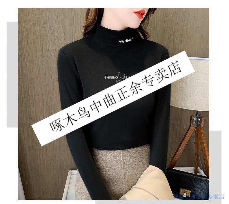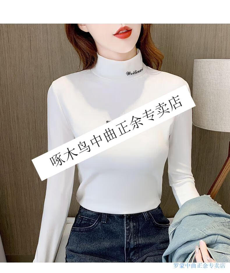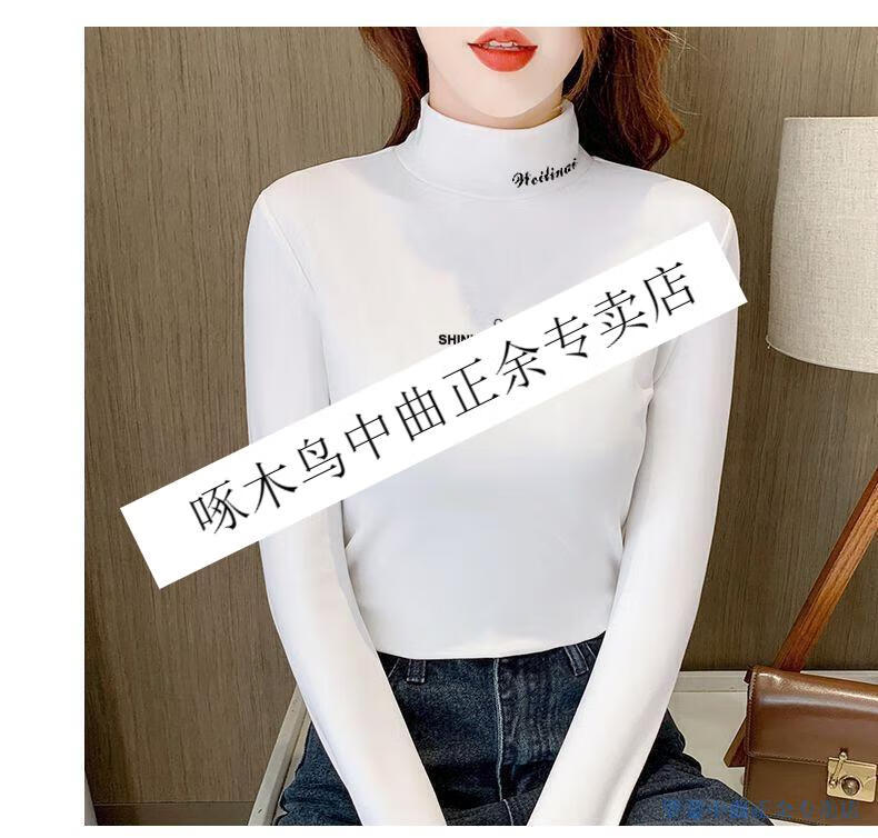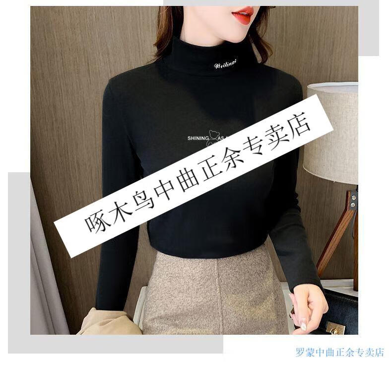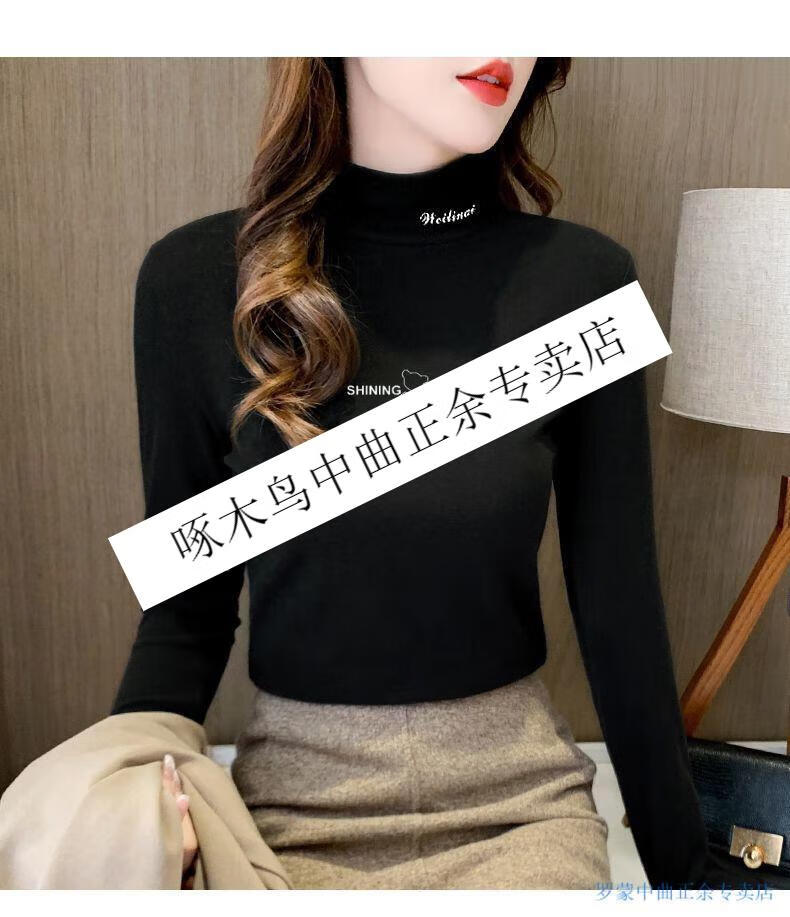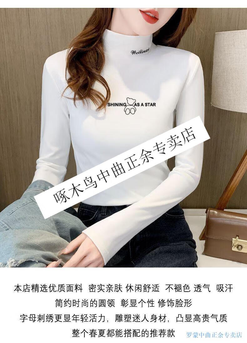 Woodpecker German velvet half-turtle collar bottoming shirt for women in autumn and winter slim fit warm plus velvet bear top new long-sleeved T-shirt Charming apricot thickened double-sided velvet L Recommended 105-120Jin Jin equals 0.5 kg