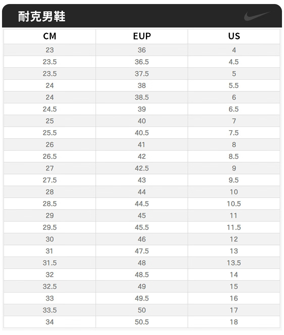 China (cm) 36 - 37 38 - 39 40 - 42 43 - 44 45 - 47