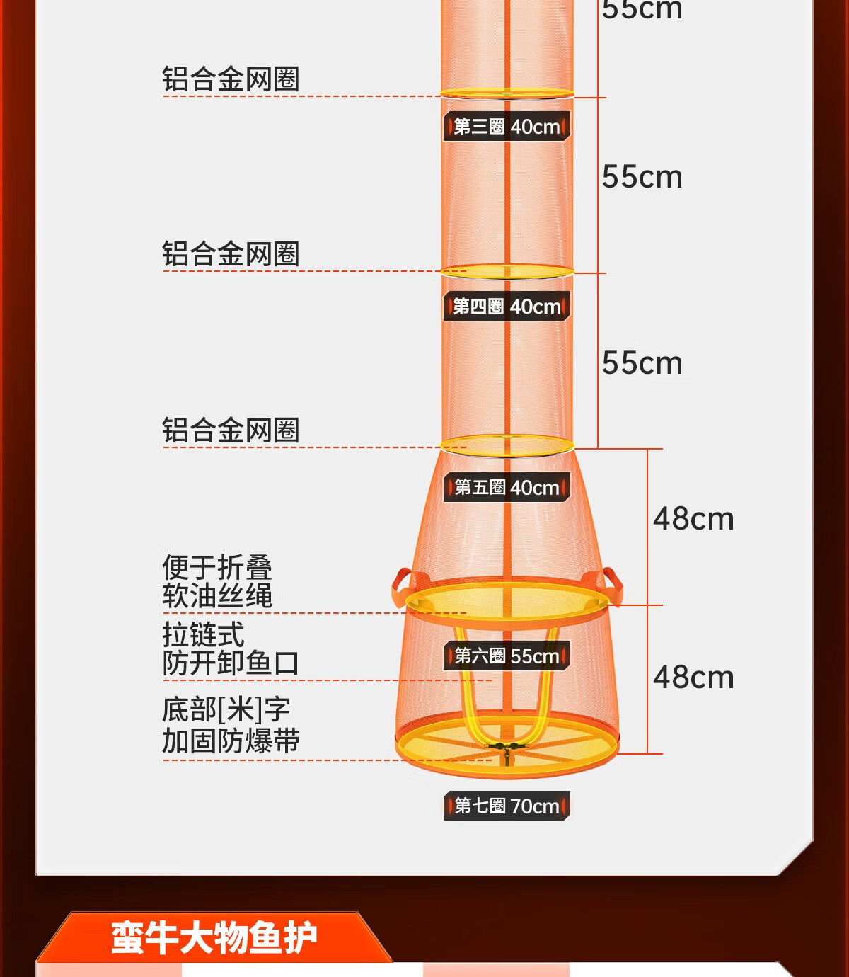 Kawasawa Manniu Giant Fish Protector Super load-bearing Black Pit Wild Fishing Special Fish Protector Fishing Net Pocket Fishing Portable Fishing Protector 40cm 3.5m Manniu Giant Fish Protector Load-bearing 200-300Jin Jin is equal to 0.5kg, plus EVA fish protection bag