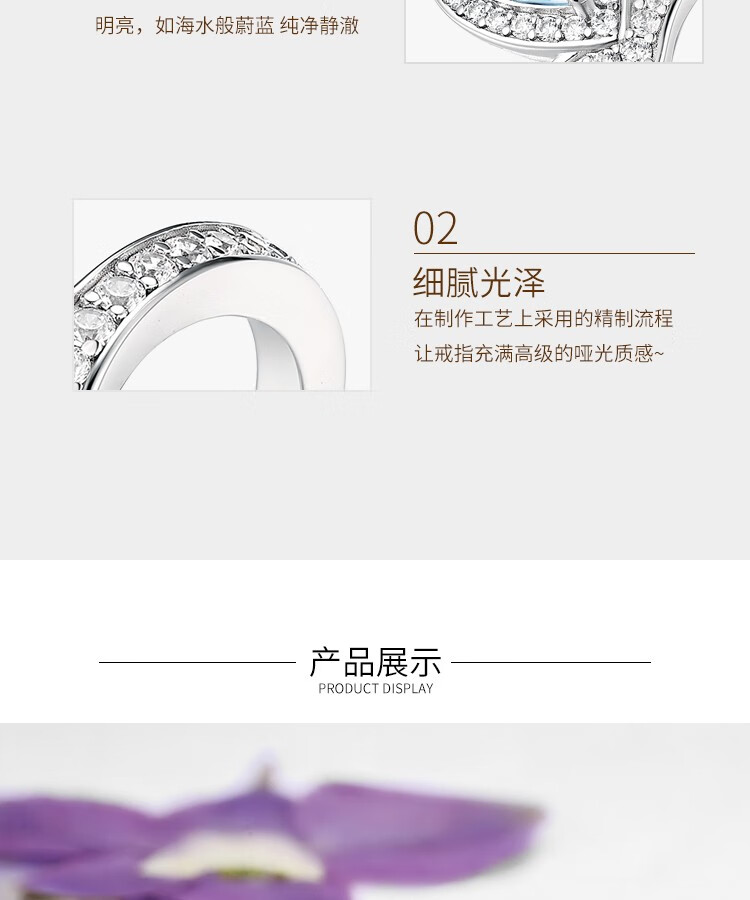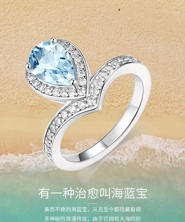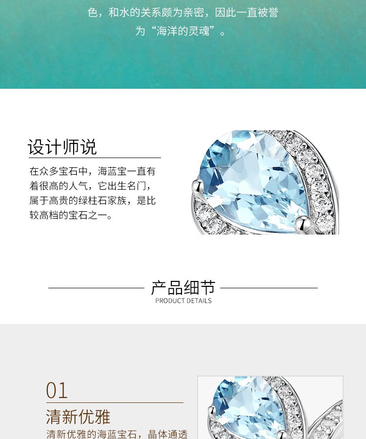 CAJJ Francois 1 carat aquamarine ring for women, natural colored gemstone jewelry, 925 silver inlaid with zircon, gemstone gift, No. 14