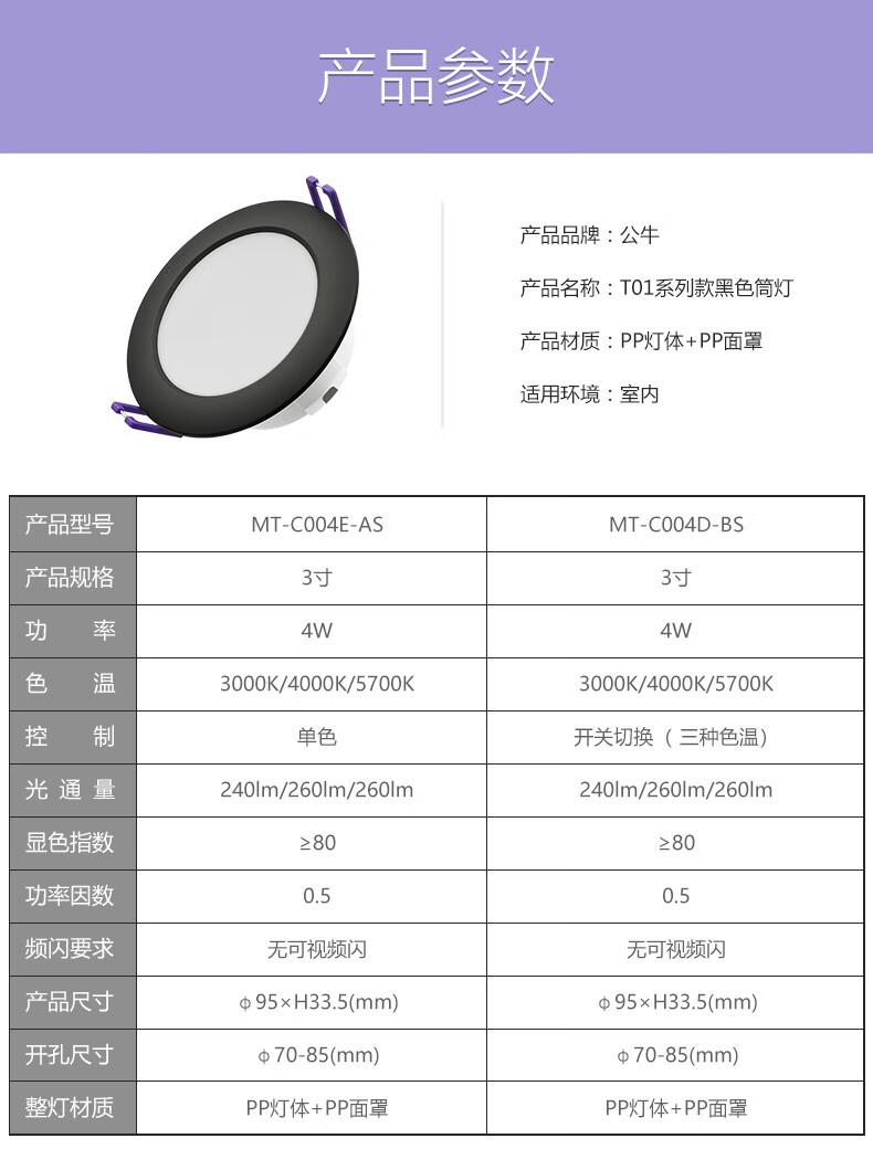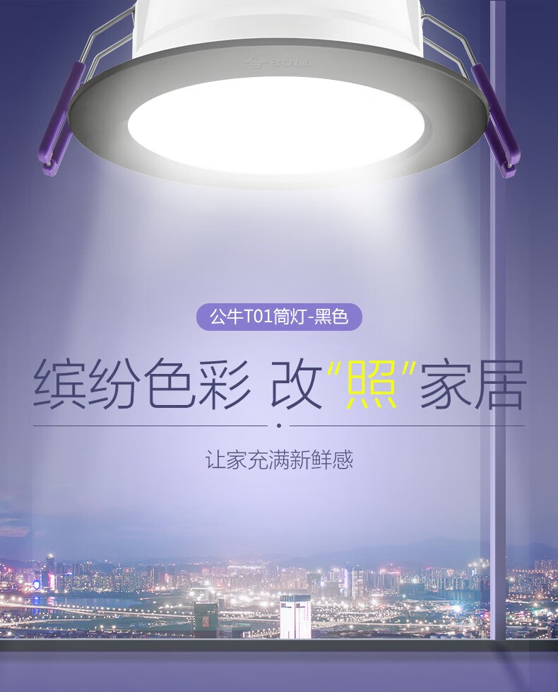 Bull (BULL) LED downlight ceiling hole light aisle entrance corridor bull's eye light spotlight living room lamp bucket light thin embedded 4w black | three-tone lighting | opening 70-85mm