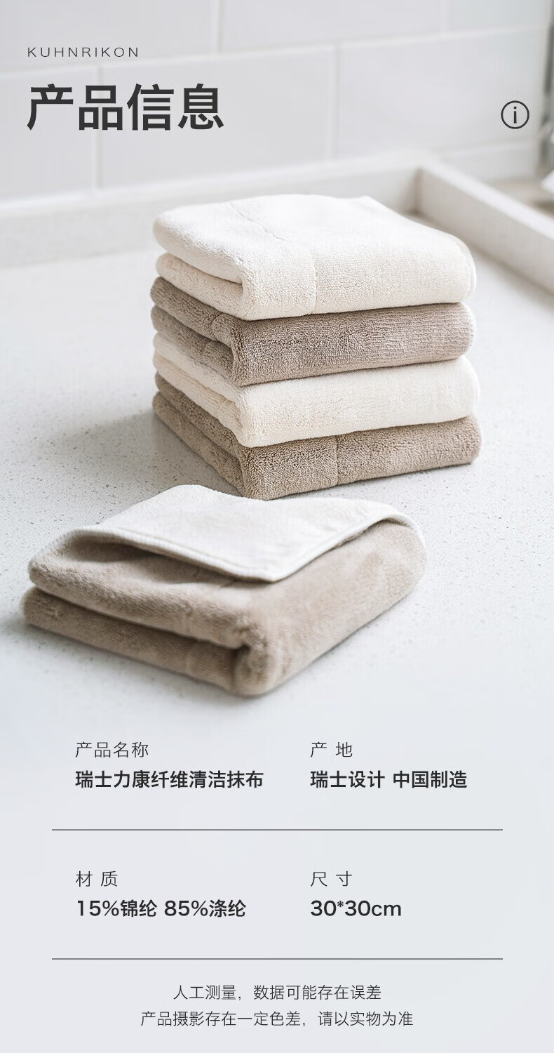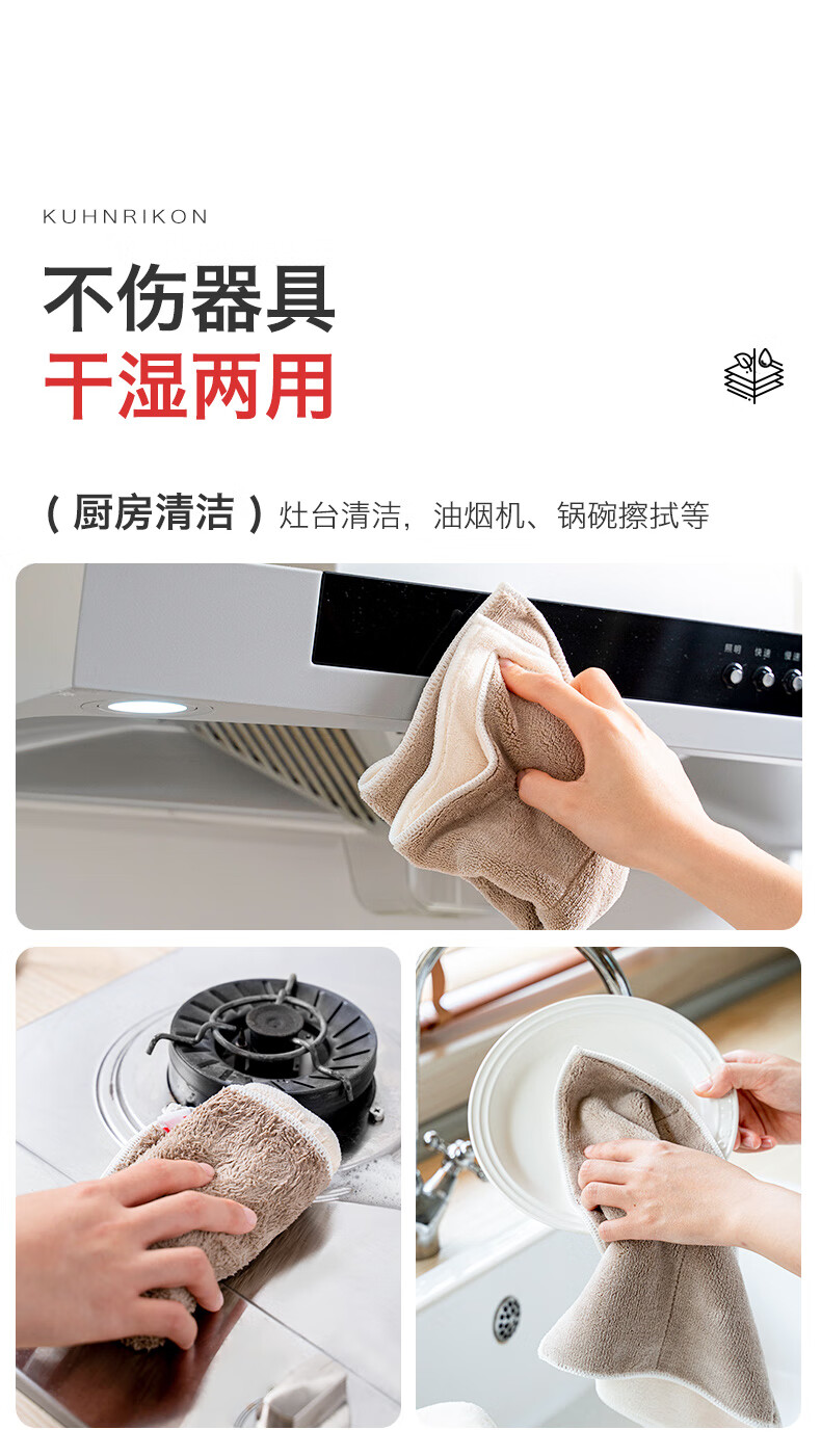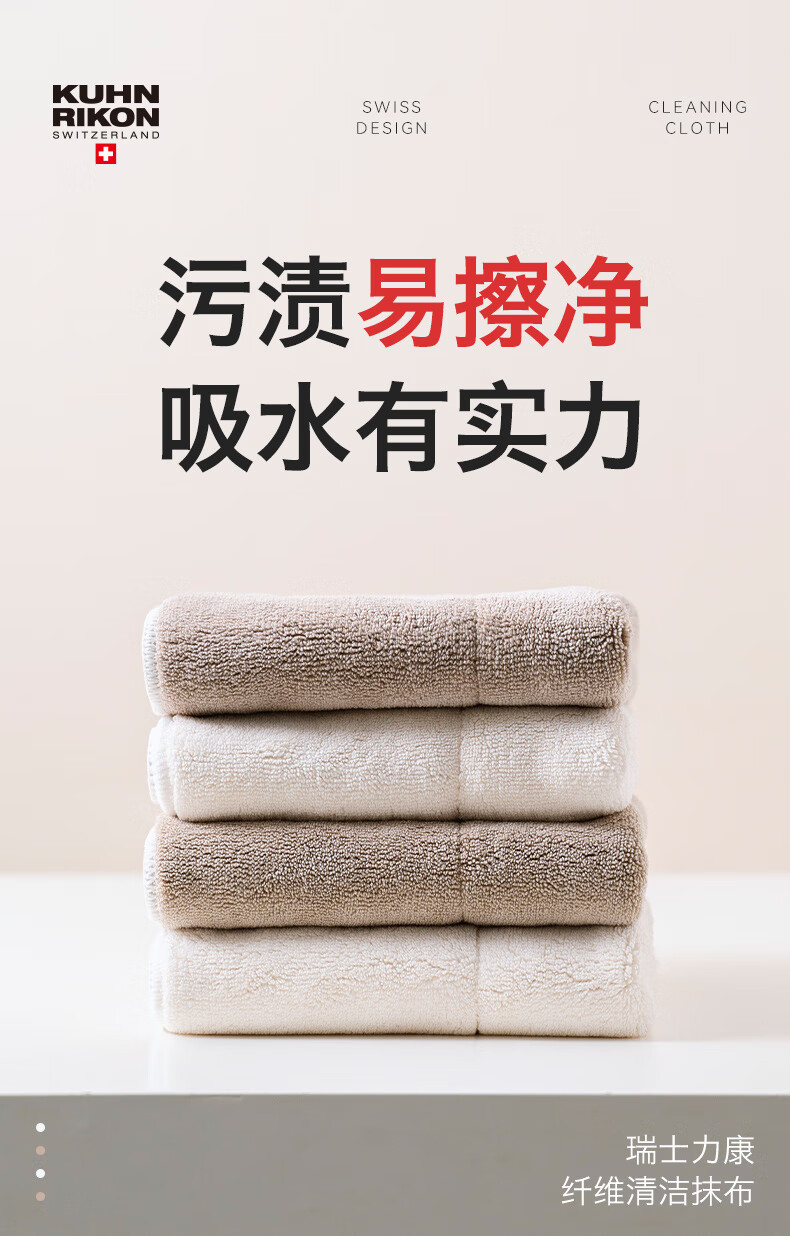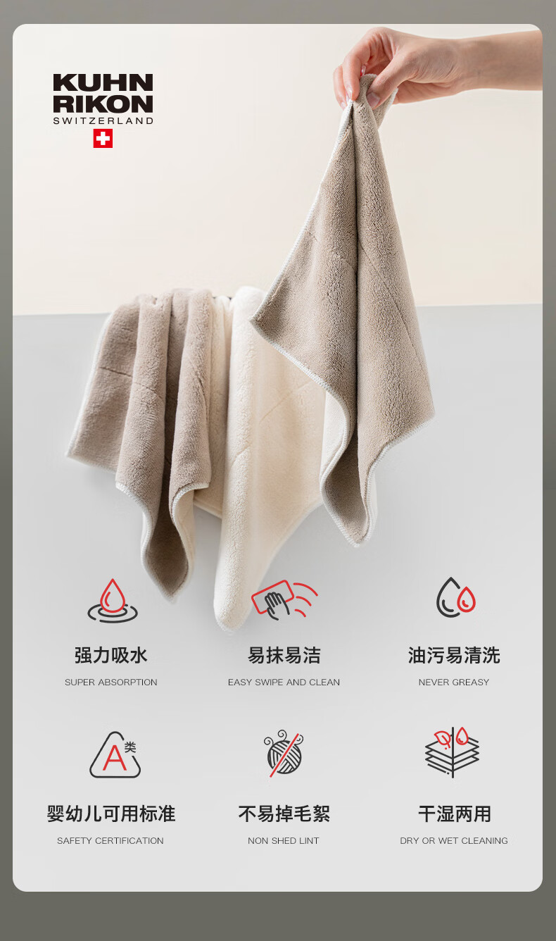 Swiss KUHN RIKON kitchen fiber rag, dishwashing cloth, scouring pad, household water-absorbing and non-linting new product launched, milk coffee white, 6 pieces, formal size, Class A certification