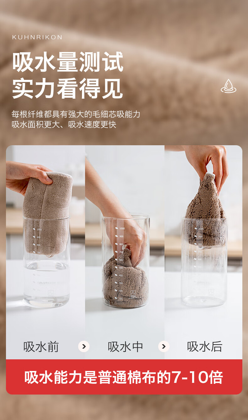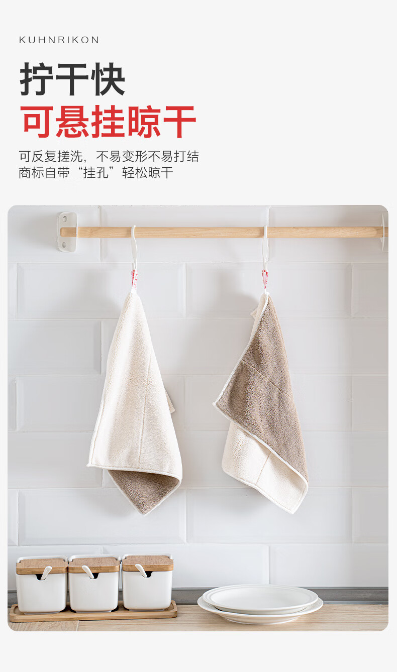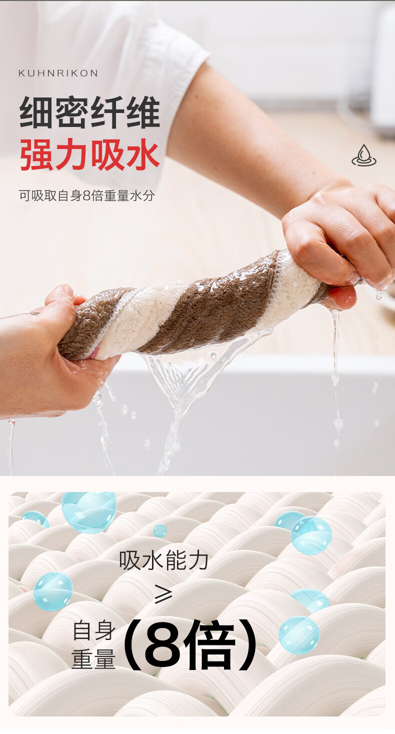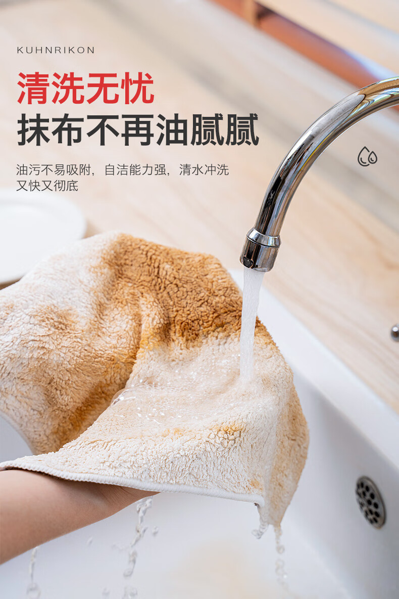 Swiss KUHN RIKON kitchen fiber rag, dishwashing cloth, scouring pad, household water-absorbing and non-linting new product launched, milk coffee white, 6 pieces, formal size, Class A certification