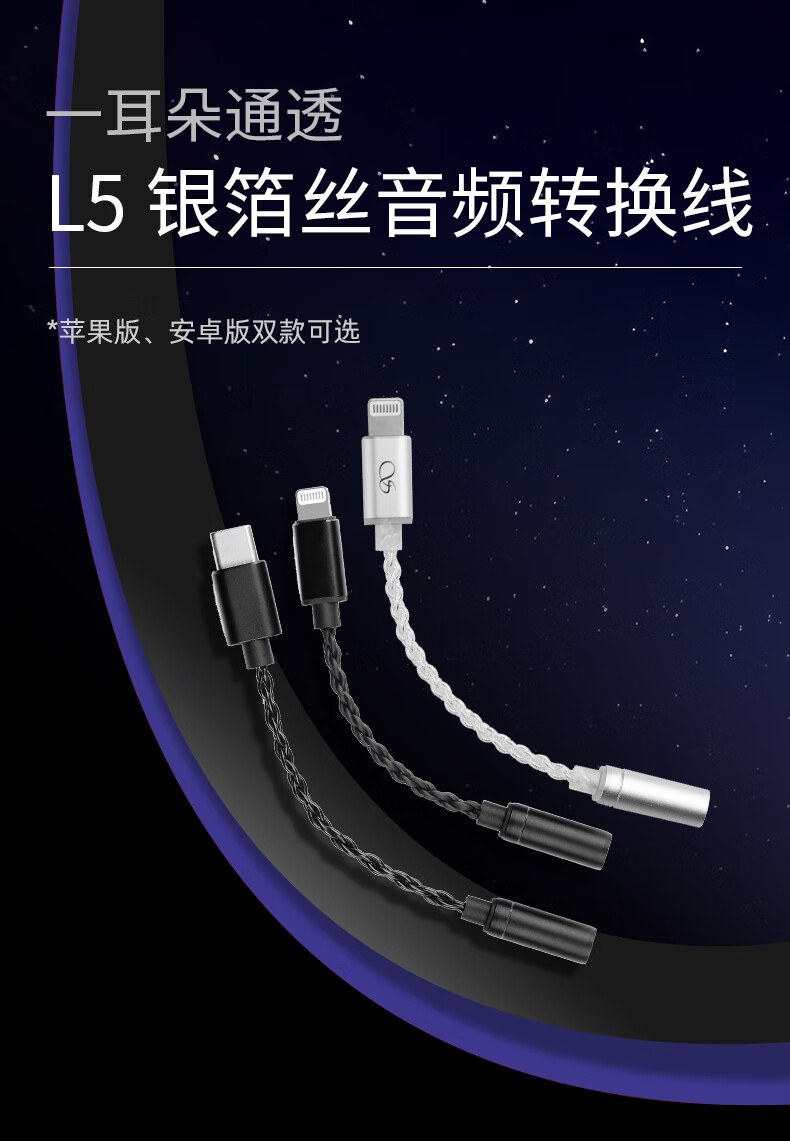 Shanling L5 3.5MM adapter cable typec/lightning mobile phone adapter decoding supports line control L5 silver type-c to 3.5 adapter