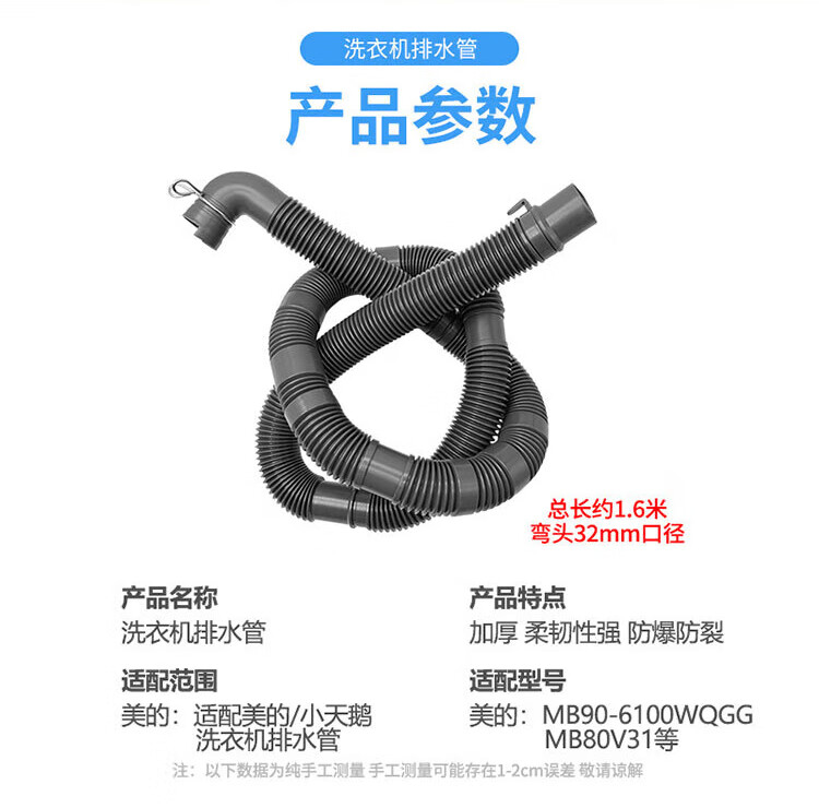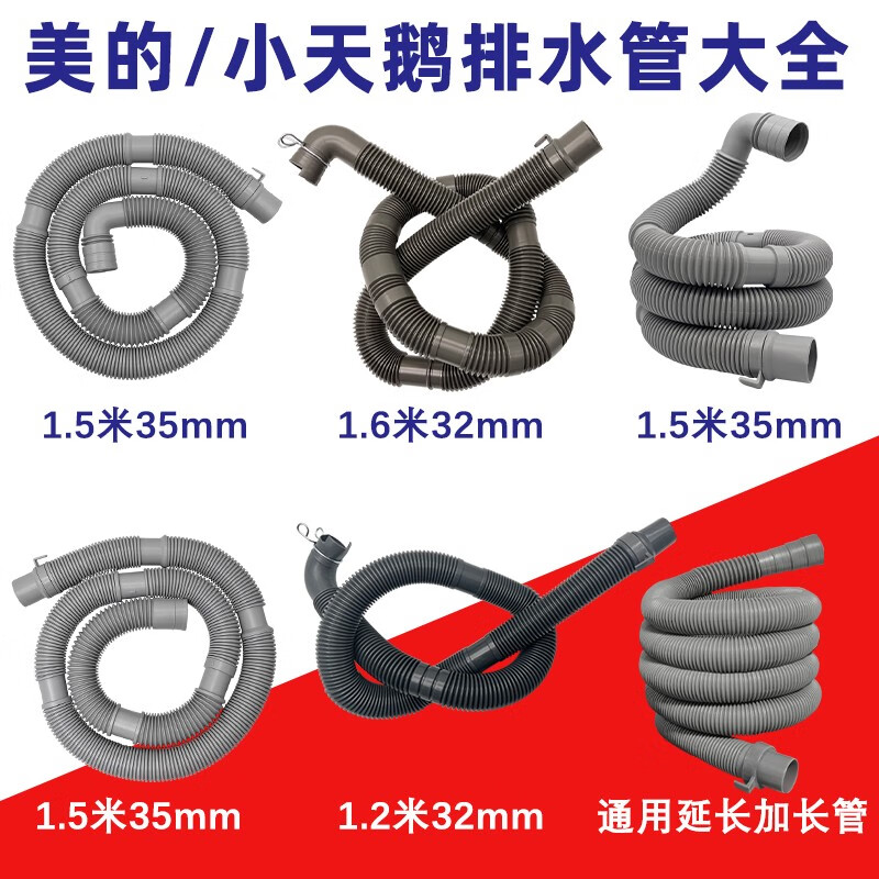 Midea General Little Swan fully automatic washing machine drain pipe extension pipe outlet pipe extension drain extension pipe accessories original 1.2 meters thick 32 mm elbow