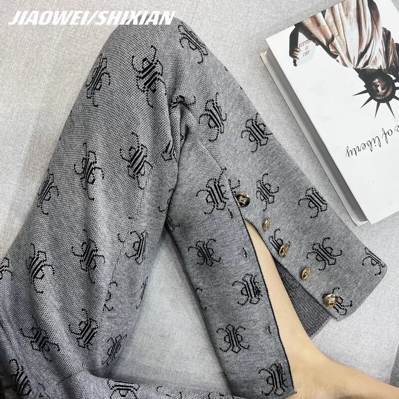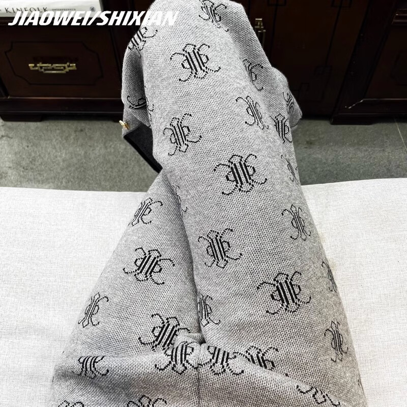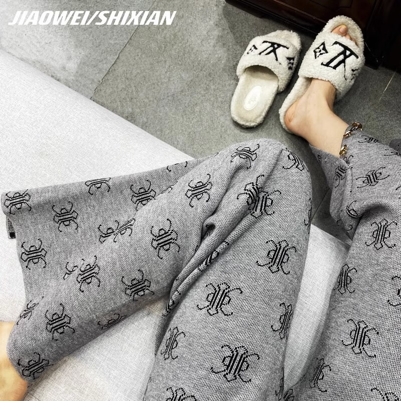 Mad Cortes trendy brand design 2025 autumn and winter slit full print women's high waist floor mopping pants small casual straight pants for women gray S