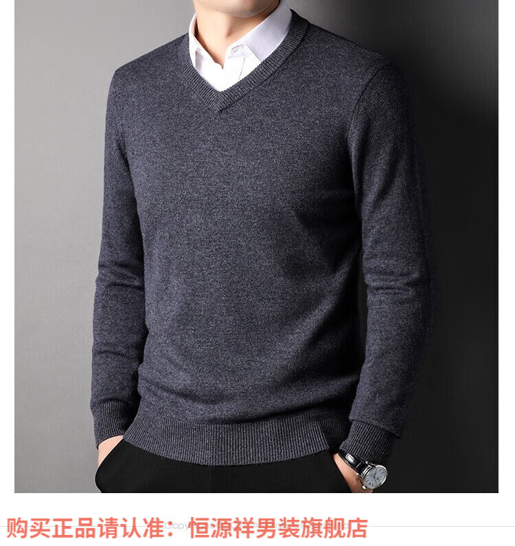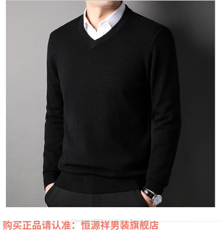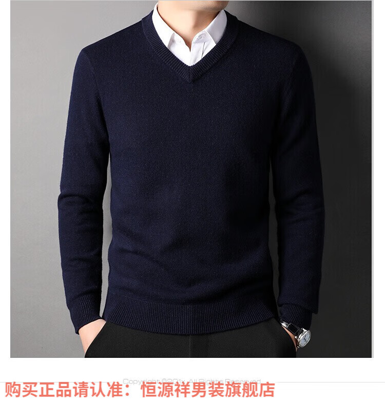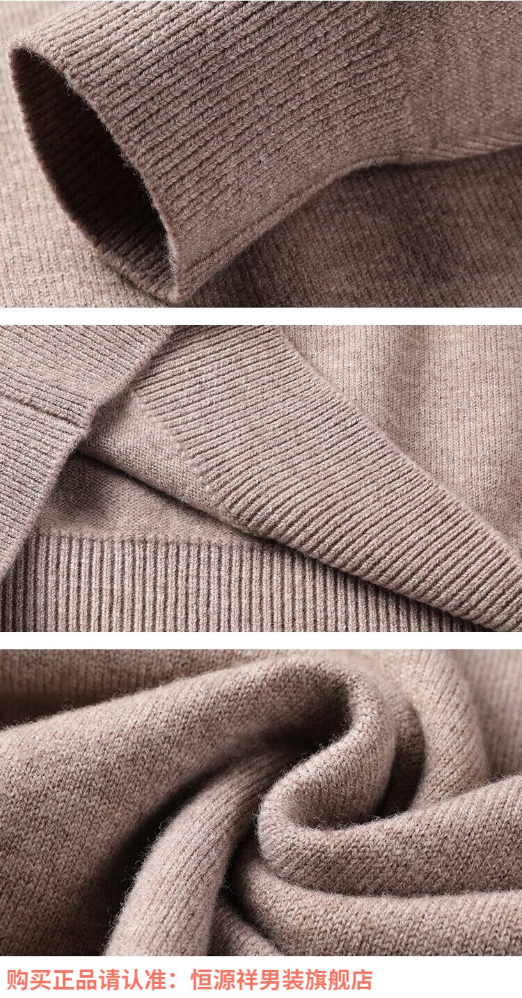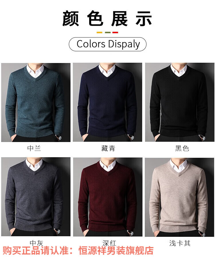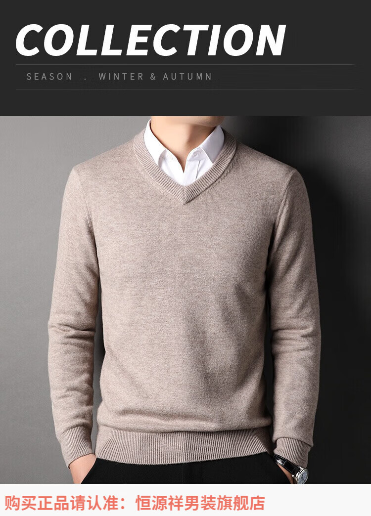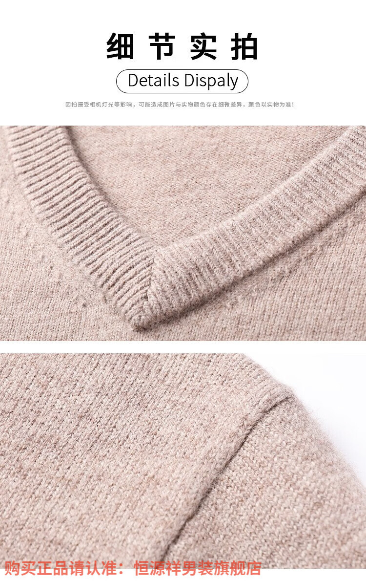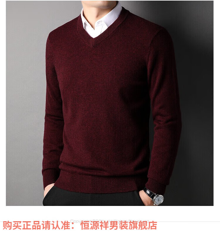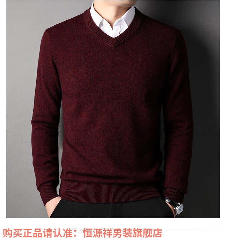 Hengyuanxiang 100% wool sweater men's V-neck thickened sweetheart neck sweater autumn and winter new middle-aged pure wool warm sweater dark red 2XL 180/115