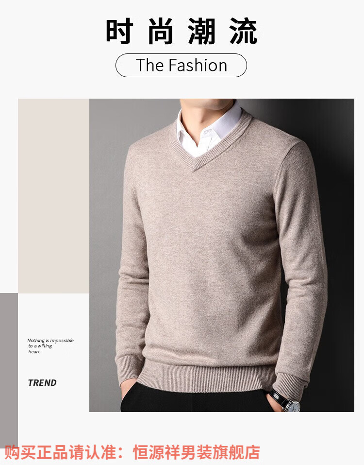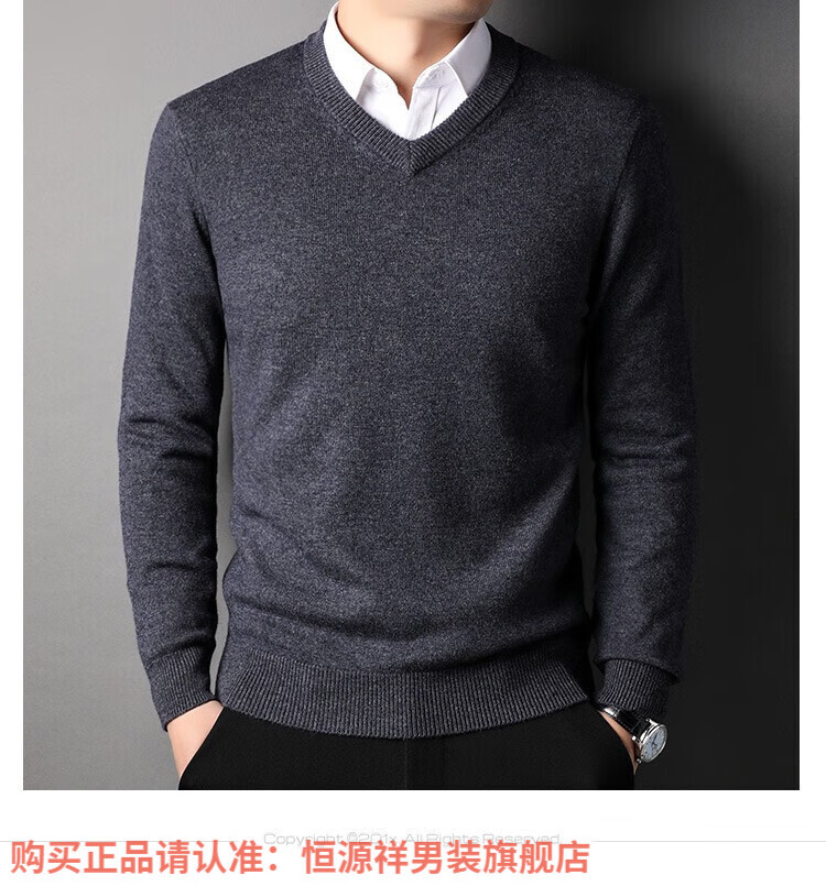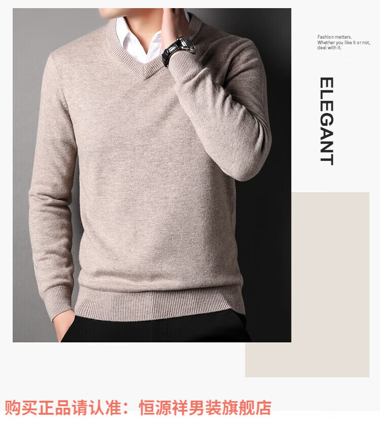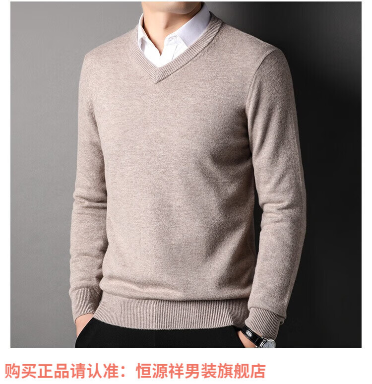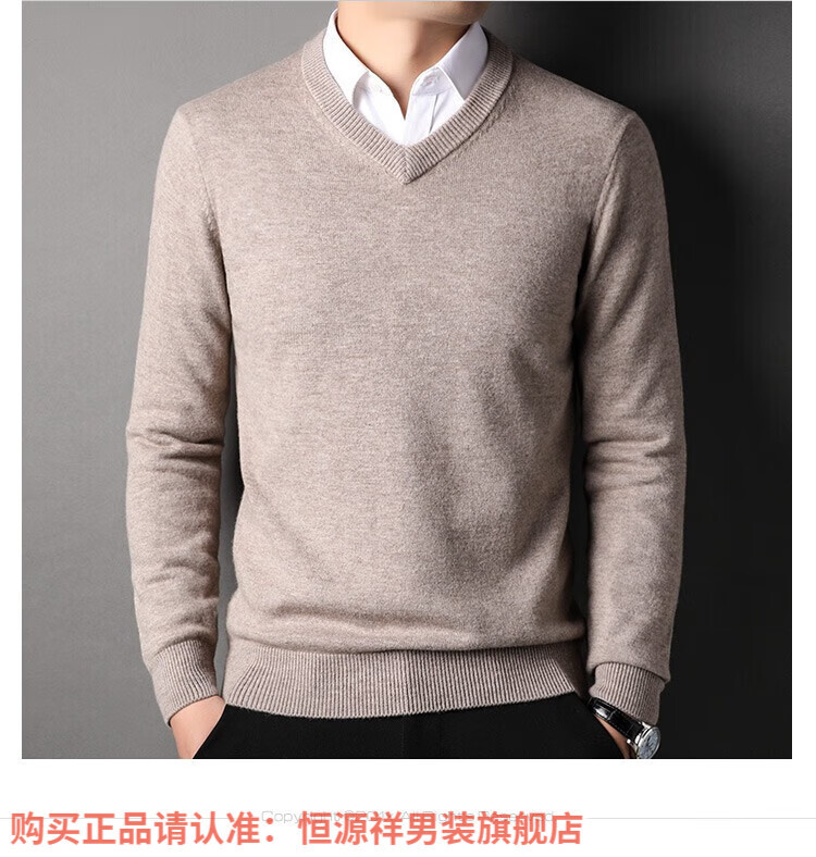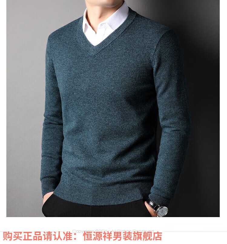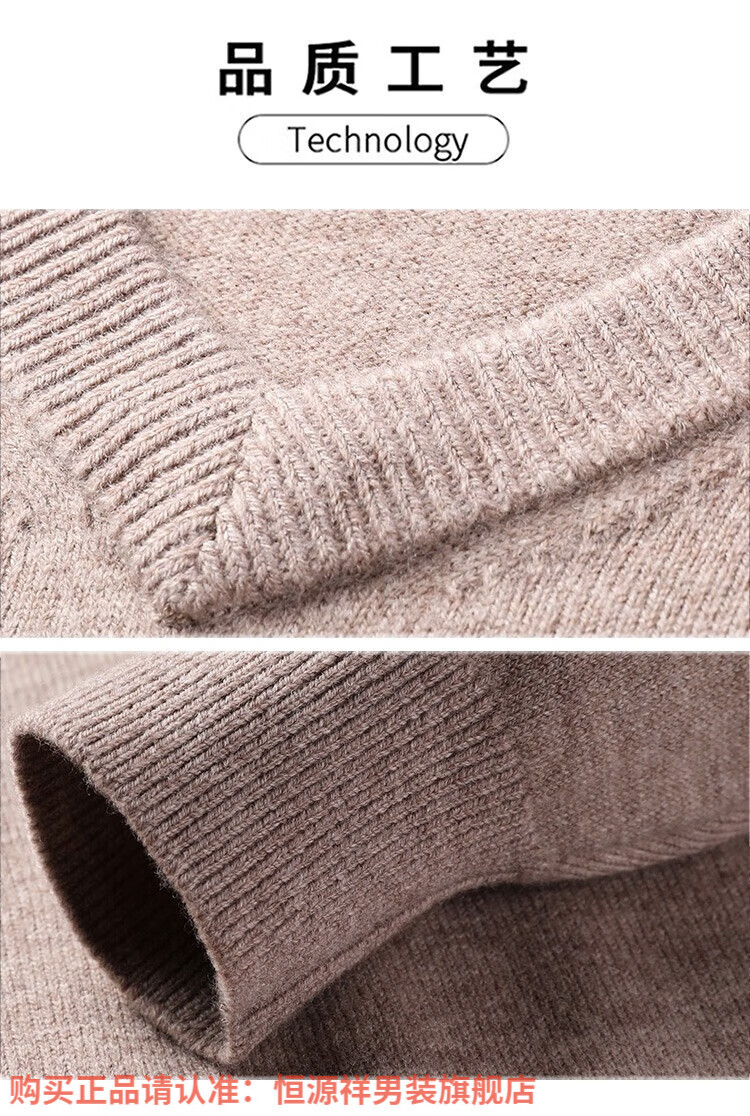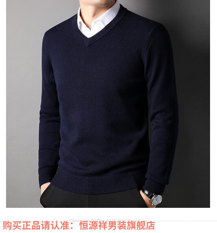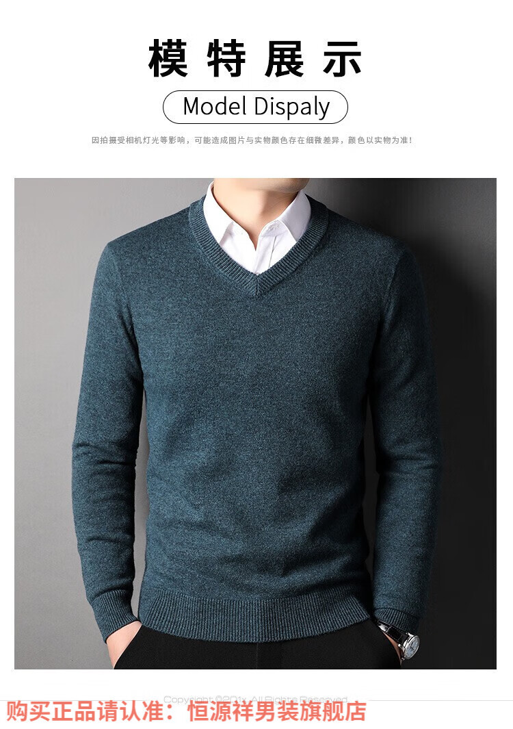 Hengyuanxiang 100% wool sweater men's V-neck thickened sweetheart neck sweater autumn and winter new middle-aged pure wool warm sweater dark red 2XL 180/115
