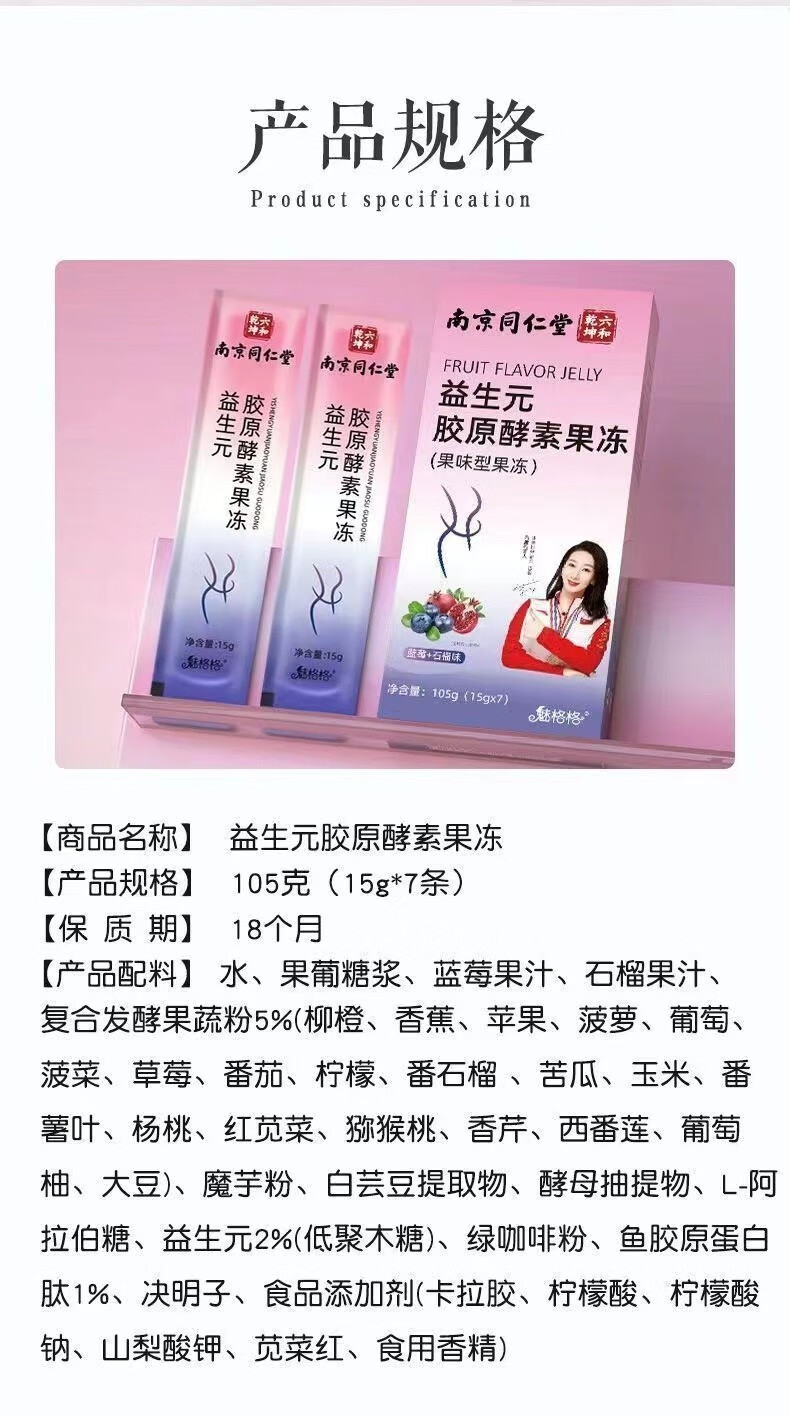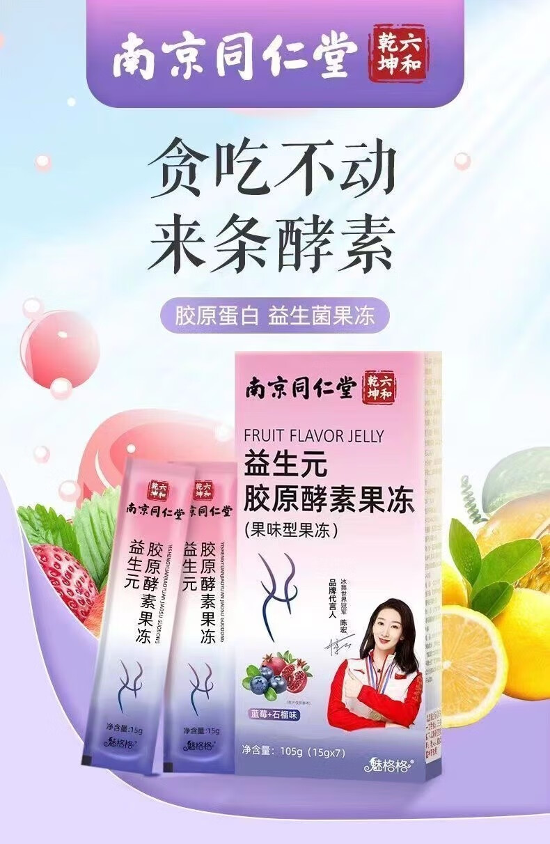 南京同仁堂 酵素果冻 益生元胶原酵素果冻益生菌 植物果蔬酵素 独立包装7条/盒xy 1盒(7条)【贈2袋畅排茶】