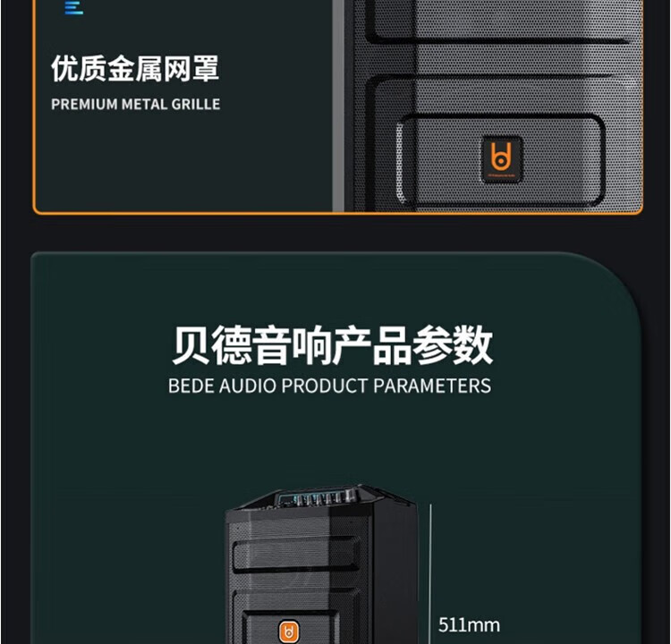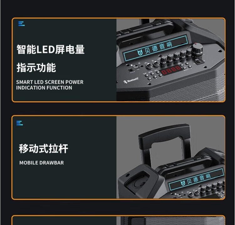Beide Audio Superior 0886 Series Outdoor High Power Square Dance Audio Portable Trolley Mobile Bluetooth Speaker Subwoofer Home Heavy Bass Karaoke with Wireless Microphone 1586 15-inch+ Microphone
