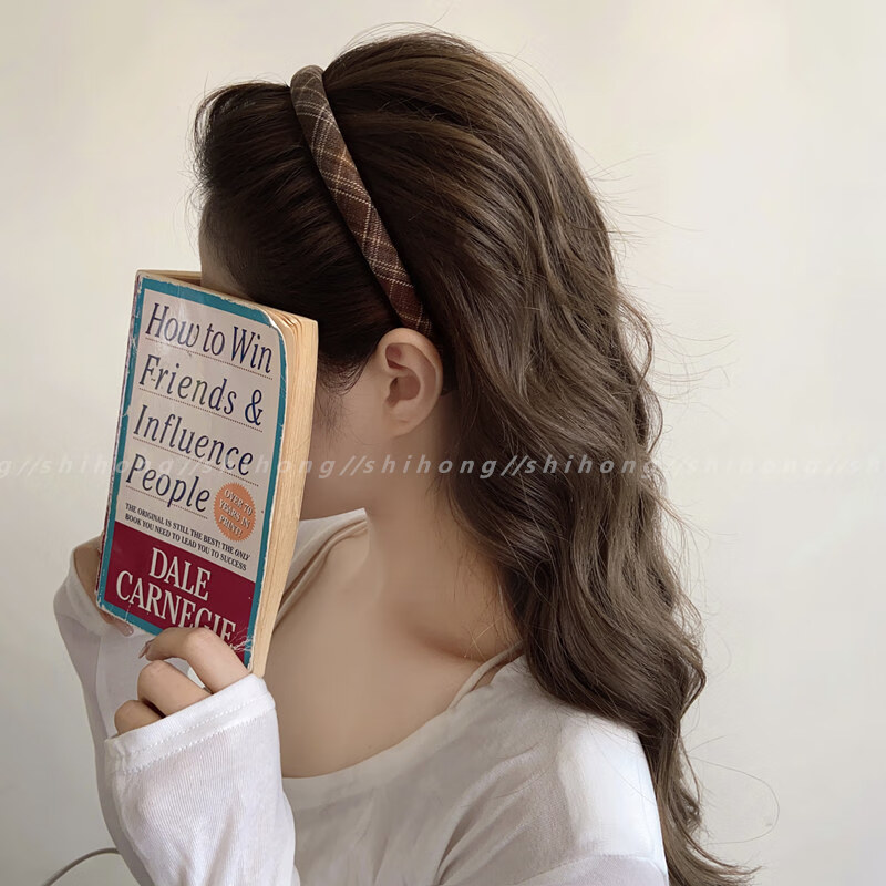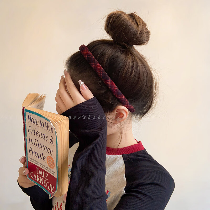 BARY REEF college style patterned headband women's headwear versatile retro temperament outer hair card fabric pressed hair thin headband hair accessories blue plaid headband