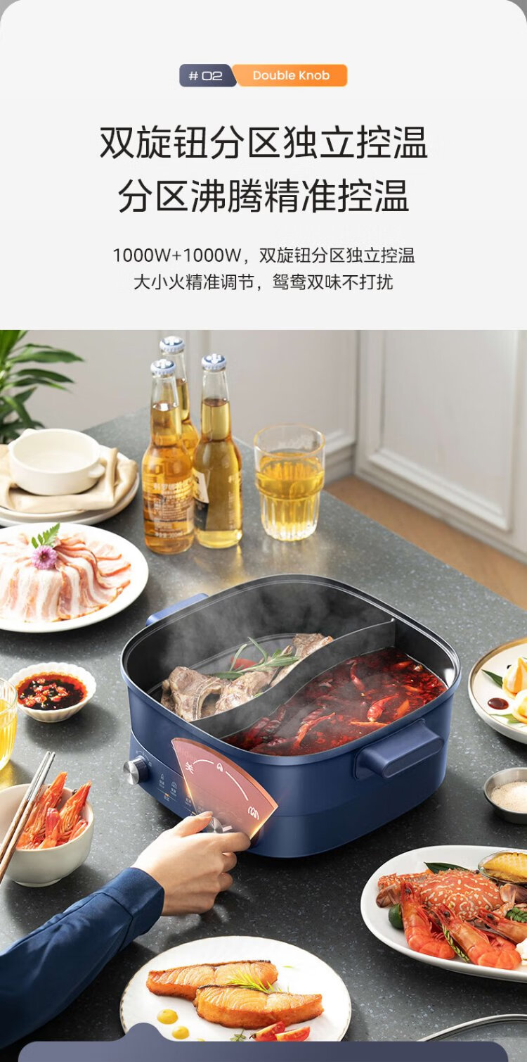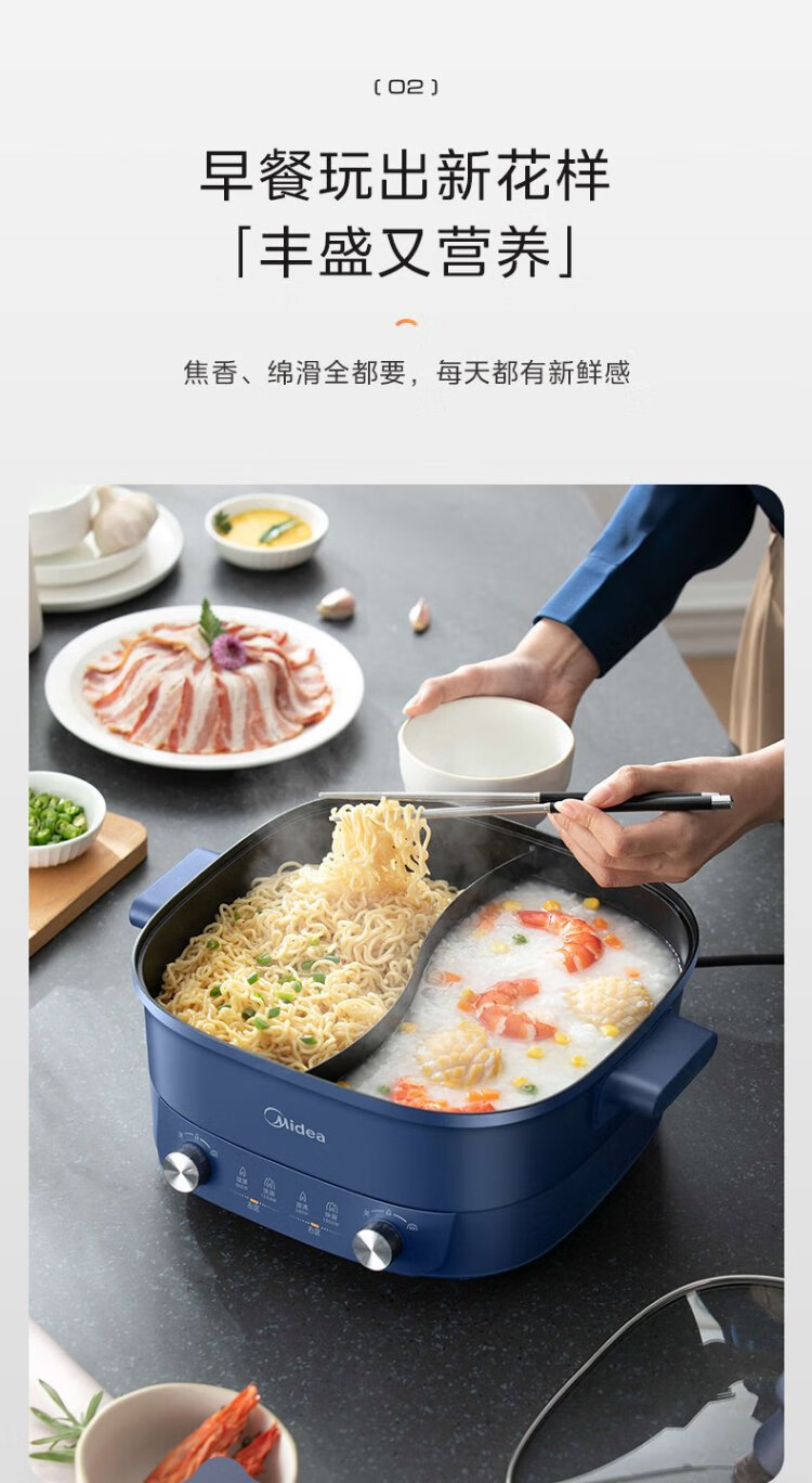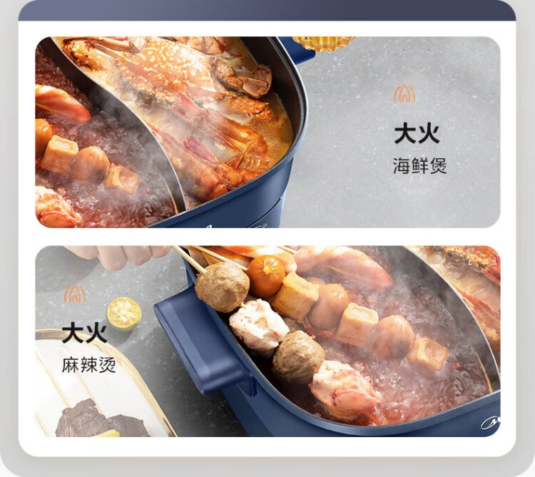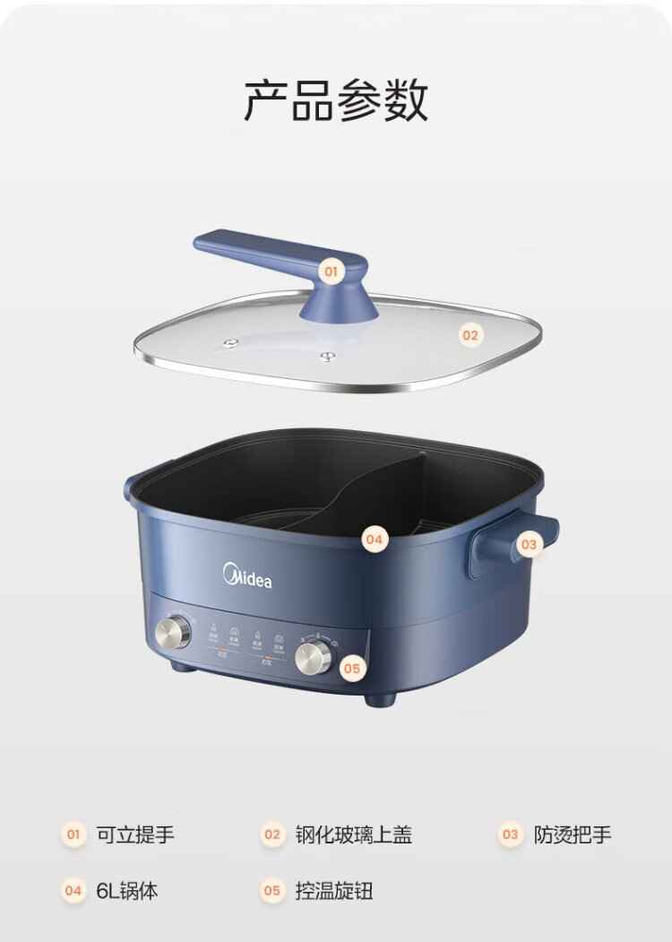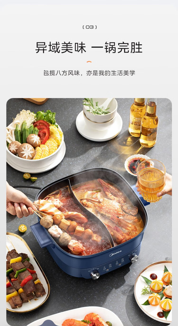 Midea electric hot pot special pot, Yuanyang Pot, large capacity for 5-8 people, household use for 3-4 people, shabu-shabu, electric hot pot, all-in-one multi-function pot, electric cooking pot, electric wok, grilled fish and barbecue pot, 6L hot selling Yuanyang Pot + zone temperature control 303012