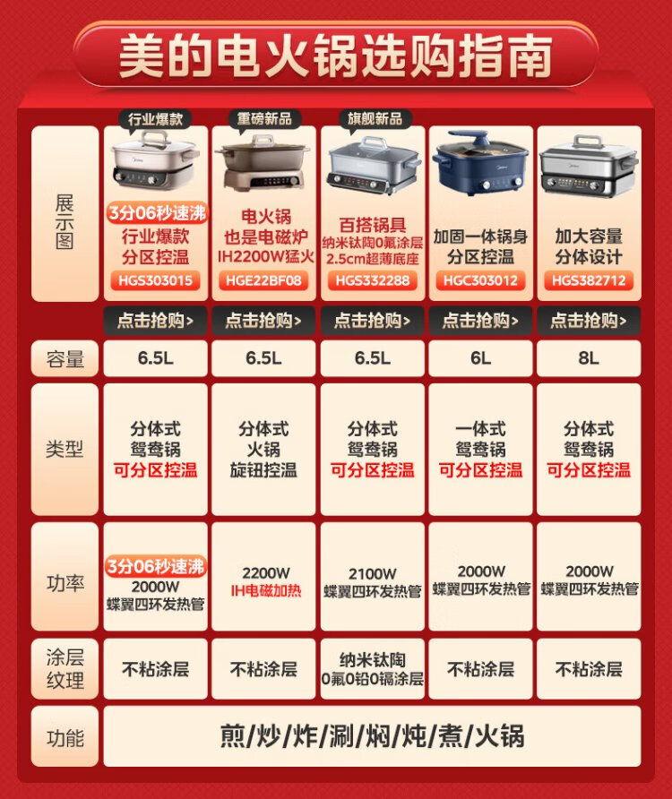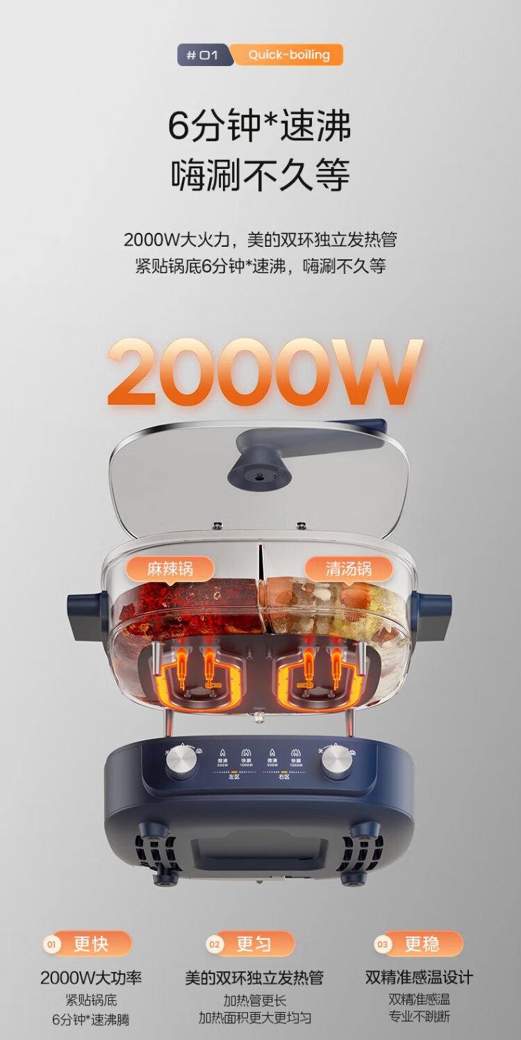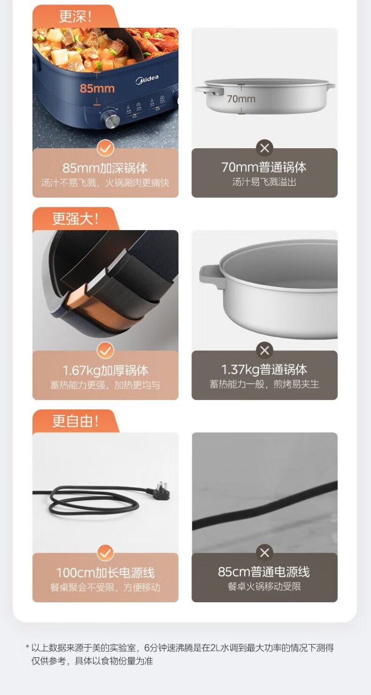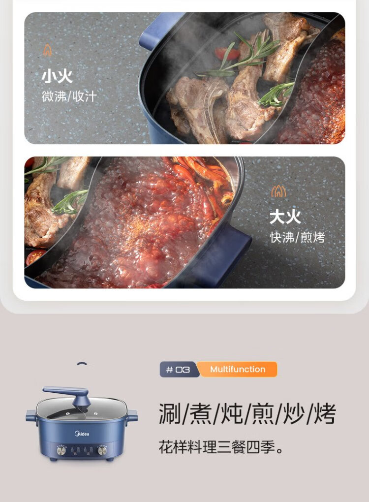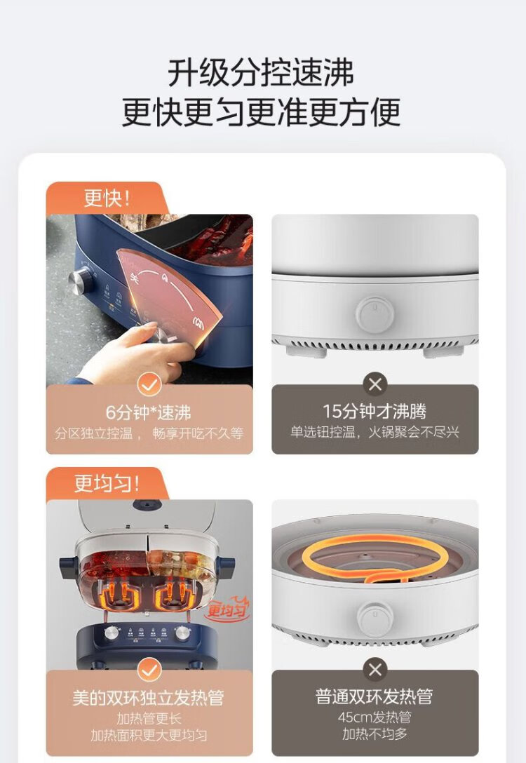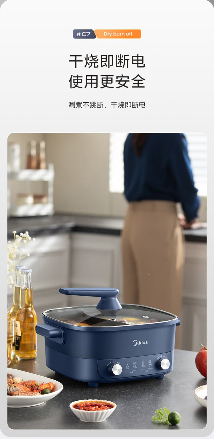 Midea electric hot pot special pot, Yuanyang Pot, large capacity for 5-8 people, household use for 3-4 people, shabu-shabu, electric hot pot, all-in-one multi-function pot, electric cooking pot, electric wok, grilled fish and barbecue pot, 6L hot selling Yuanyang Pot + zone temperature control 303012