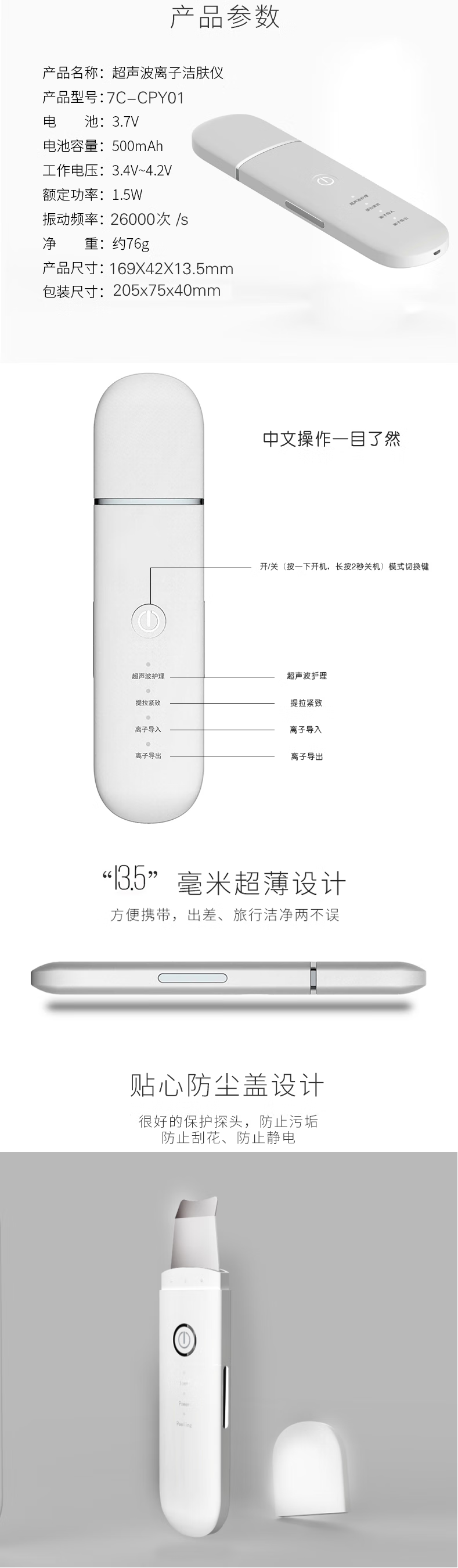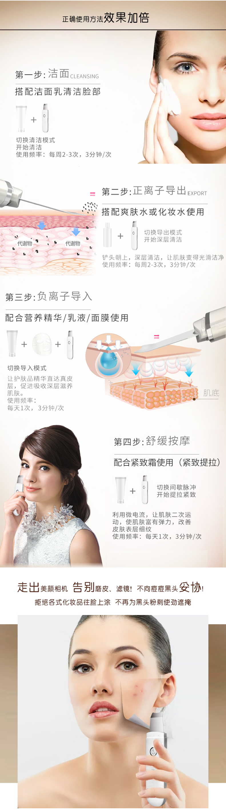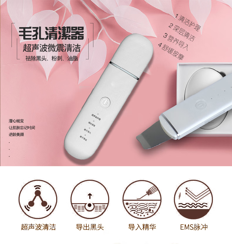 Eugenics Love Dou Ultrasonic Ion Skin Beautifier Skin Scraping Instrument Cleans Dead Facial Skin Removes Blackheads and Scrapes Acne Sonic Cleaning Export Import Skin Scraping Machine Pink Blue