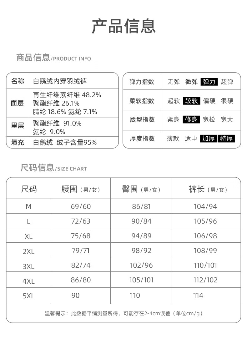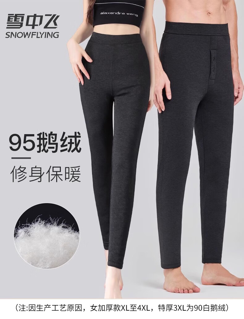 Flying in the Snow Down Pants Winter Men and Women Couples Wear Thick Goose Down Pants to Look Slim and Coldproof Plus Velvet Pants Elastic Warm Liner Cotton Pants Thickened Men's Style - Gray Lining - New National Standard 95 Goose Down XL