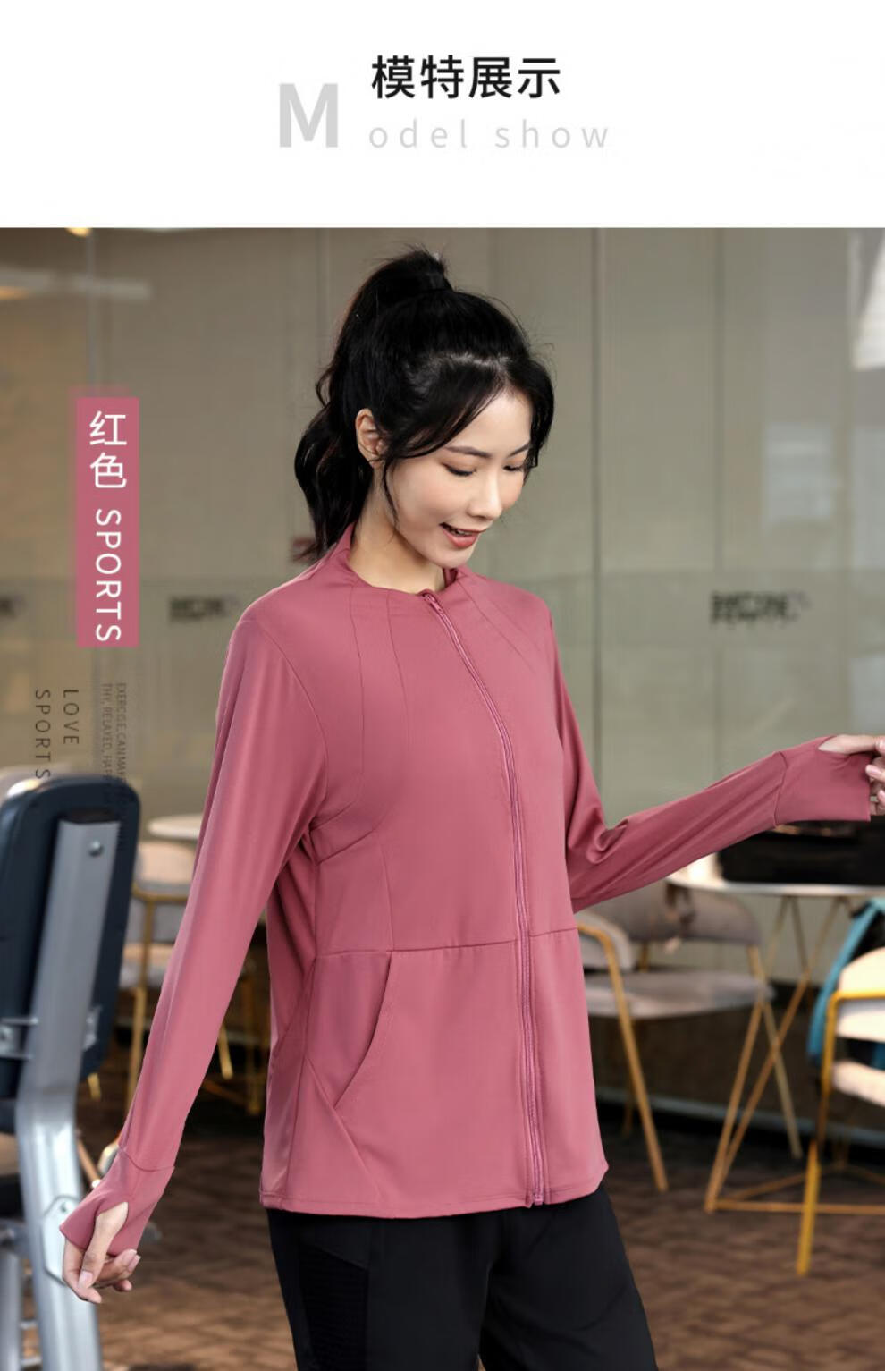 KEJIMITAO Large Size Running Top Women's Autumn Fitness Yoga Wear Sports Jacket Zipper Loose Quick-Drying Long Sleeve Fat mm Red M (Recommended 90-105Jin Jin equals 0.5kg)