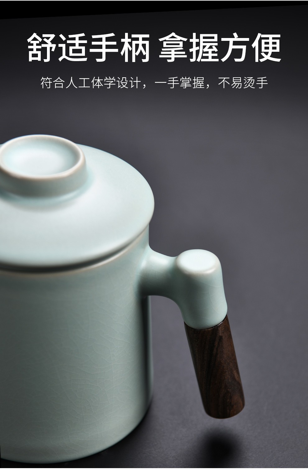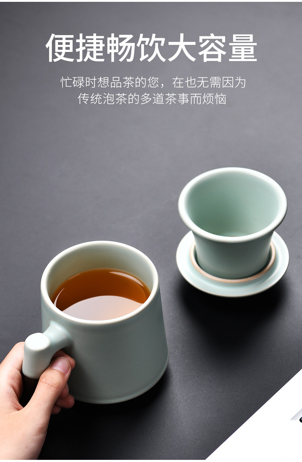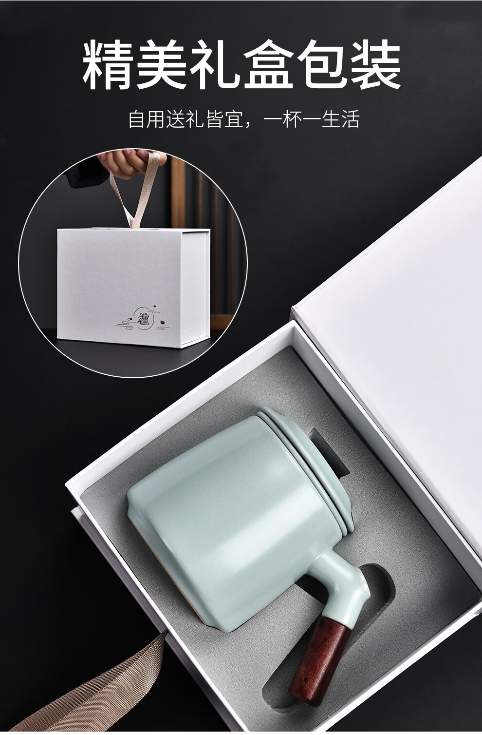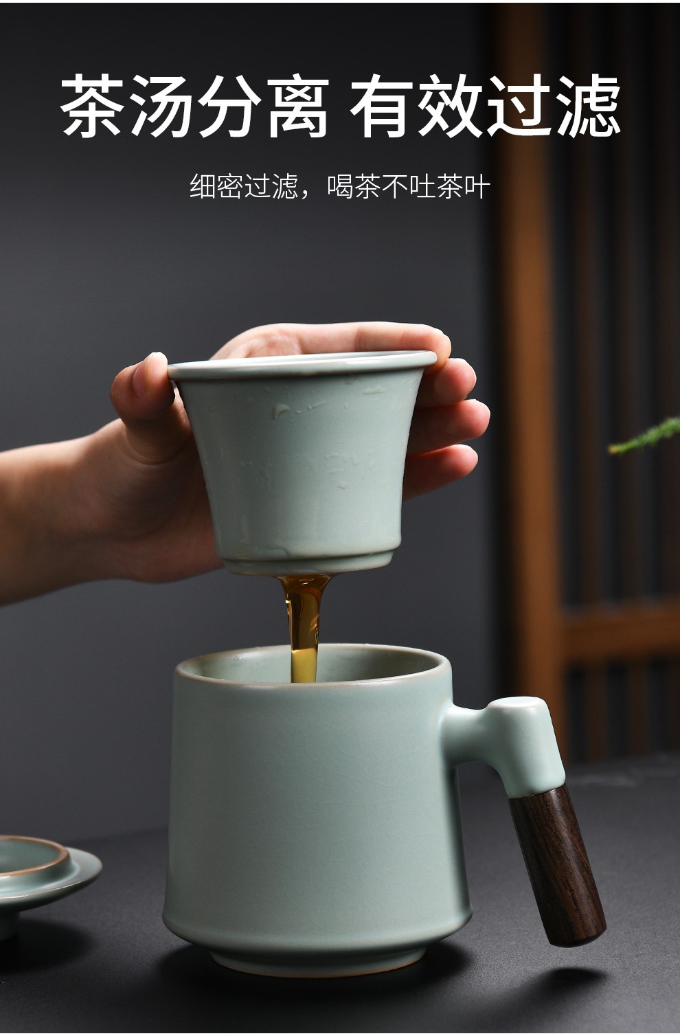 Qixuanyuan Ru Kiln Tea Cup Simple Drinking Cup Office Covered Filter Tea Water Separation Birthday Gift Customized LOGO Ge Kiln Dragon Handle Office Cup-Plum Green + Gift Box