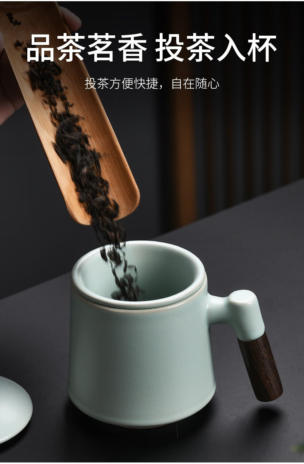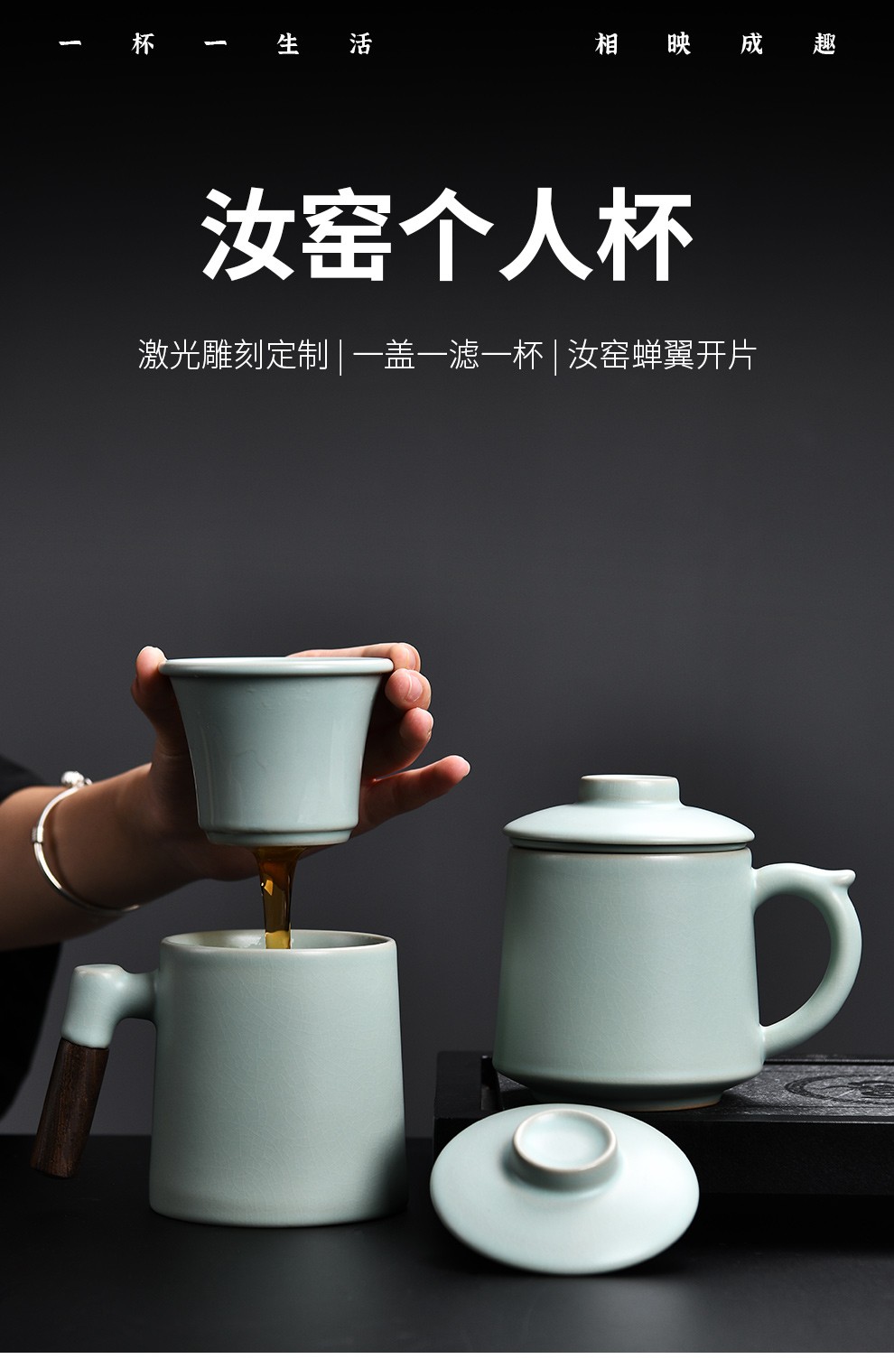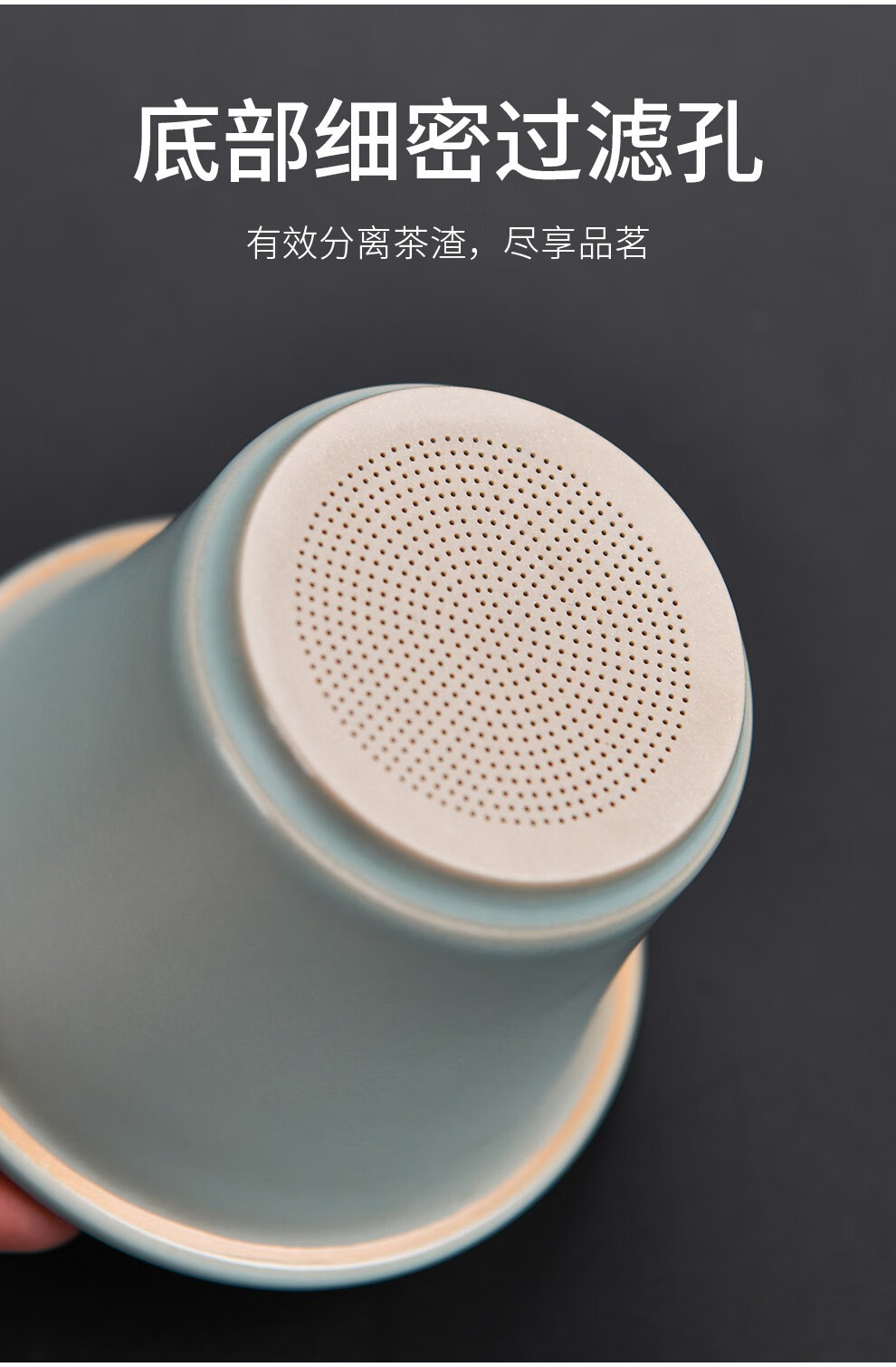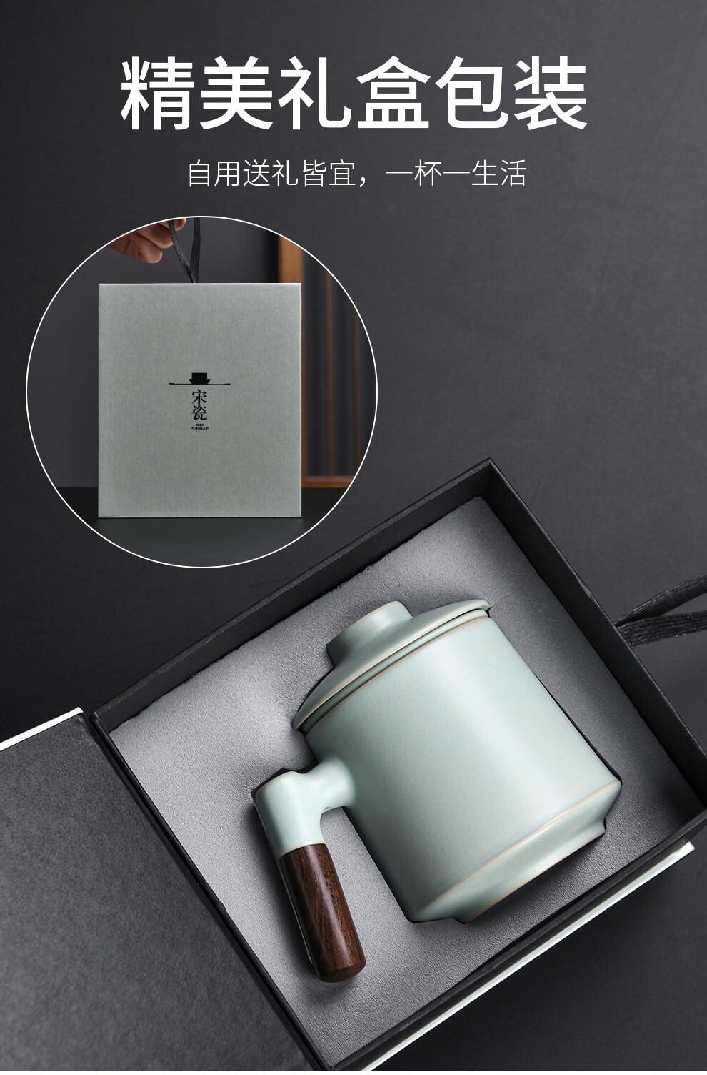 Qixuanyuan Ru Kiln Tea Cup Simple Drinking Cup Office Covered Filter Tea Water Separation Birthday Gift Customized LOGO Ge Kiln Dragon Handle Office Cup-Plum Green + Gift Box