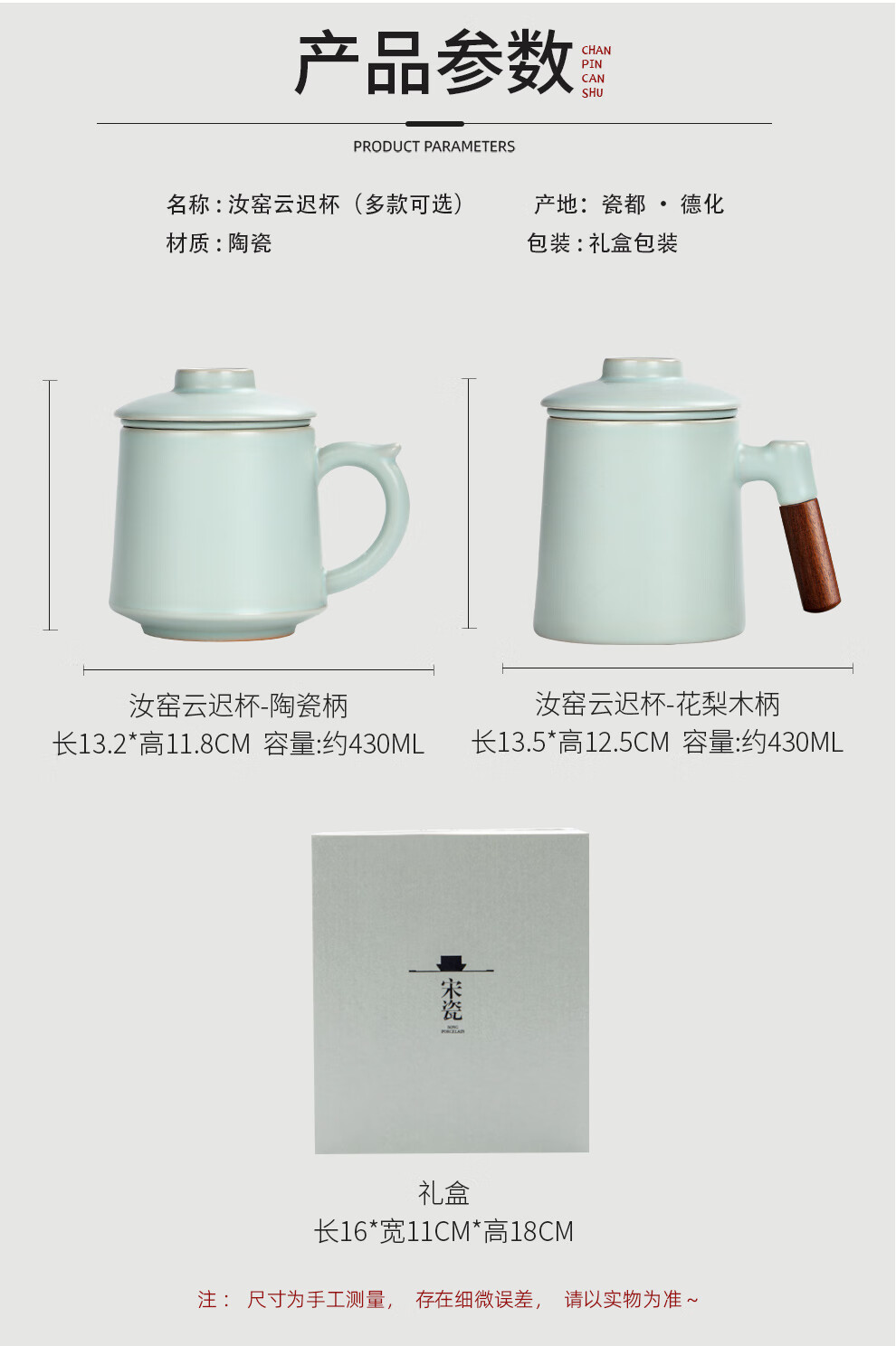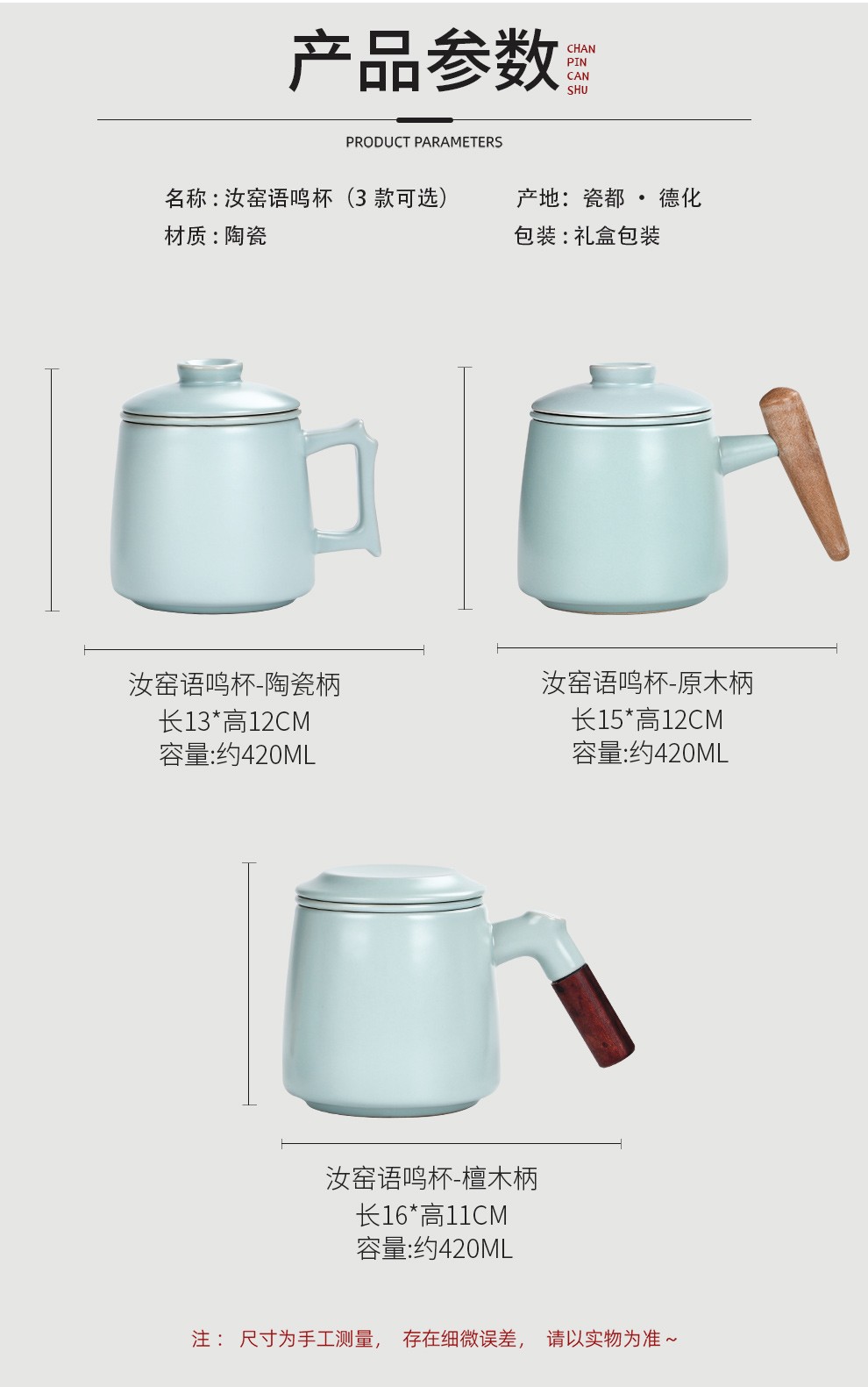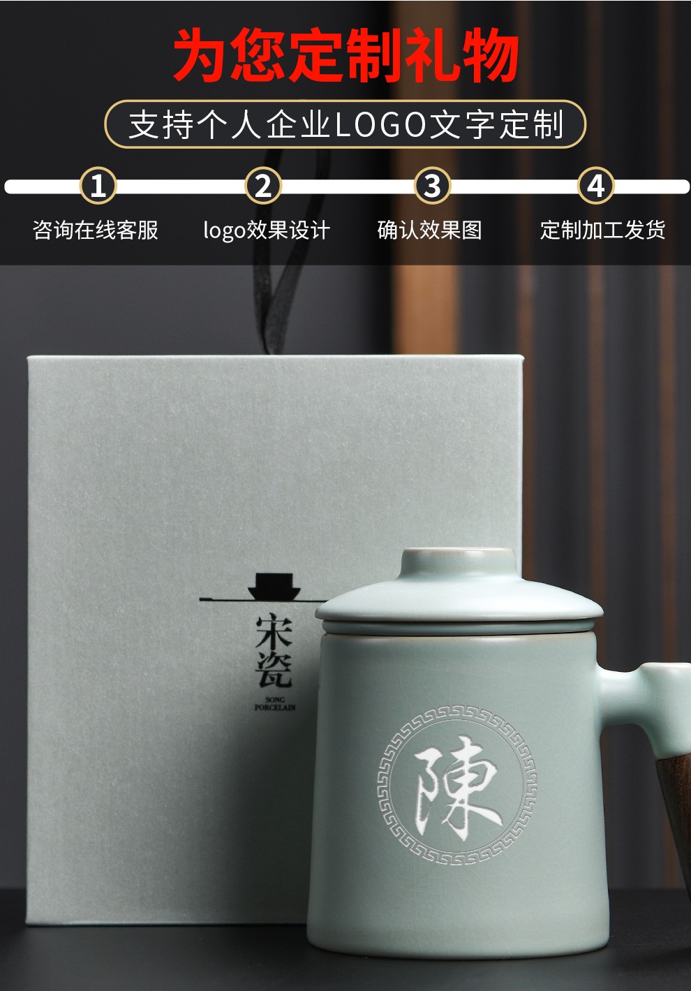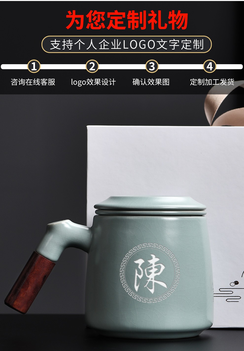 Qixuanyuan Ru Kiln Tea Cup Simple Drinking Cup Office Covered Filter Tea Water Separation Birthday Gift Customized LOGO Ge Kiln Dragon Handle Office Cup-Plum Green + Gift Box