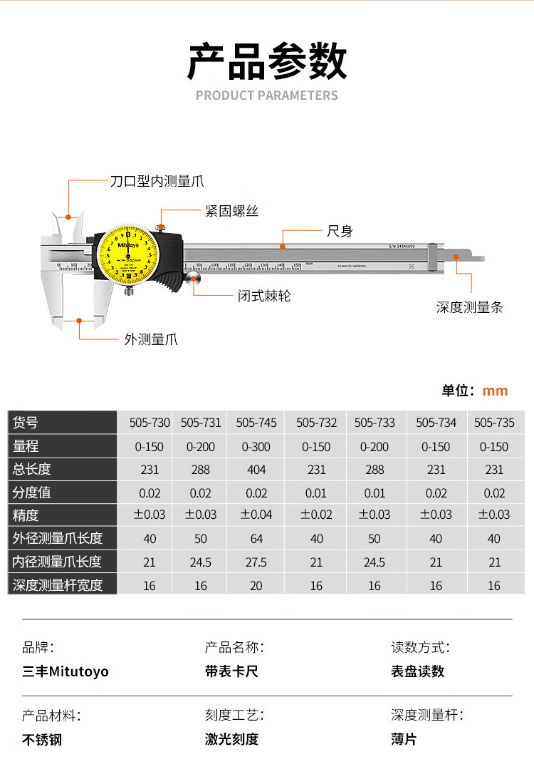 Mitutoyo Japan original imported caliper representative high-precision vernier caliper 505-731/0-200mm/0.02mm