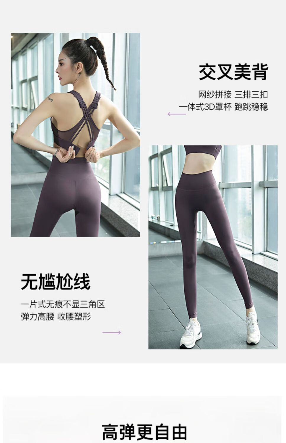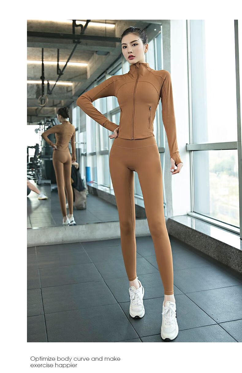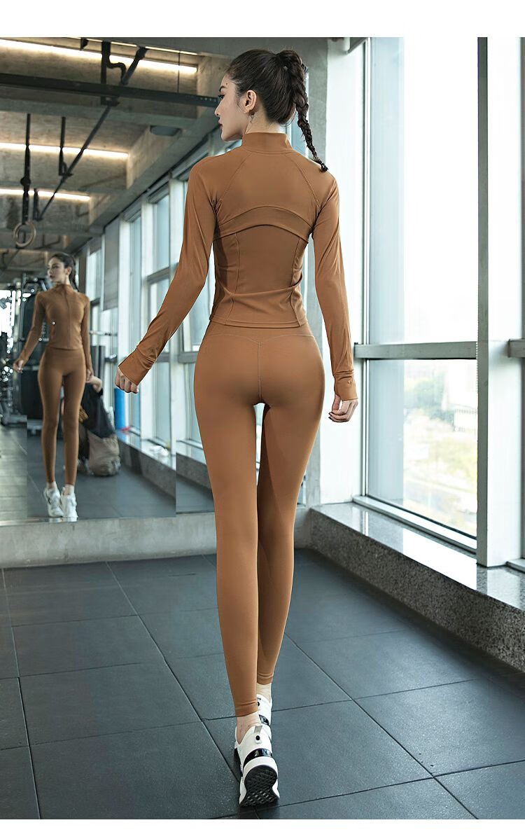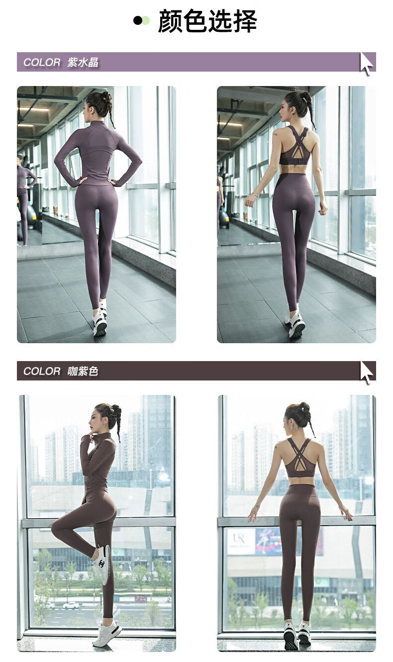 GUBPMTSHIM Yoga Wear Women's 2024 New Autumn and Winter Pilates Training Wear Quick-drying High-Looking Fitness Morning Running Wear Sports Suit Purple Jacket Three-piece Set L Size Recommended 110-125 Jin Jin equals 0.5 kg