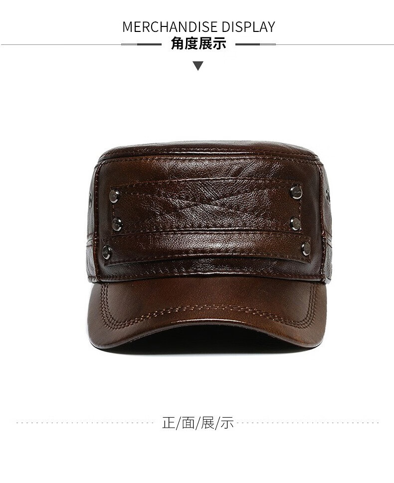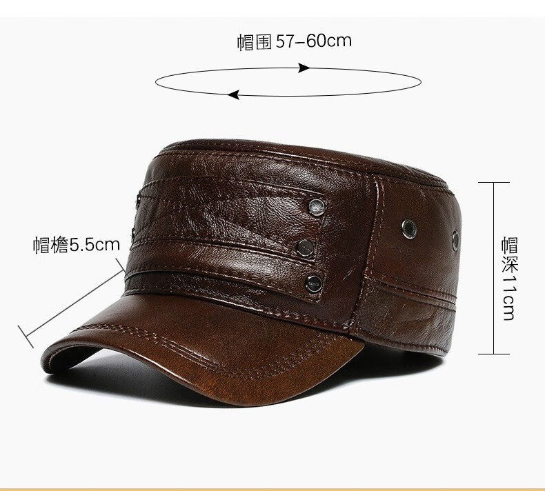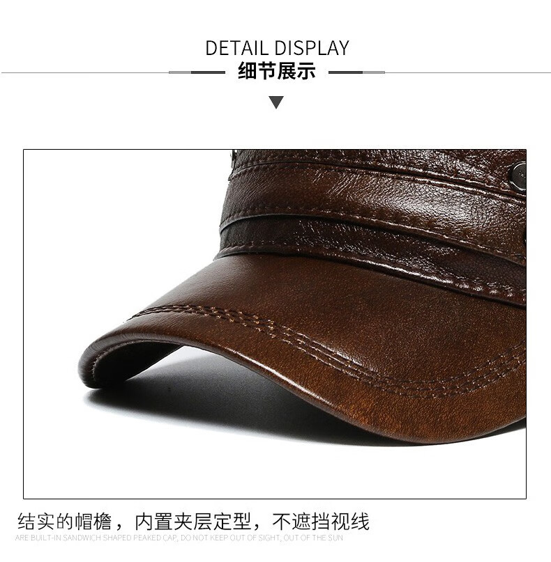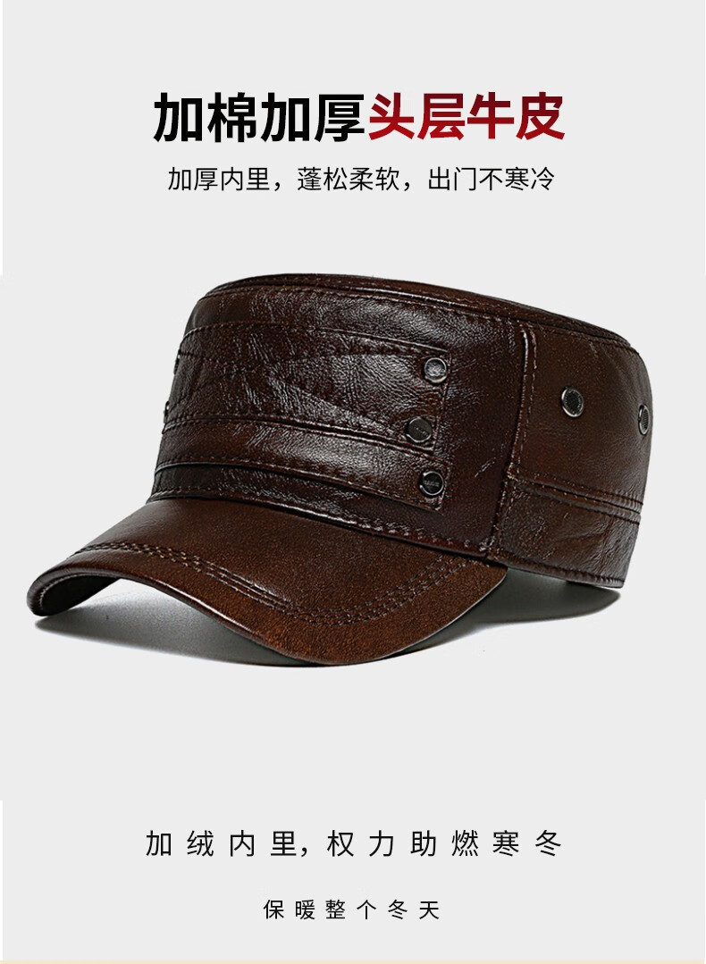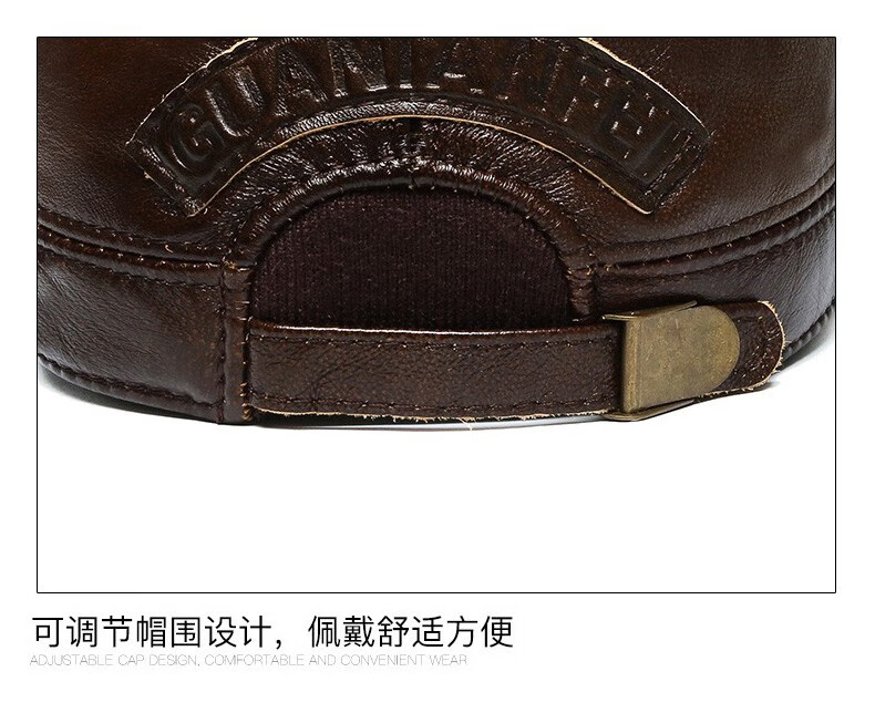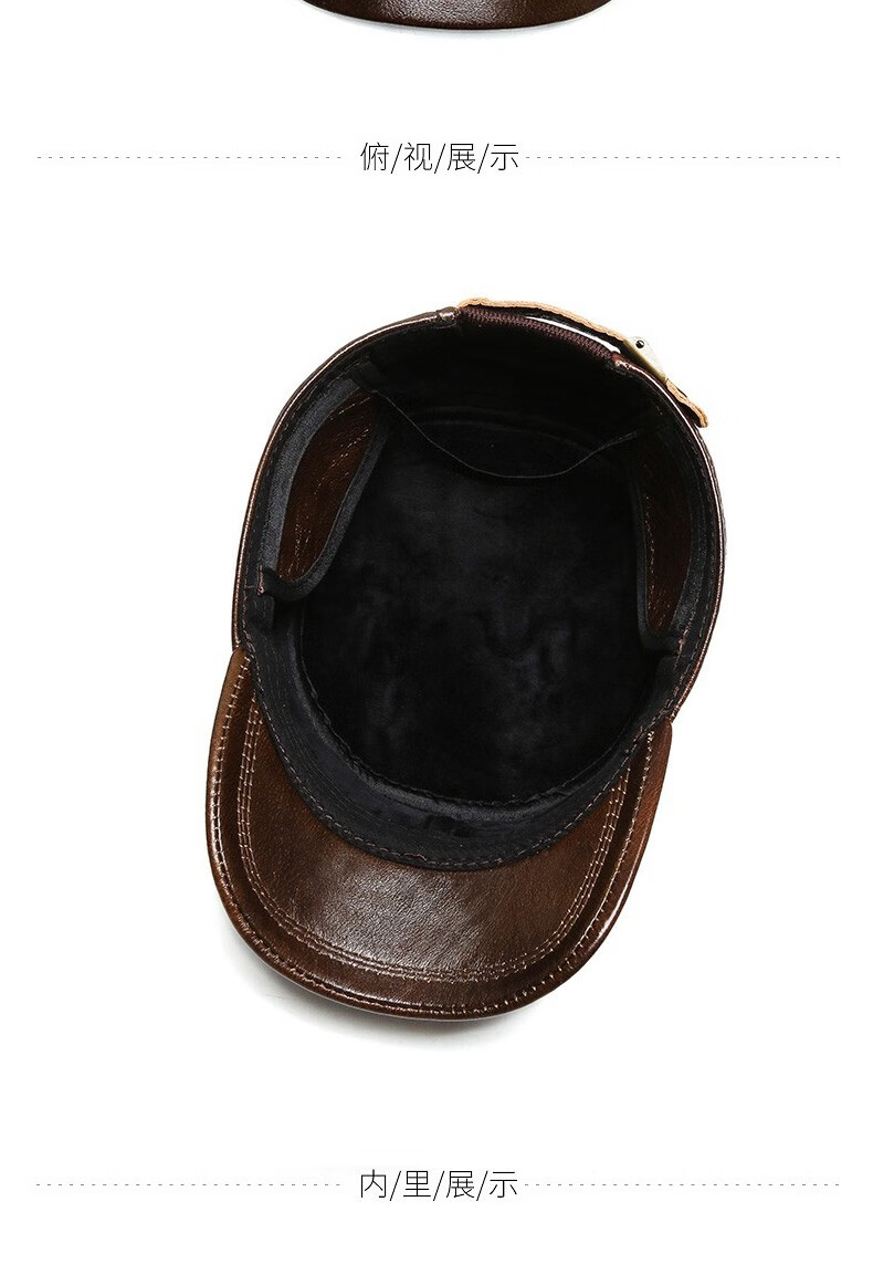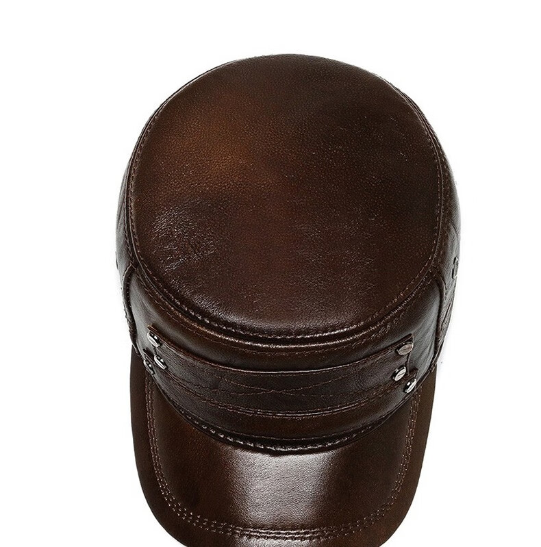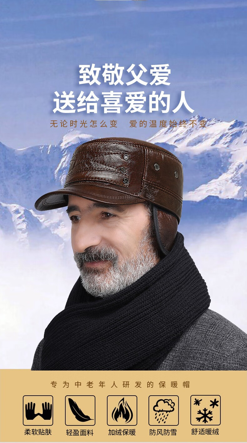 Woodpecker head cowhide hat for middle-aged and elderly men, winter duck cap with ear protection and velvet to prevent cold and warm baseball cap for dad and grandpa, dark brown color, adjustable hat circumference (head circumference 54-60cm)