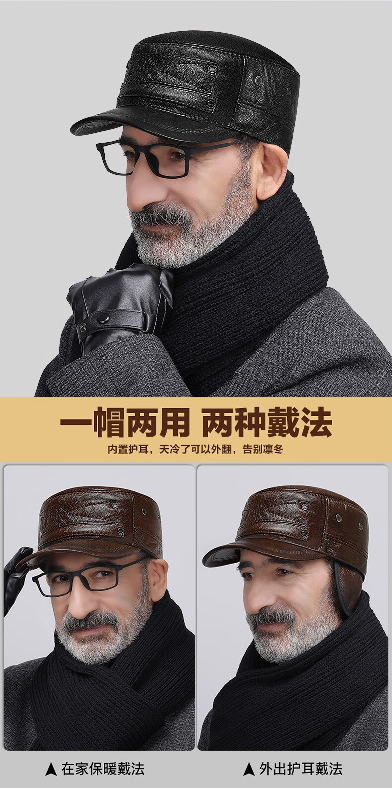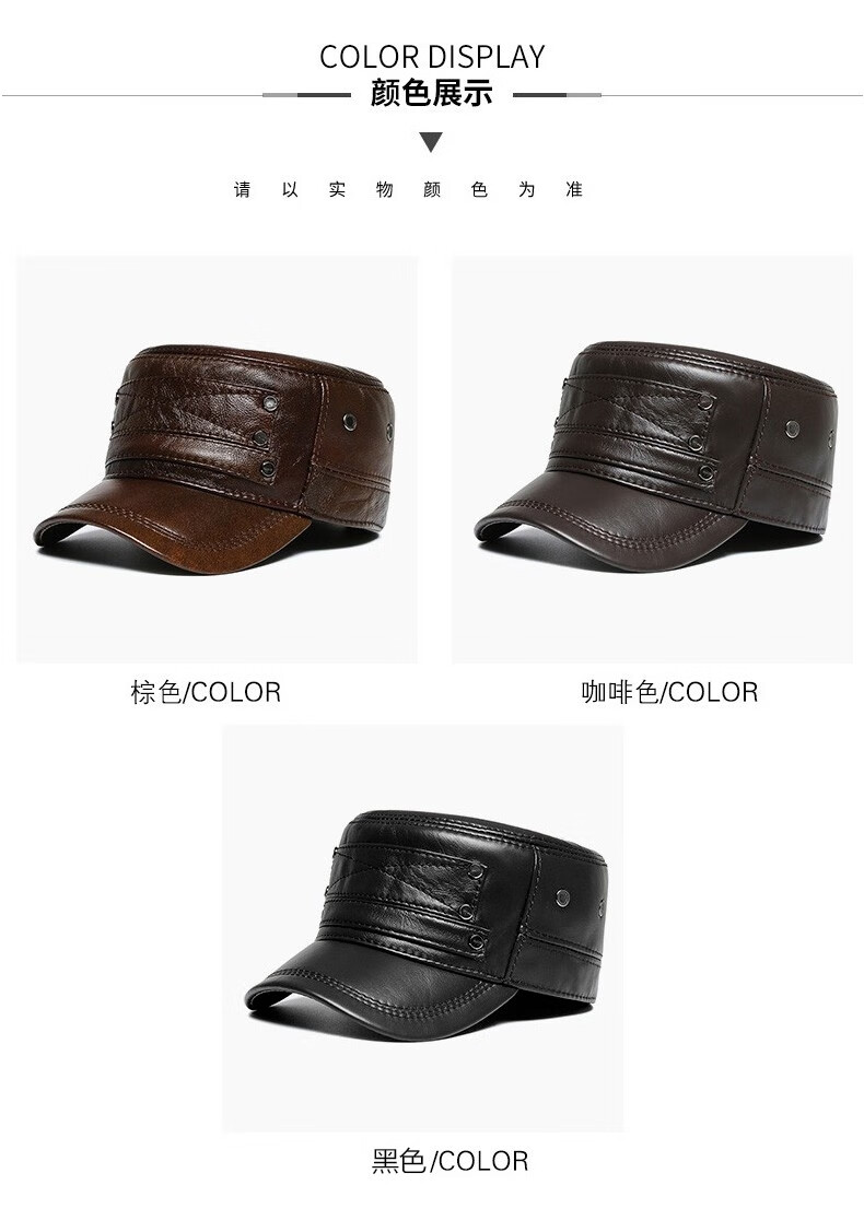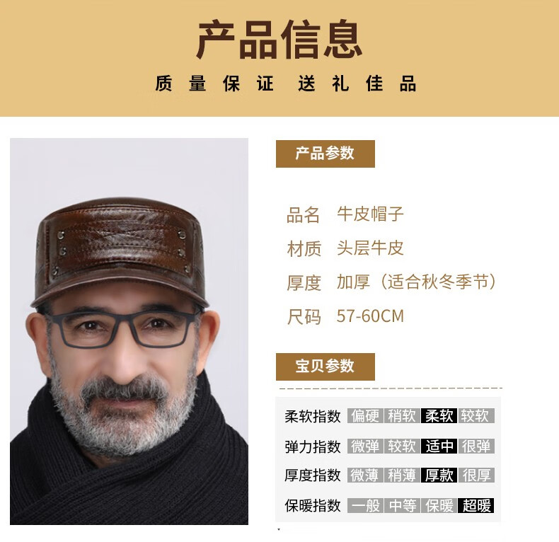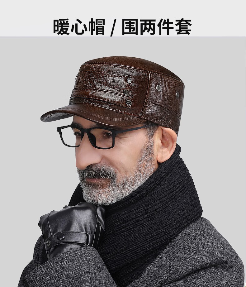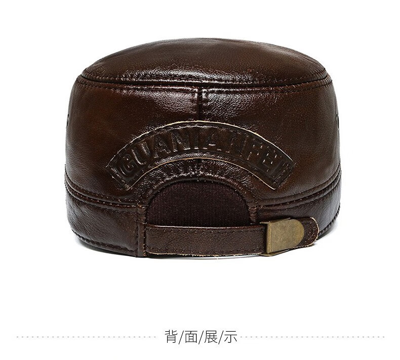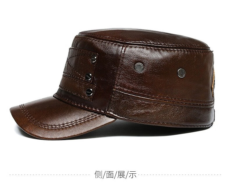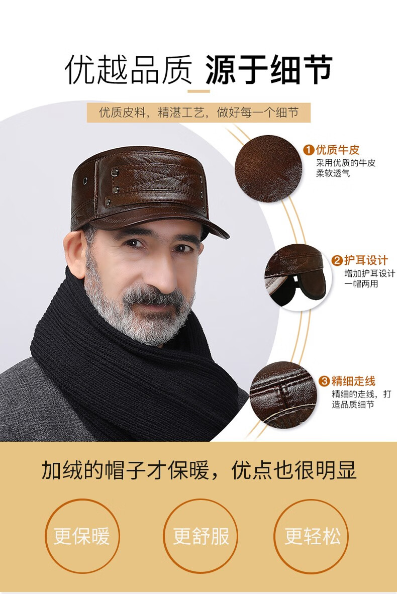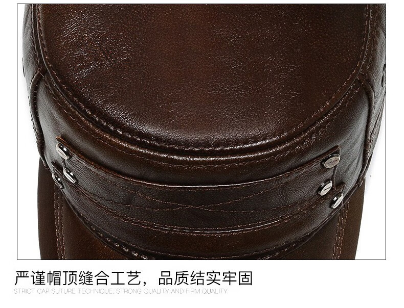 Woodpecker head cowhide hat for middle-aged and elderly men, winter duck cap with ear protection and velvet to prevent cold and warm baseball cap for dad and grandpa, dark brown color, adjustable hat circumference (head circumference 54-60cm)