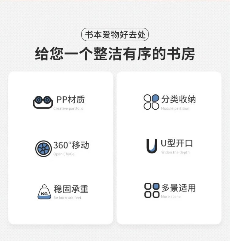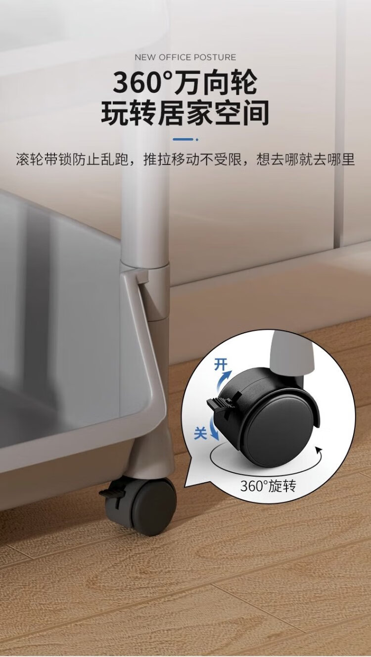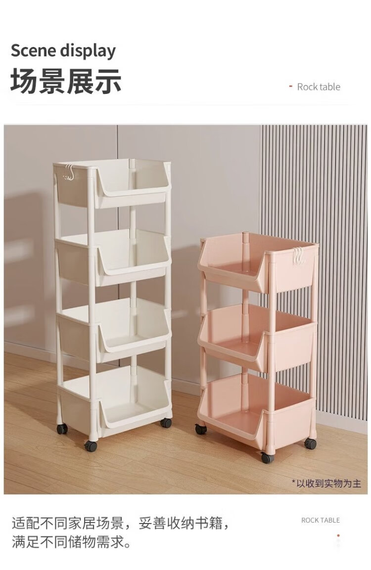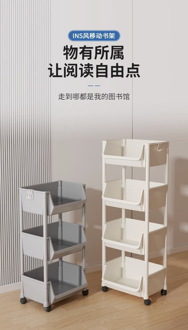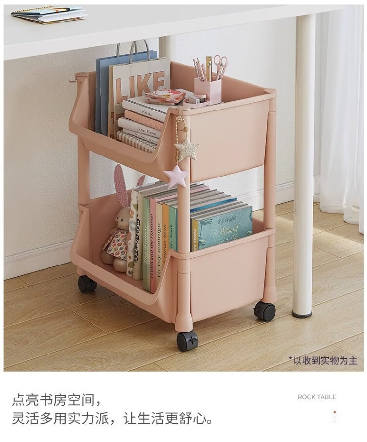 Nifeng storage rack trolley for schoolbags movable bookshelf with wheels small bookcase floor-standing desk storage rack under the desk 2-layer white open version with pulley + hook