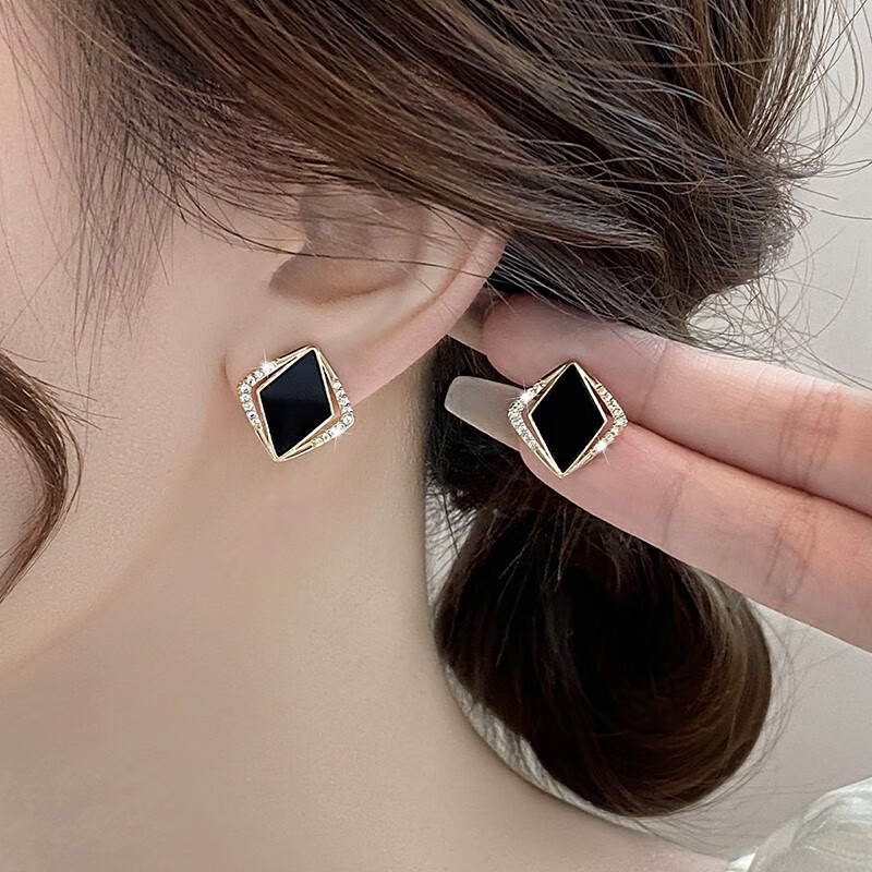 Idel's exquisite black diamond-shaped earrings for women 2025 new trendy cool style earrings niche design high-end earrings black diamond-shaped earrings E3169