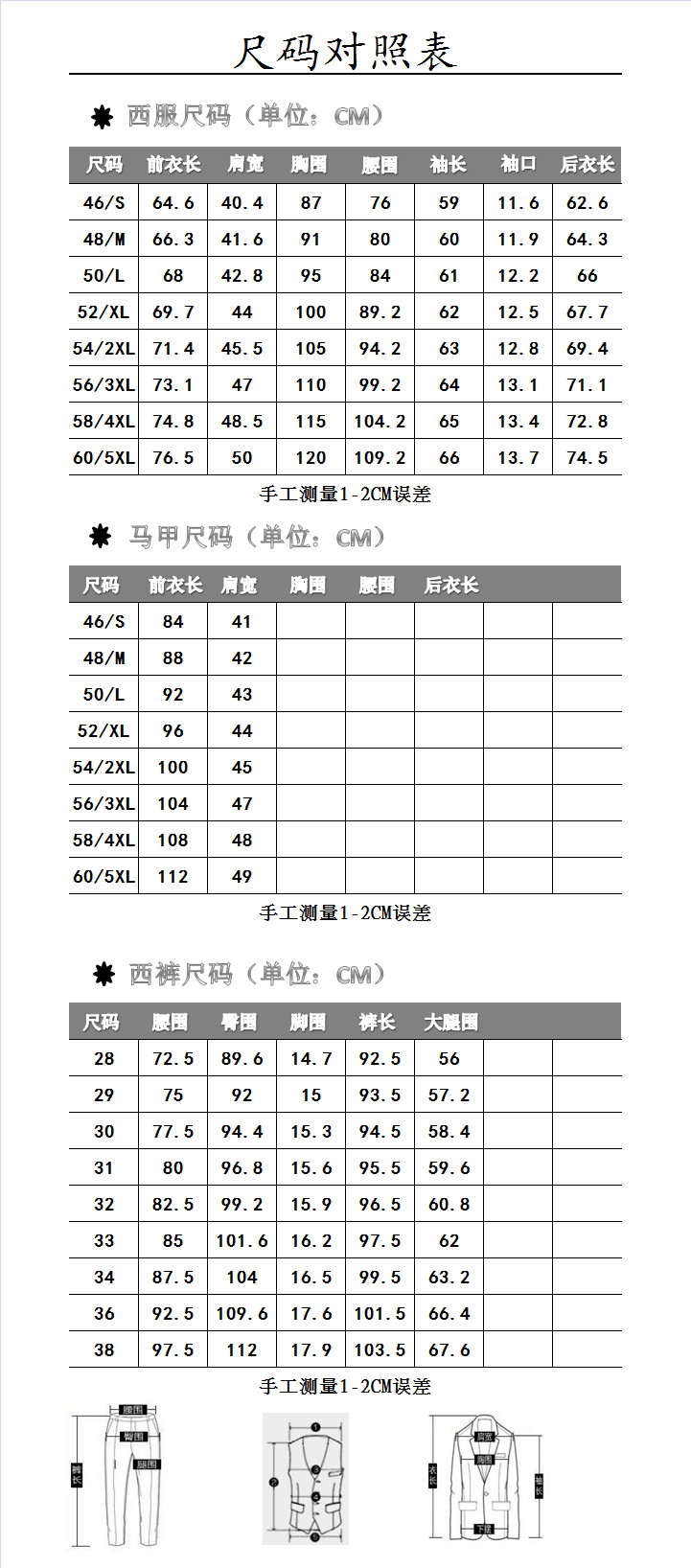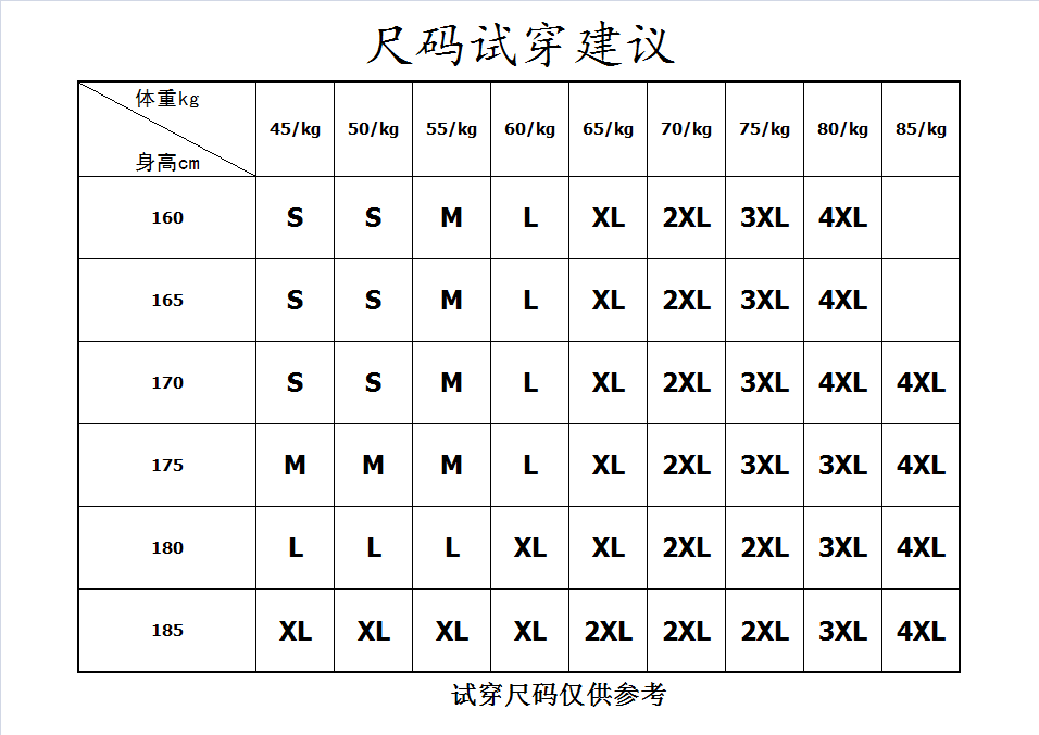 China (cm) 160-165/84-86 165-170 / 88-90 167-172 / 92-96 168-173 / 98-102 170-176 / 106-110