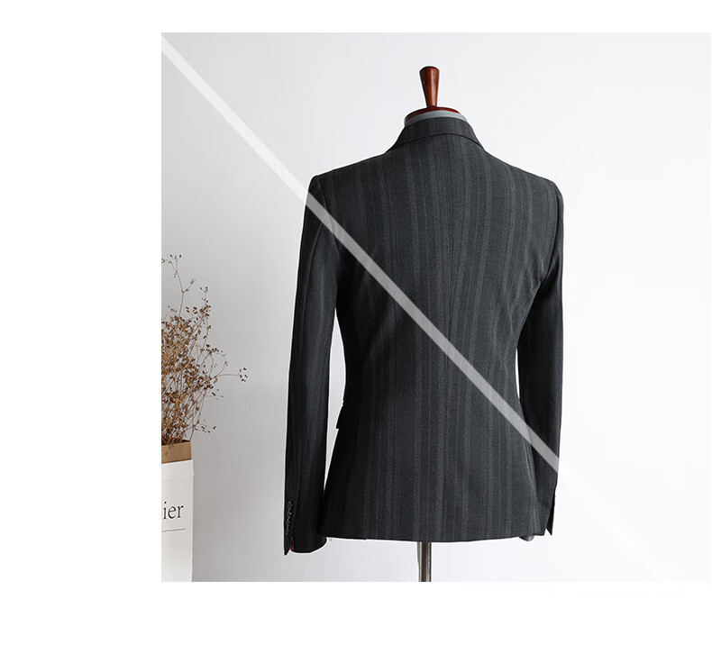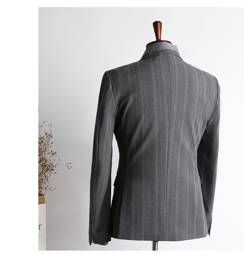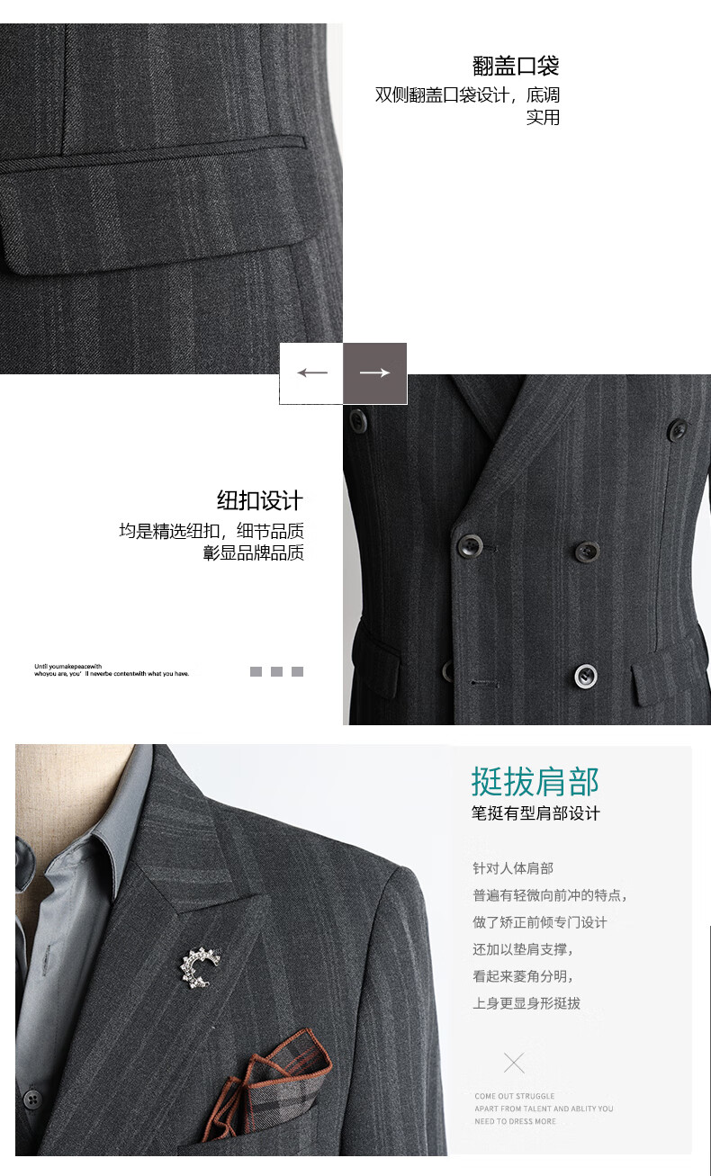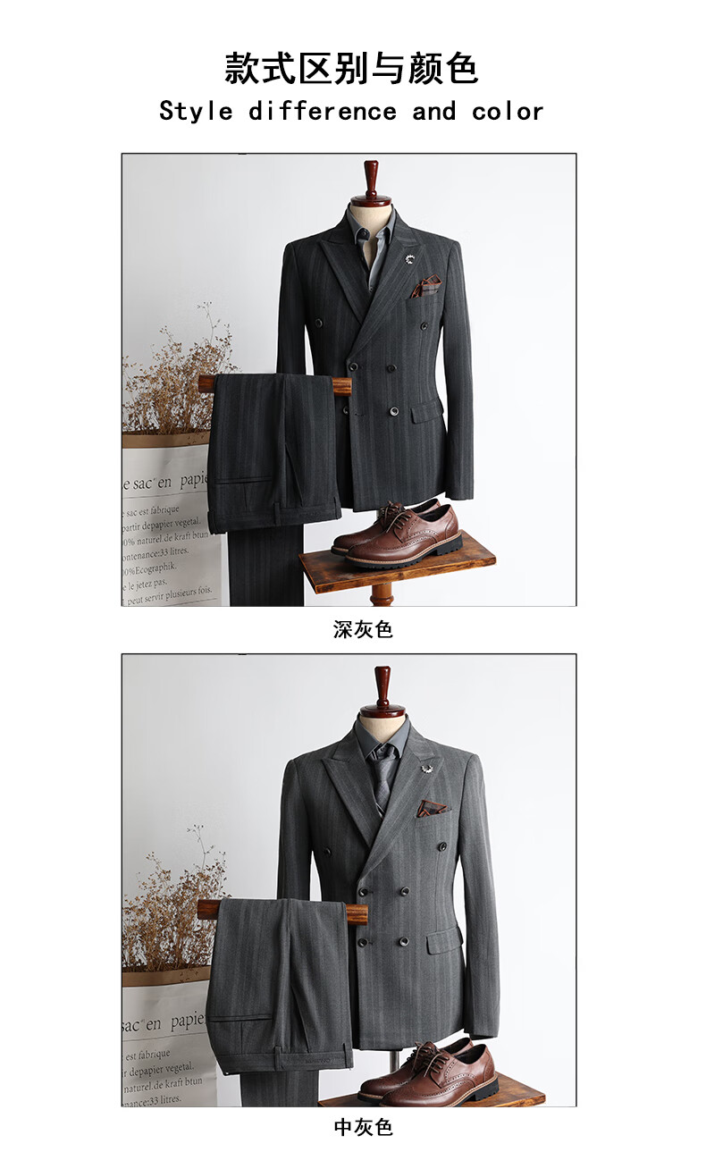 ROMON high-end customized striped suit suit for men in autumn and winter new double-breasted professional suit for men wedding and groom's dress medium gray two-piece suit + pants XL size free + brooch + pocket square